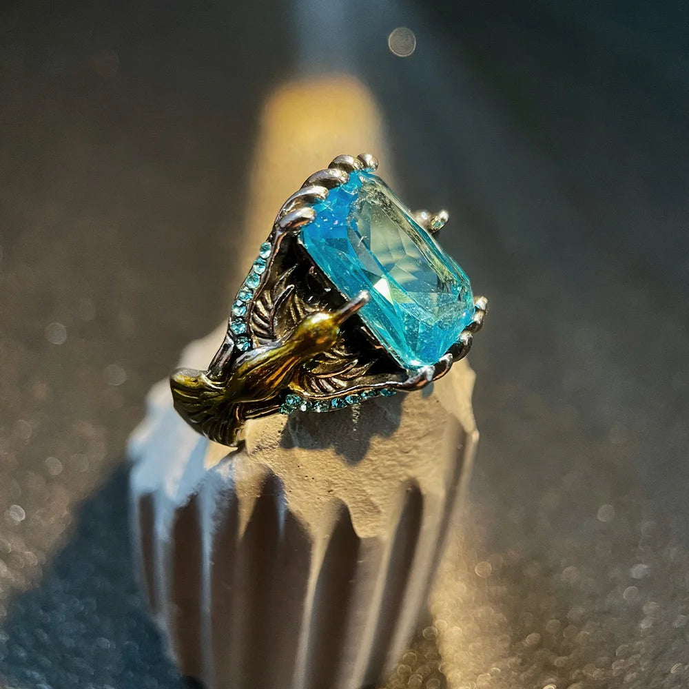Retro Dragon Claw Golden Eagle Blue Gem Ring