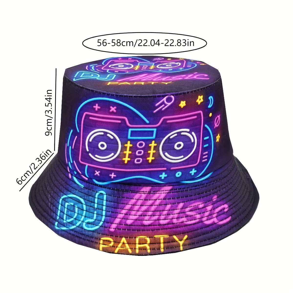 1pc Neon DJ Music Party Hat - Vibrant Printed Bucket Hat with "DISCuss WHAT'S THIS?" Design, Lightweight Polyester, Perfect for Music Festivals & Hip-Hop Themed Events, Disco Party Accessories
