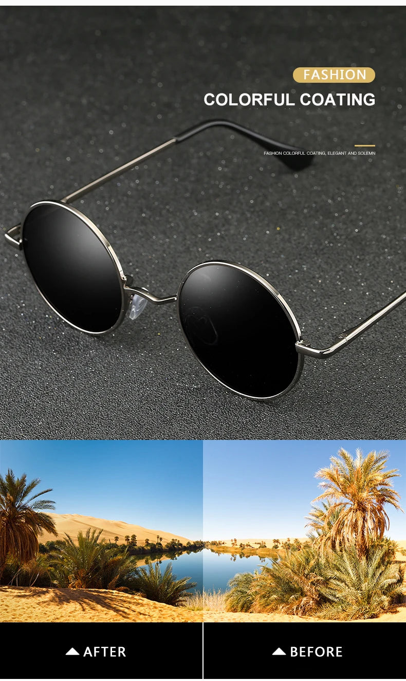 2023 Fashion Round Polarized Sunglasses Men Brand Design Women Shades Retro Alloy Sun Glasses UV400 Eyewear Oculos De Sol