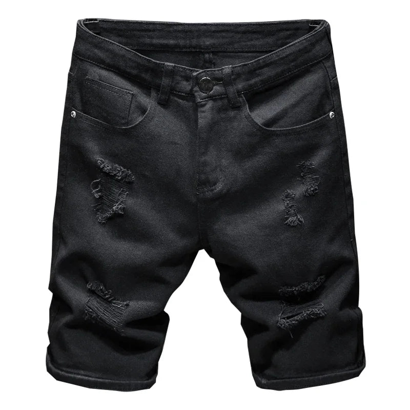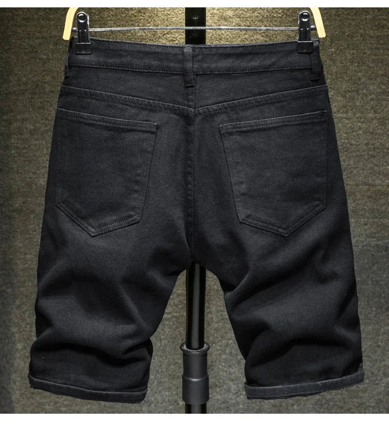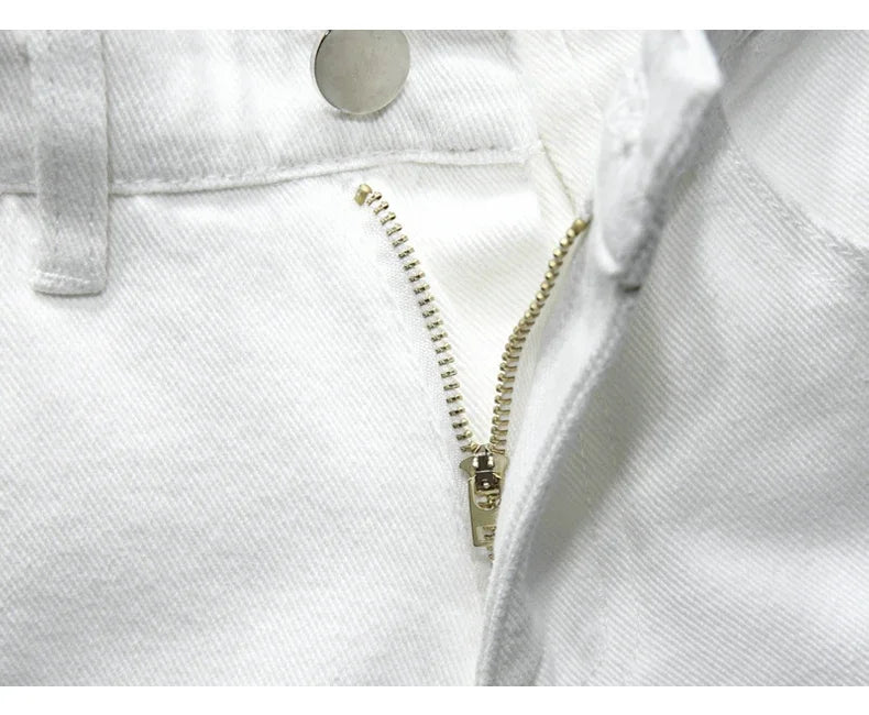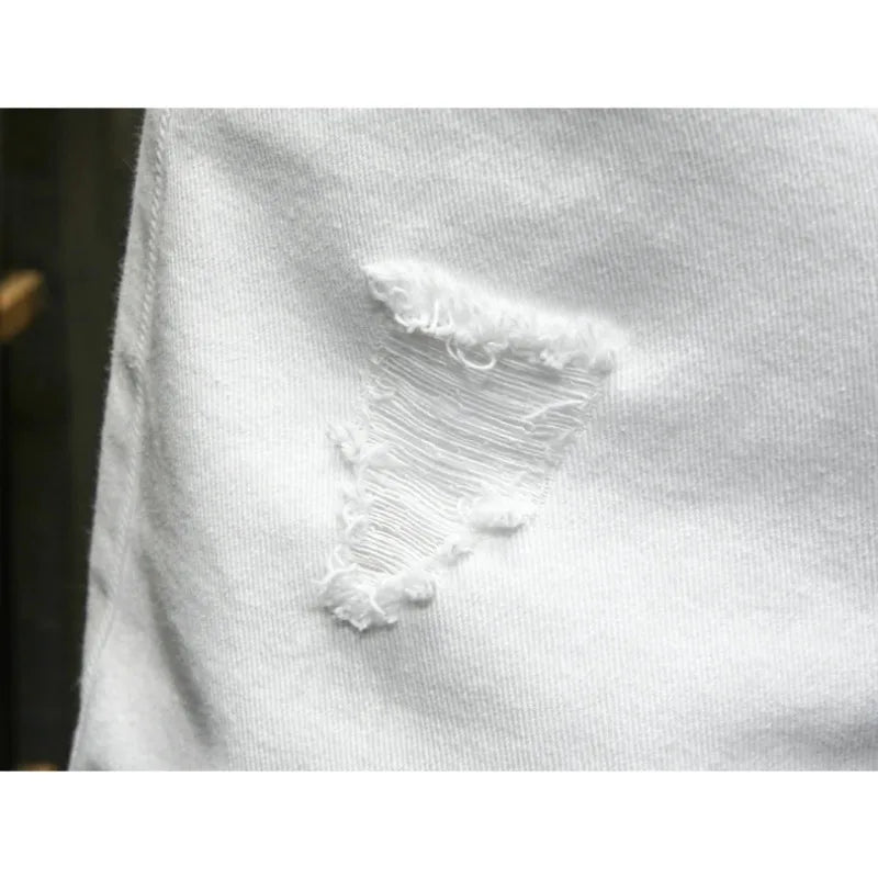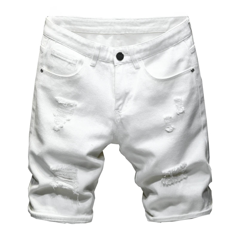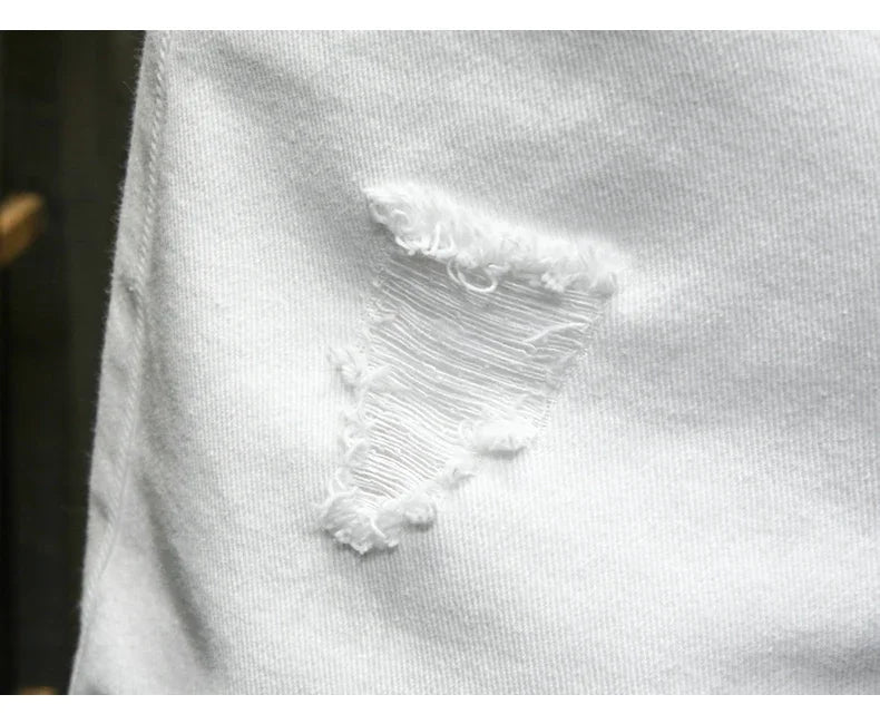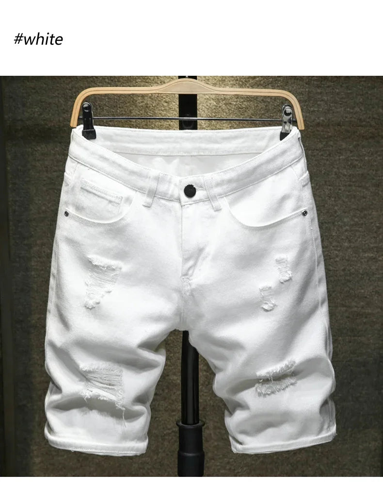 White Denim Shorts Men Ripped Knee Length Fashion Jeans Casual Hole Slim Male Short Pants Streetwear