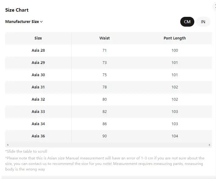size_info: {"sizeInfoList":[{"length":{"cm":"71","inch":"27.95"},"size":"28","vid":-1},{"length":{"cm":"73","inch":"28.74"},"size":"29","vid":-2},{"length":{"cm":"75","inch":"29.53"},"size":"30","vid":-3},{"length":{"cm":"78","inch":"30.71"},"size":"31","vid":-4},{"length":{"cm":"80","inch":"31.50"},"size":"32","vid":-5},{"length":{"cm":"82","inch":"32.28"},"size":"33","vid":-6},{"length":{"cm":"86","inch":"33.86"},"size":"34","vid":-7},{"length":{"cm":"90","inch":"35.43"},"size":"36","vid":-8}]}