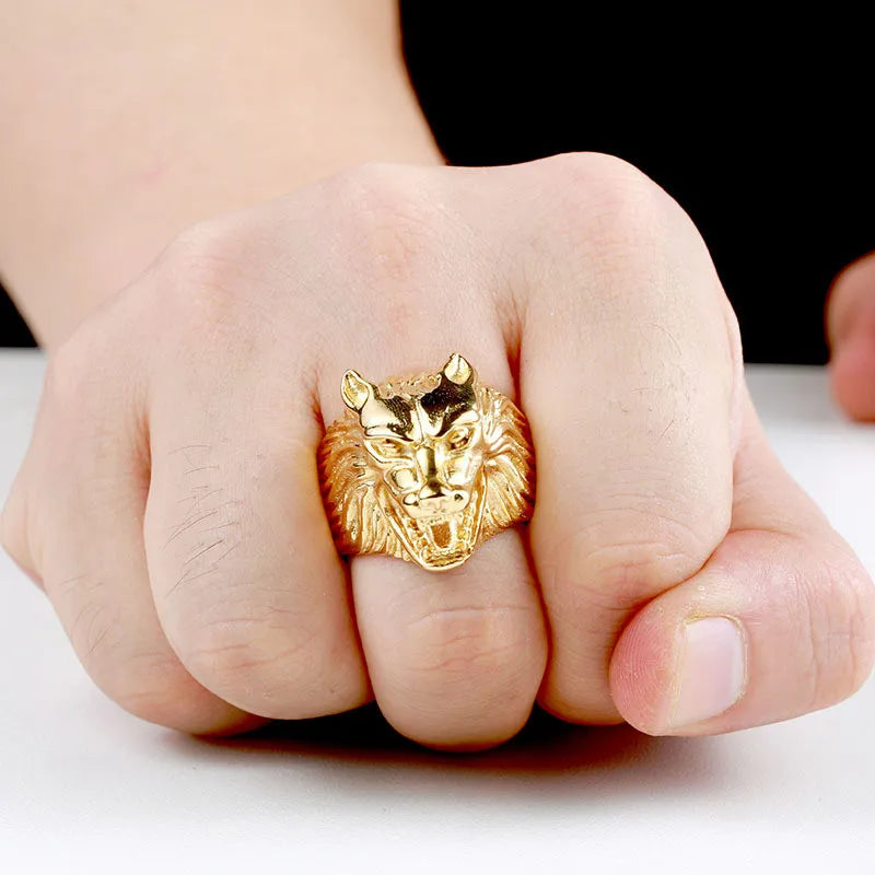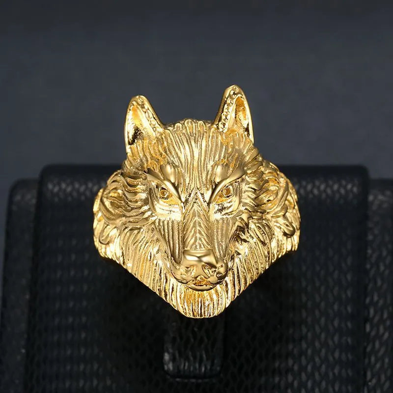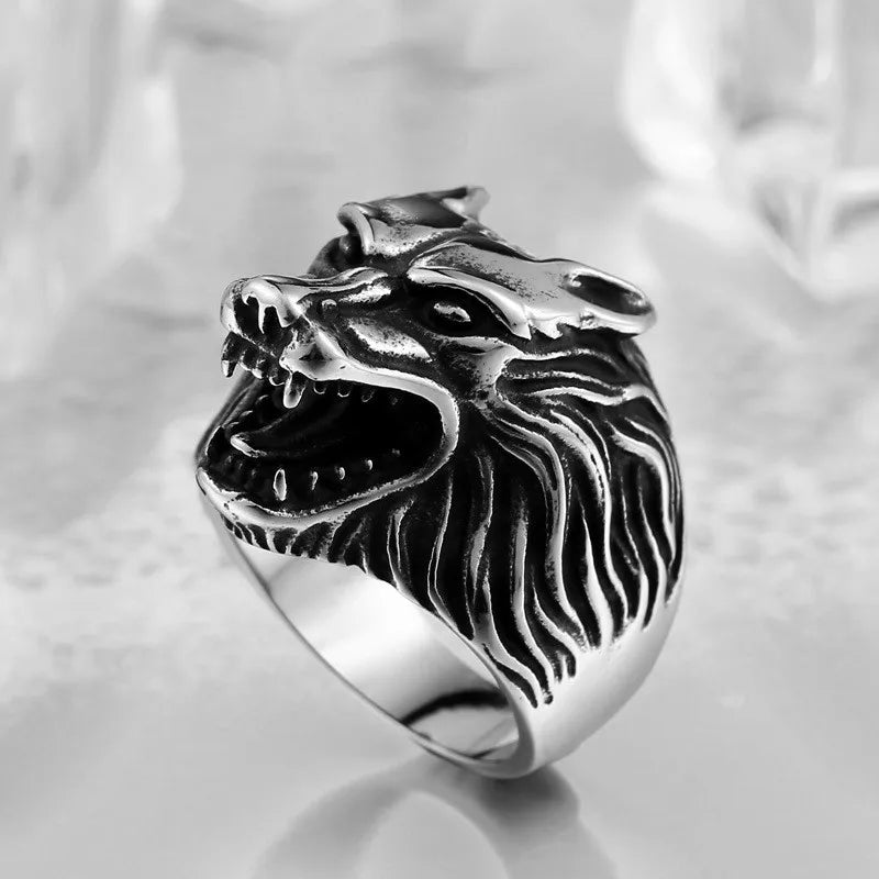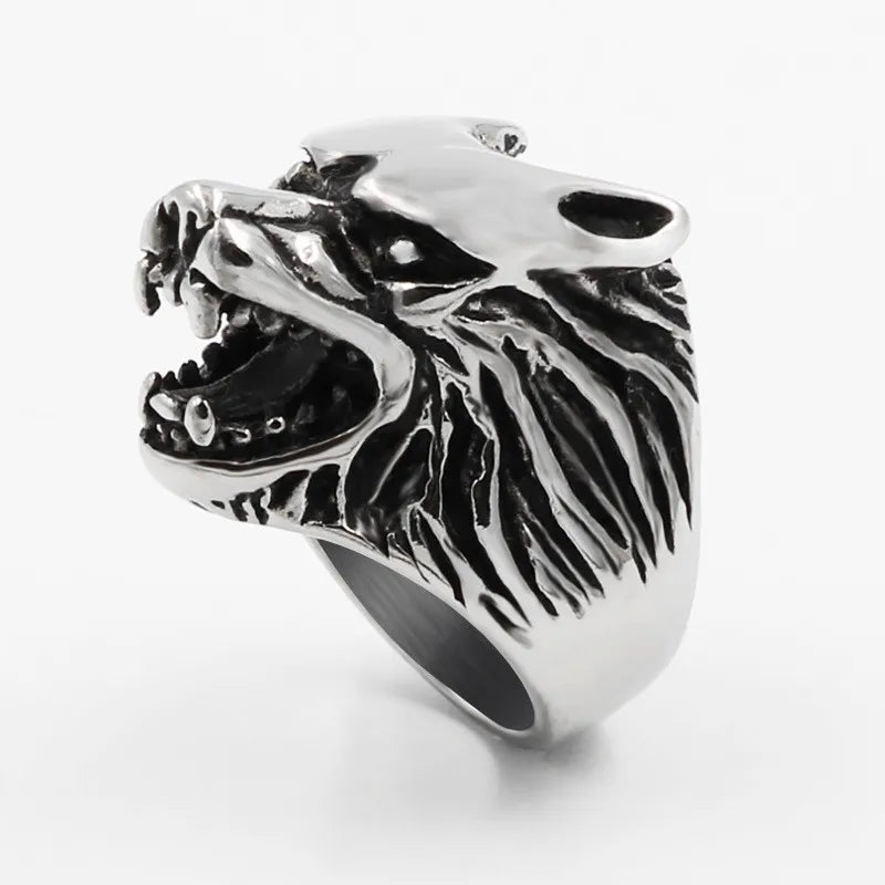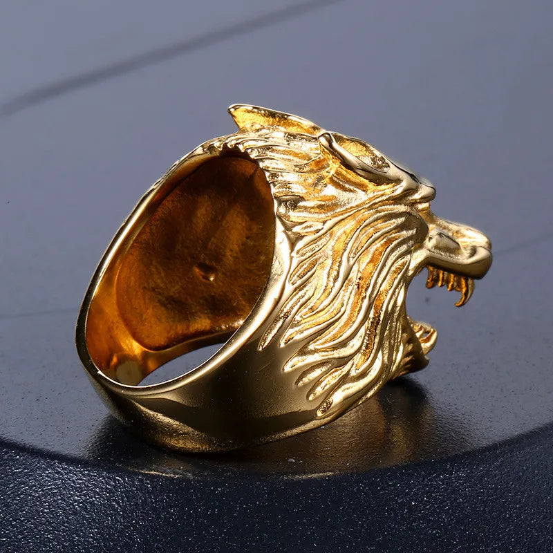 316L Stainless Steel Cast Domineering Ice Wolf Head Viking Wolf Head Punk Men's/women Ring