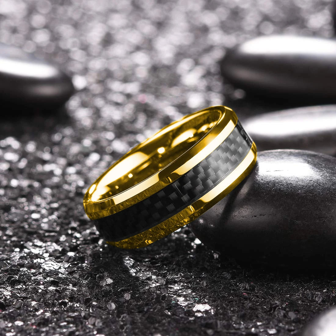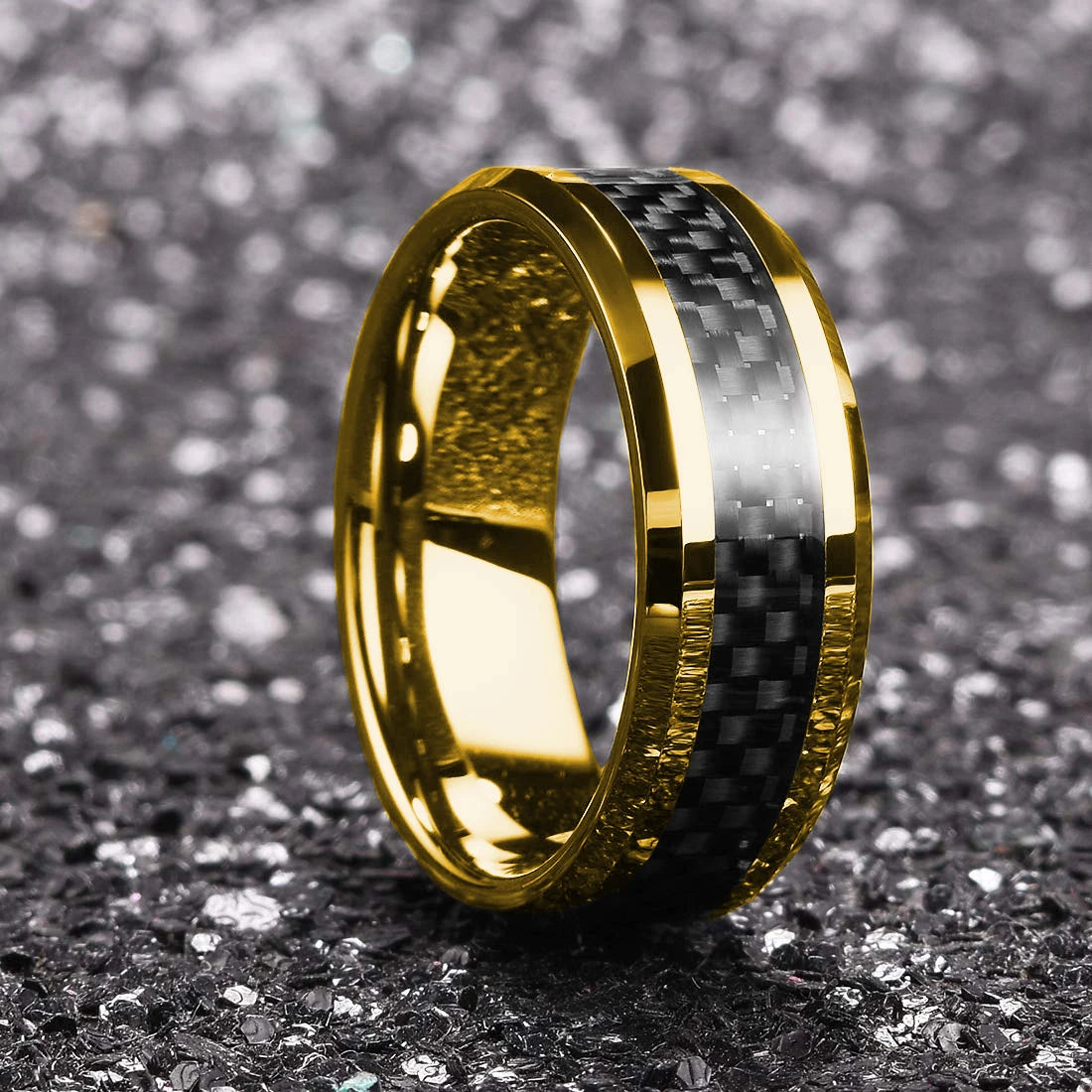 Black Carbon Fiber Matte Finish Ring For Men