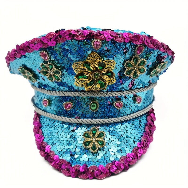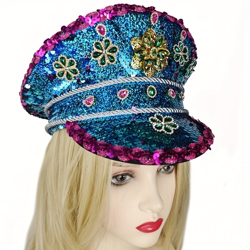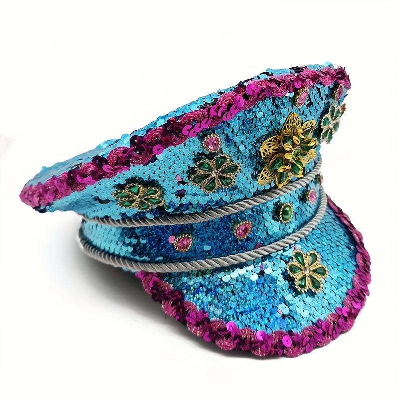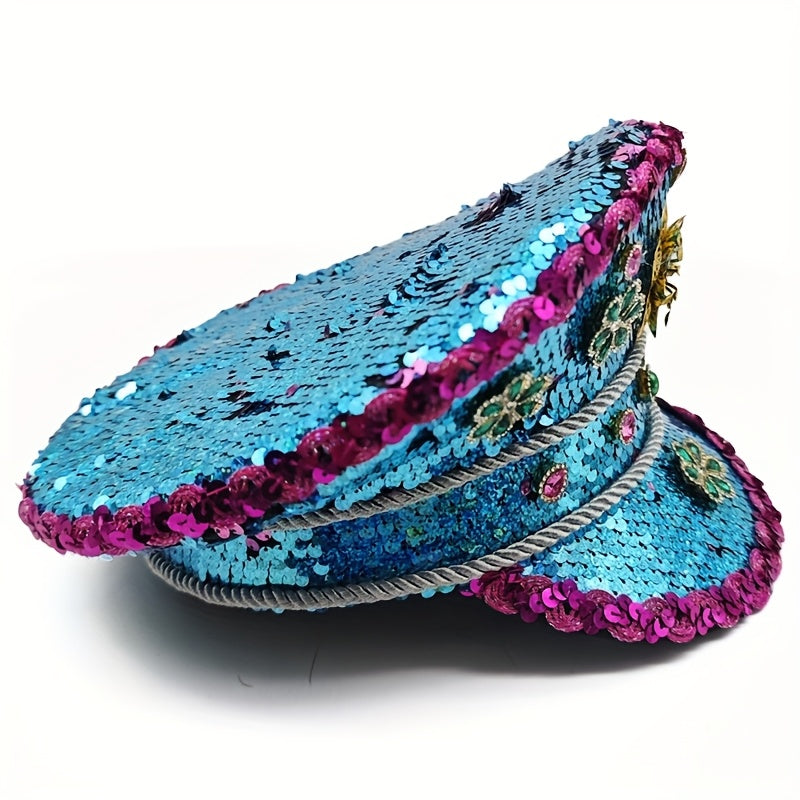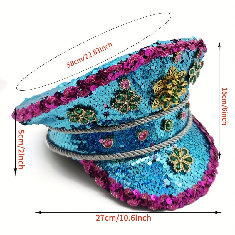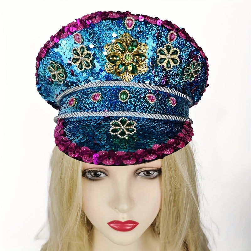 A Sparkling Blue Rhinestone Captain'S Hat, Perfect for Bachelorette Parties, Weddings, Carnival Parades, Masquerades, Valentine'S Day, Mother'S Day, And Other Celebrations.