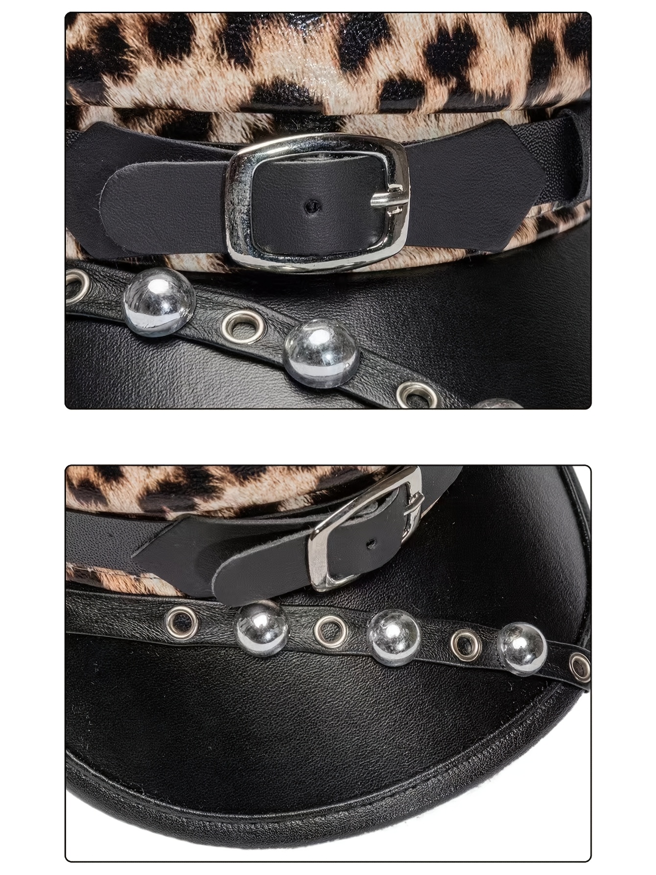 A Women'S Punk Leopard Print Studded Faux Leather Belt Beret, Suitable for Daily Commuting And Embodying Subculture Style.