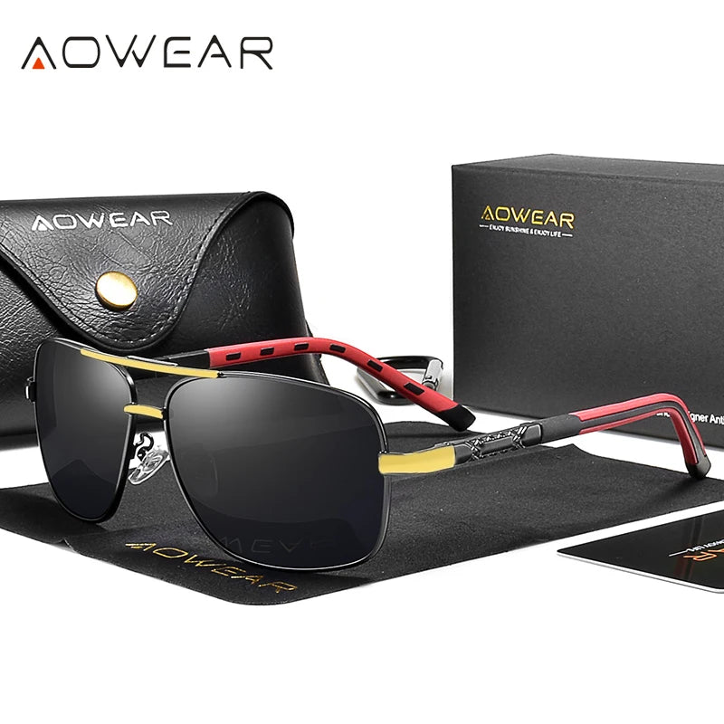 AOWEAR Retro Polarized Sunglasses for Men Women Driving UV400 Vintage Sun Glasses Unisex Mirror Eyewear with Case