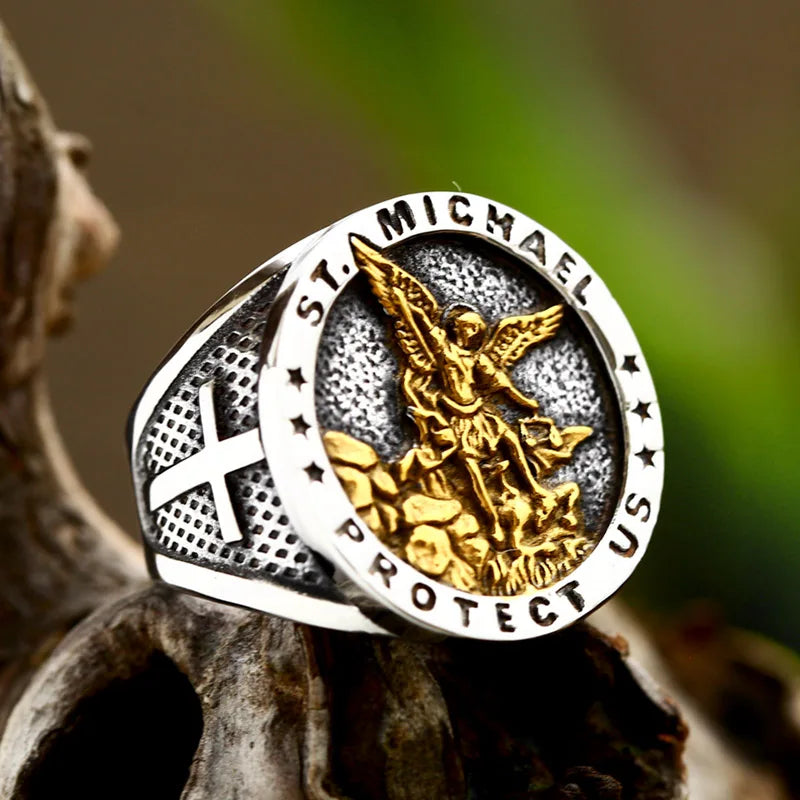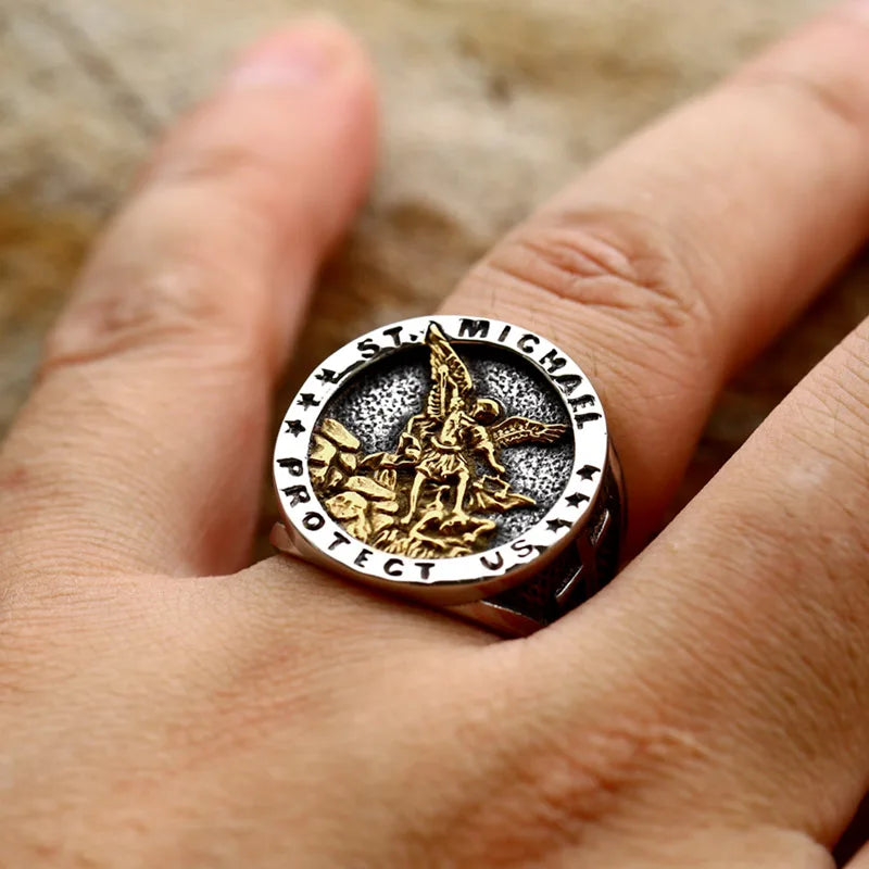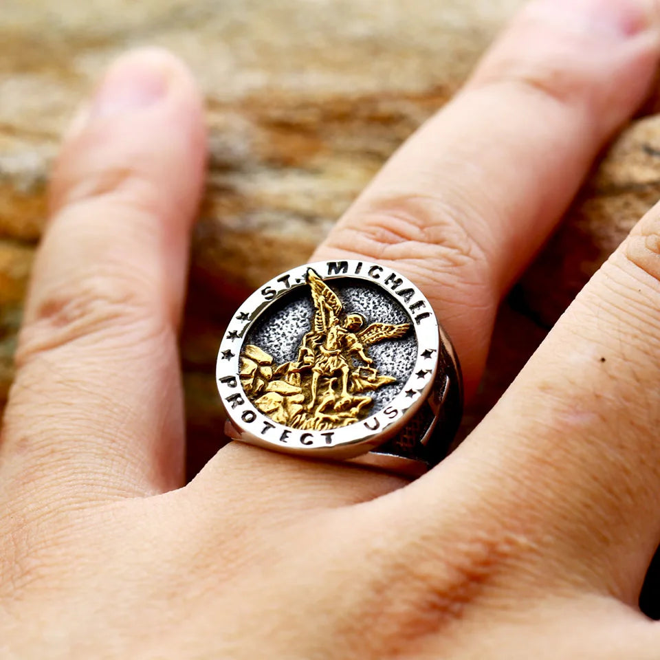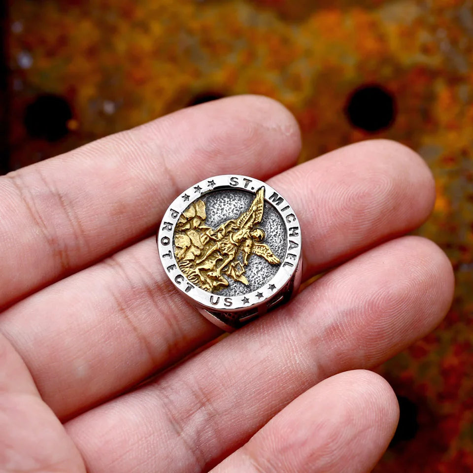 BEIER 316L Stainless Steel Angel St Michael Ring