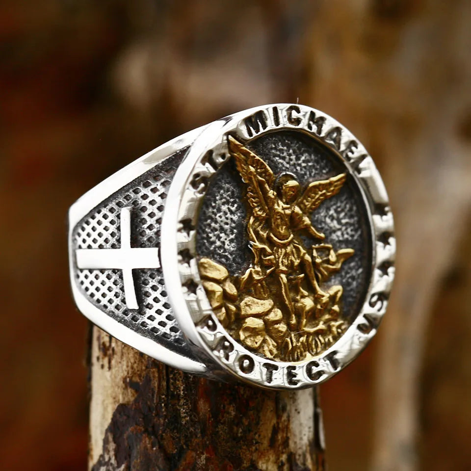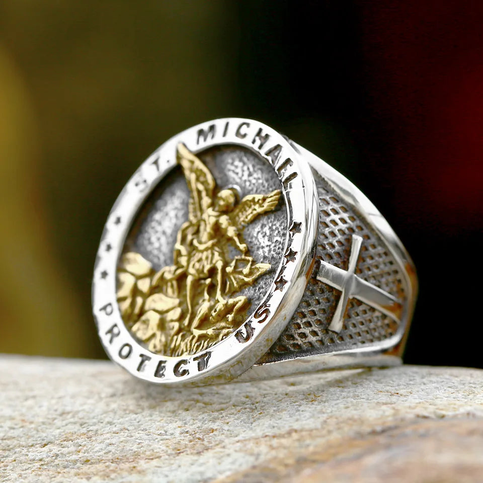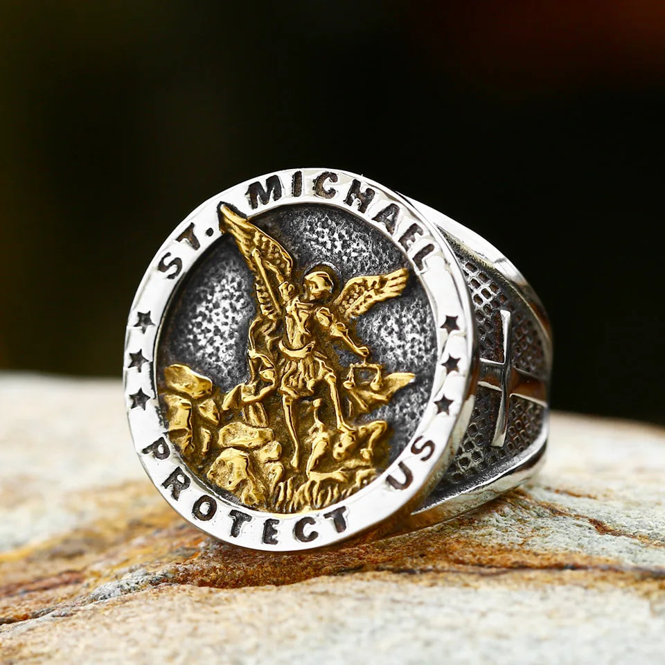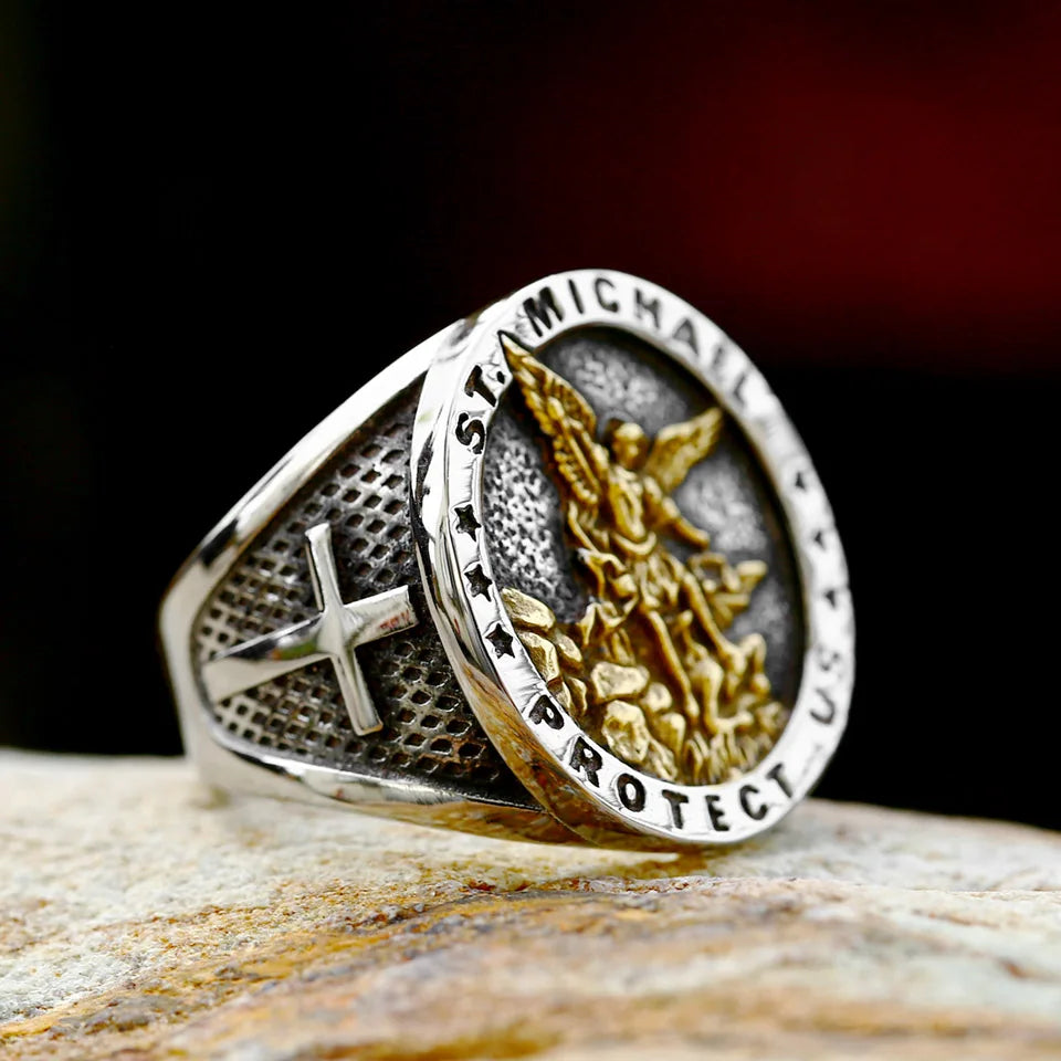 BEIER 2024 New Style 316L Stainless Steel Angel St Michael Ring Cross Ring Archangel Medal Jewelry For Men