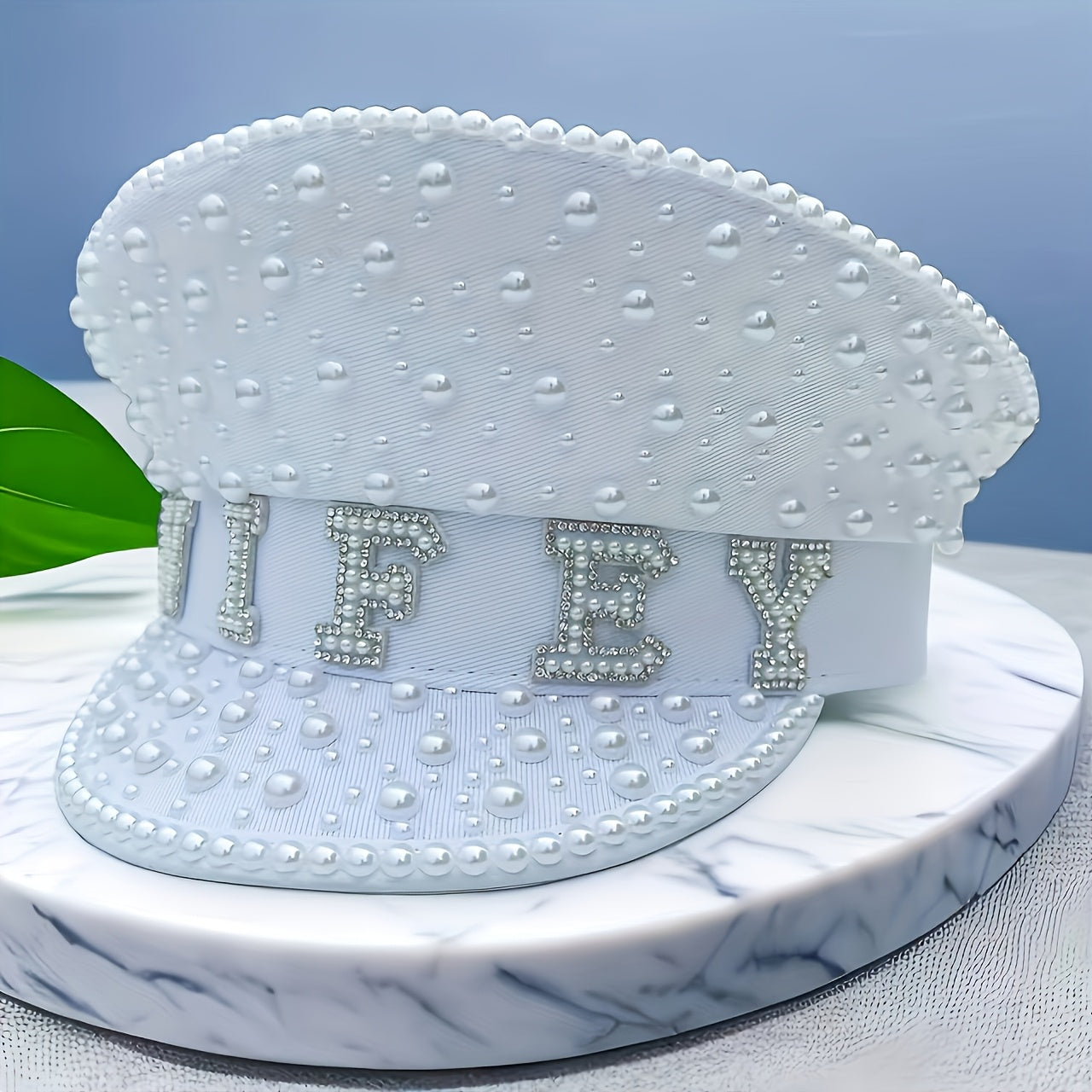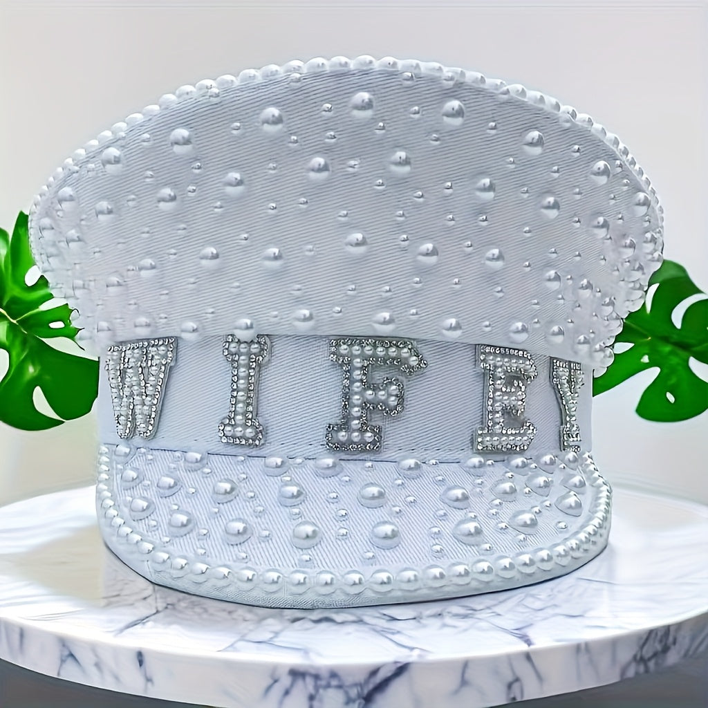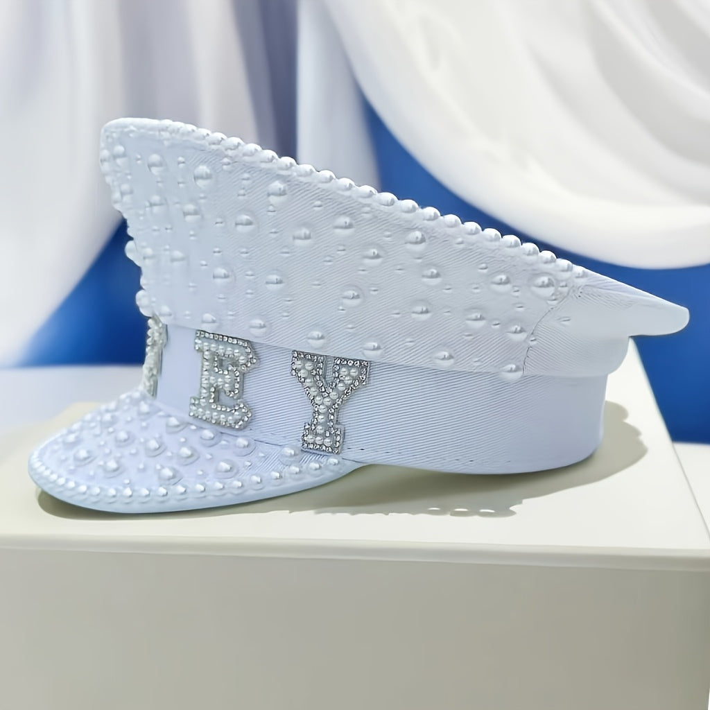 Bling Bride Captain Hat | Rhinestone-Embellished Military Style | Sparkling White Polyester | Adjustable Buckle Closure | Ideal for Bachelorette, Bridal Shower & Wedding Celebrations | Cosplay Costume Accessory, Wedding Acces