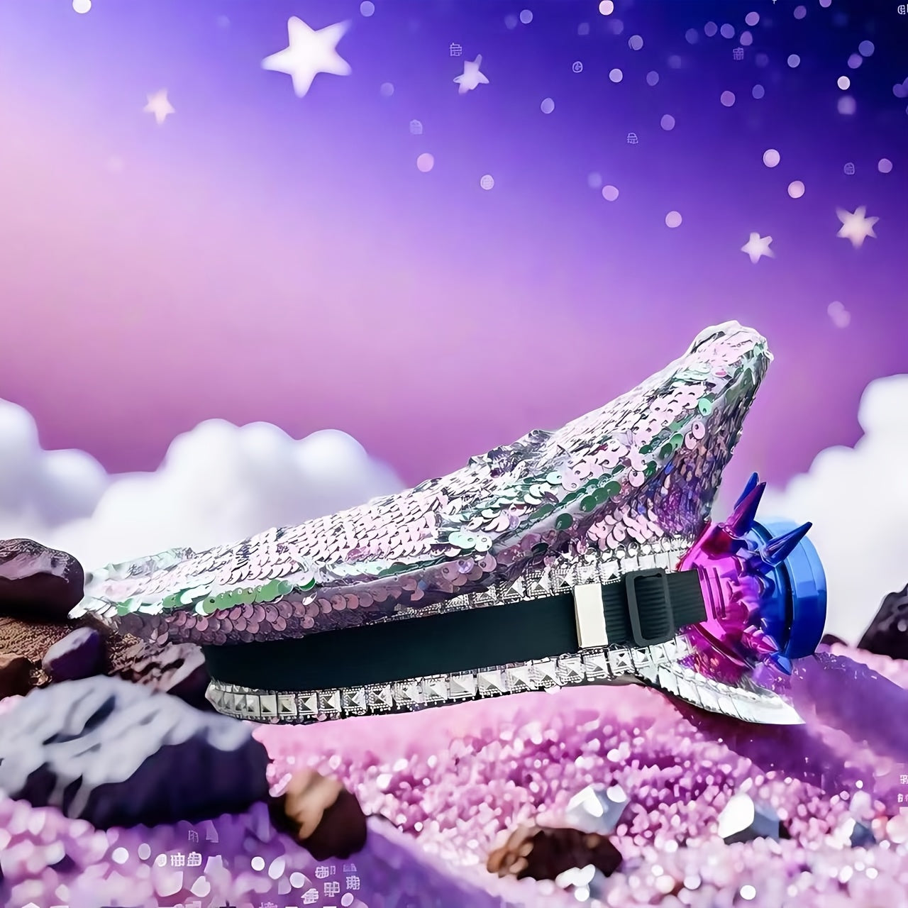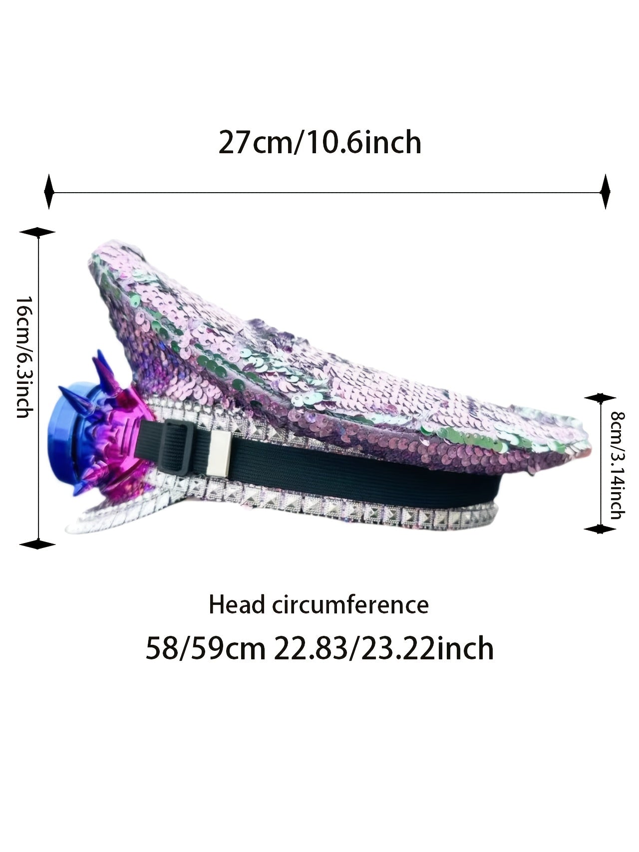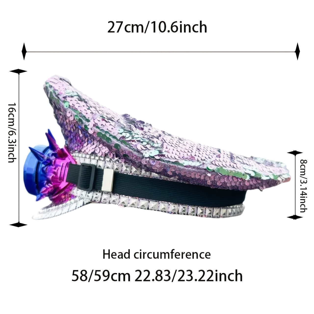 Bling Captain Hat Rhinestone with Purple Sequins & Steampunk Glasses - Sparkly Army Cap for Burning for Man Festival, Raves, Music Parties - Military Accessories, Steampunk Costume Hat