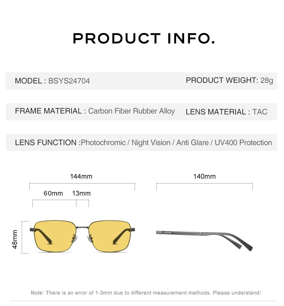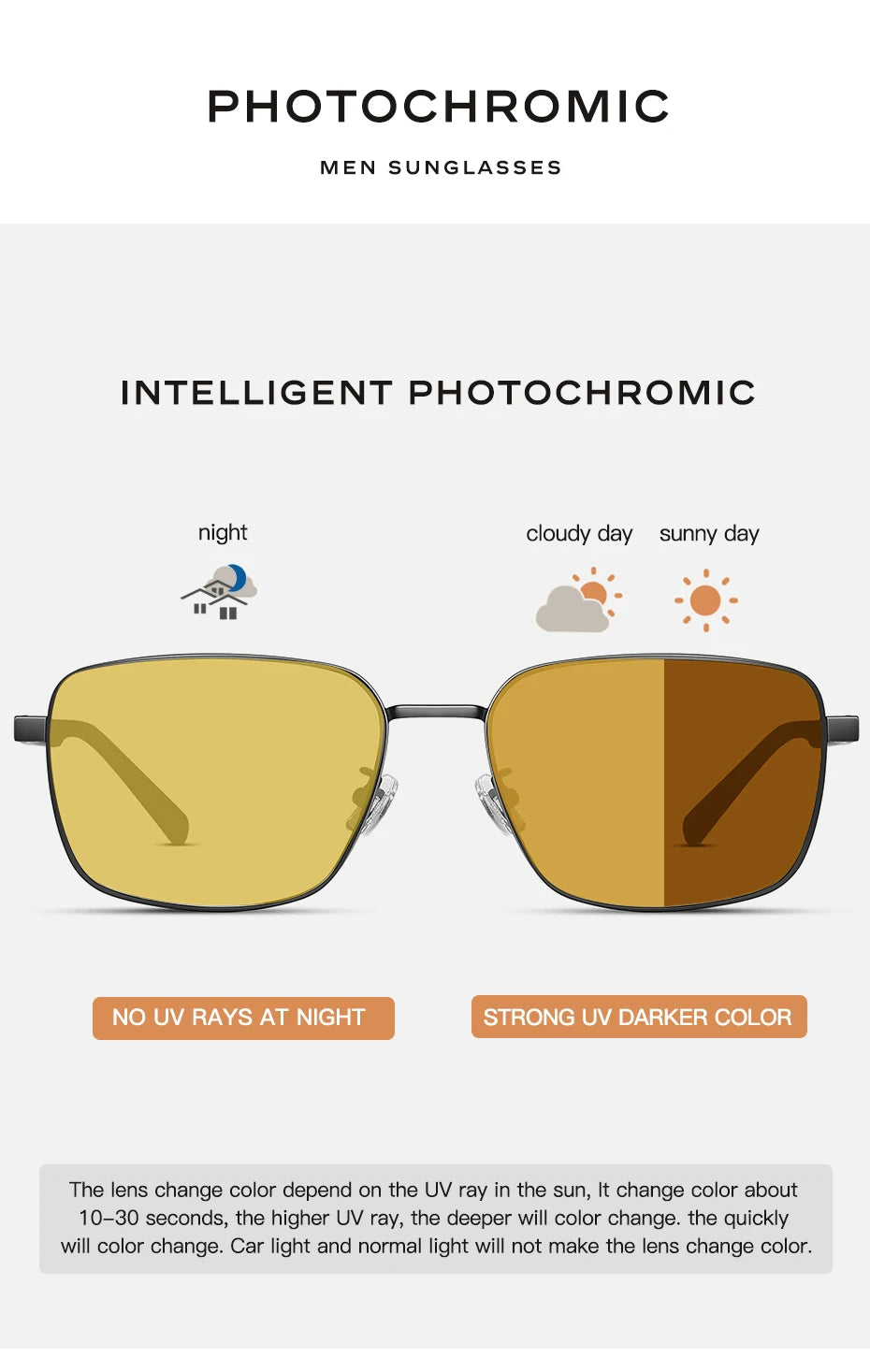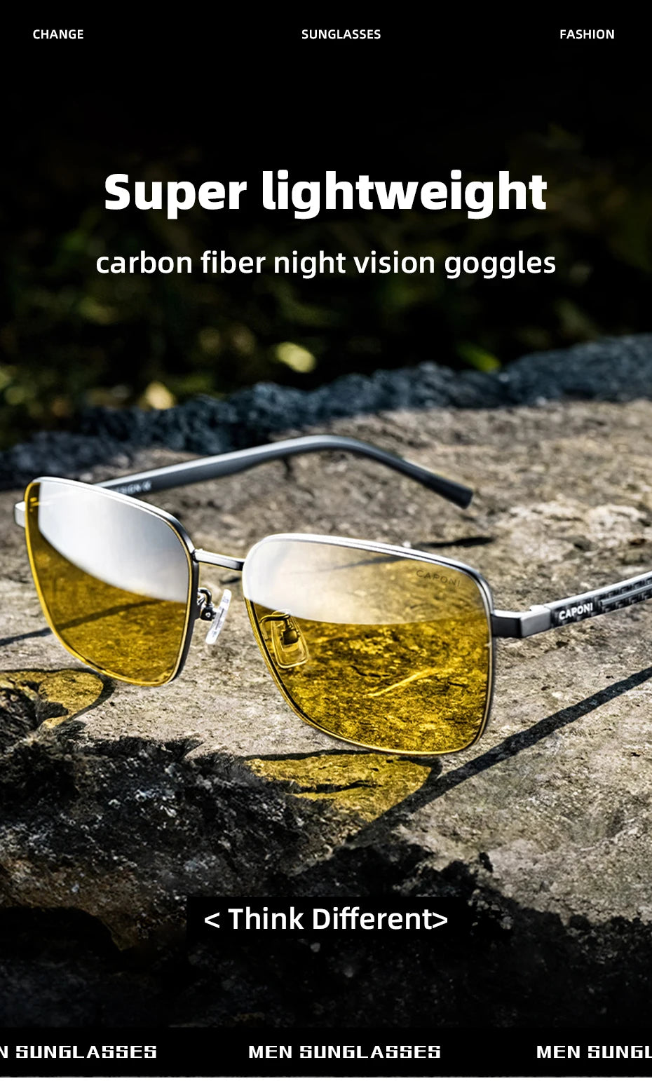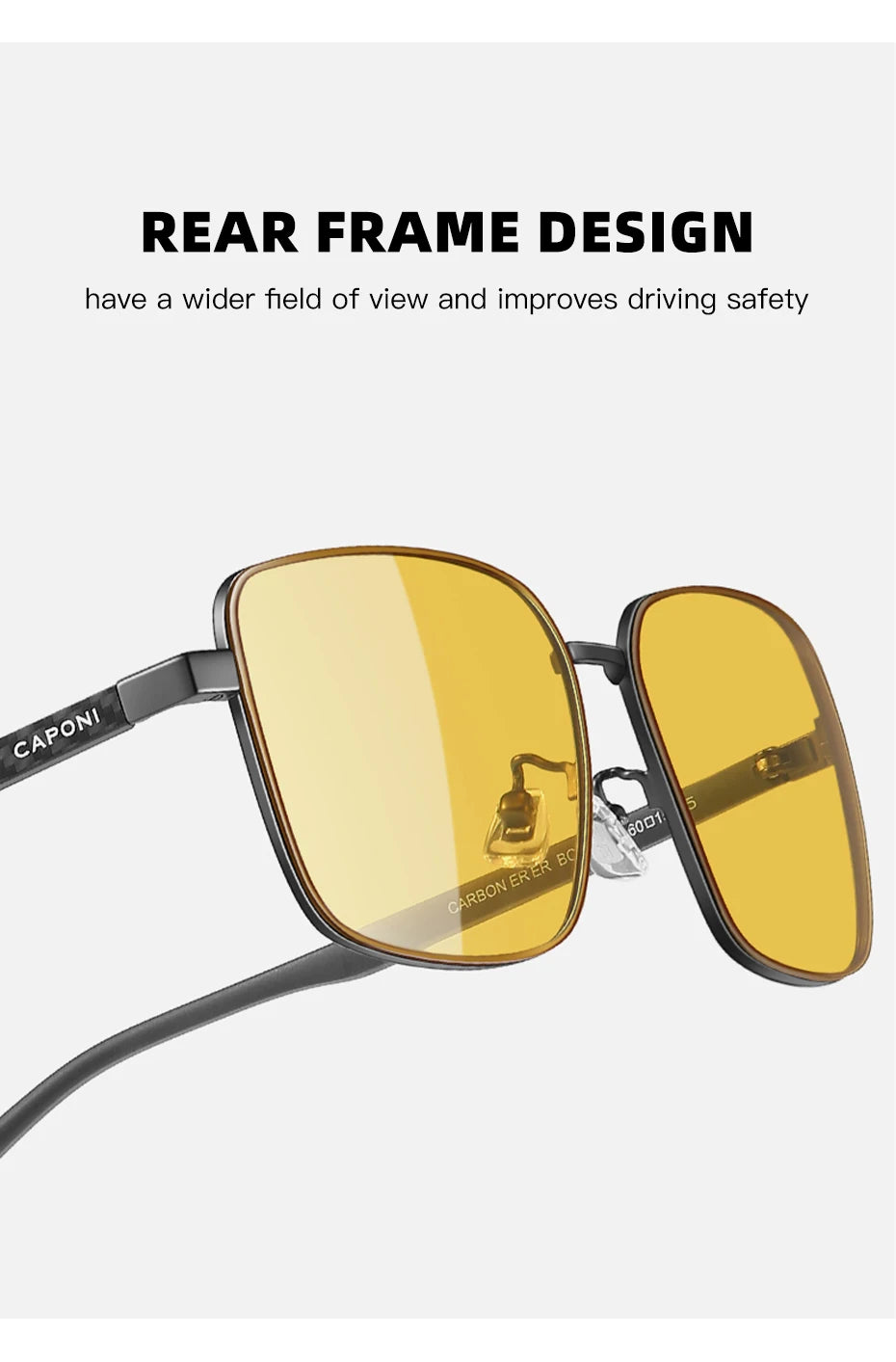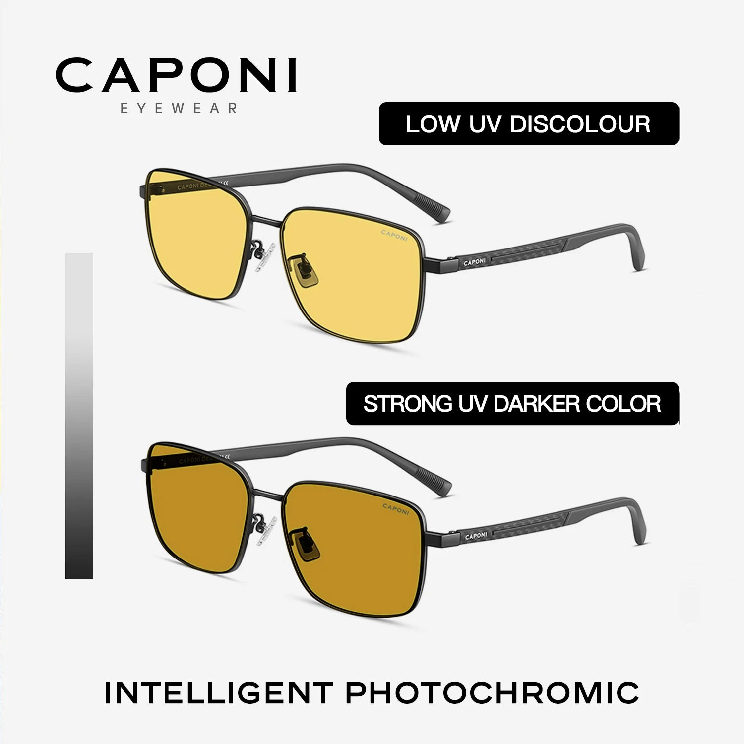CAPONI Night Vision Sunglass Men Outdoor Photochromic Square Shades Driving Sunglasses UV400 Protection Brand Designer BSYS24704
