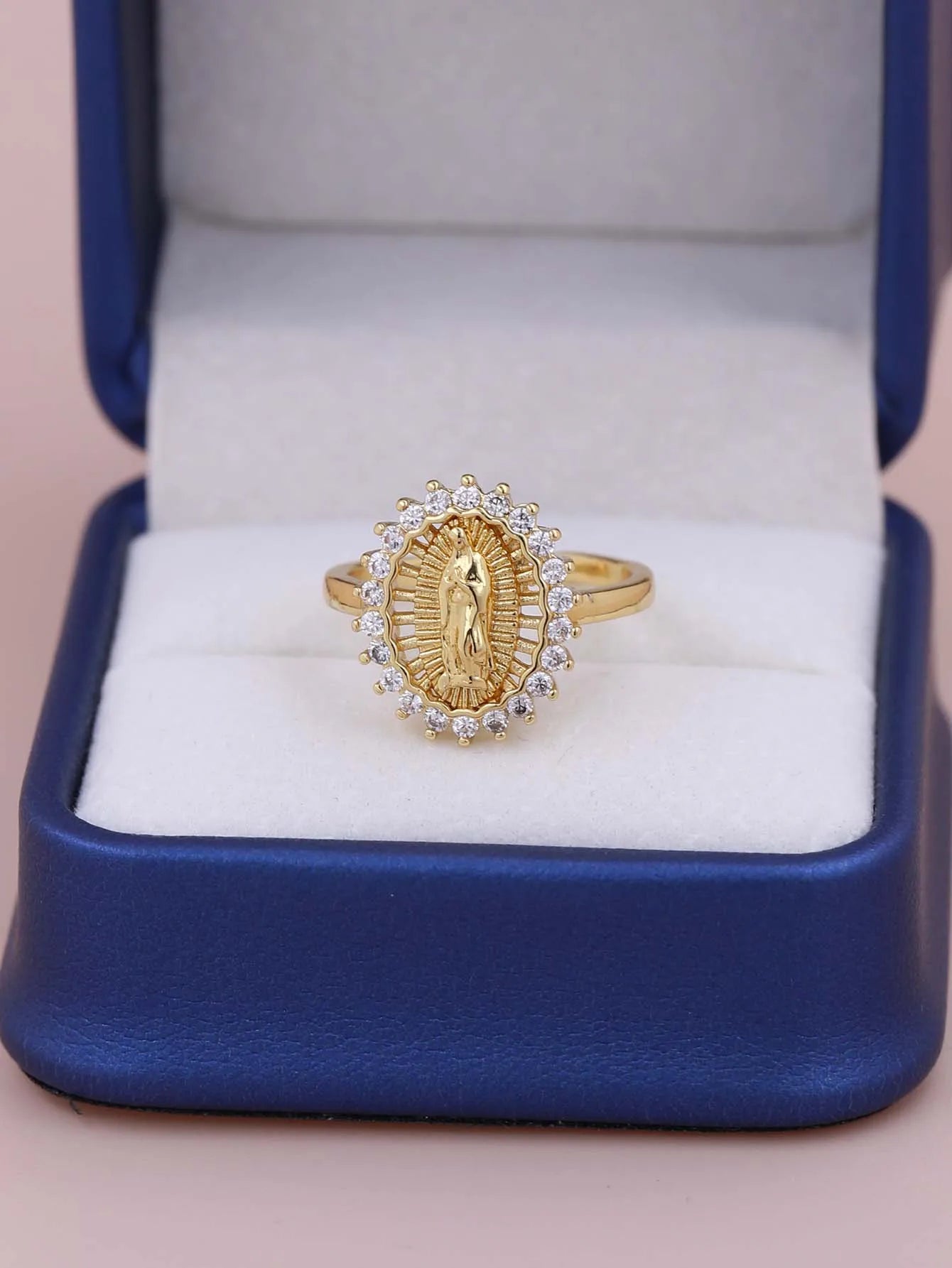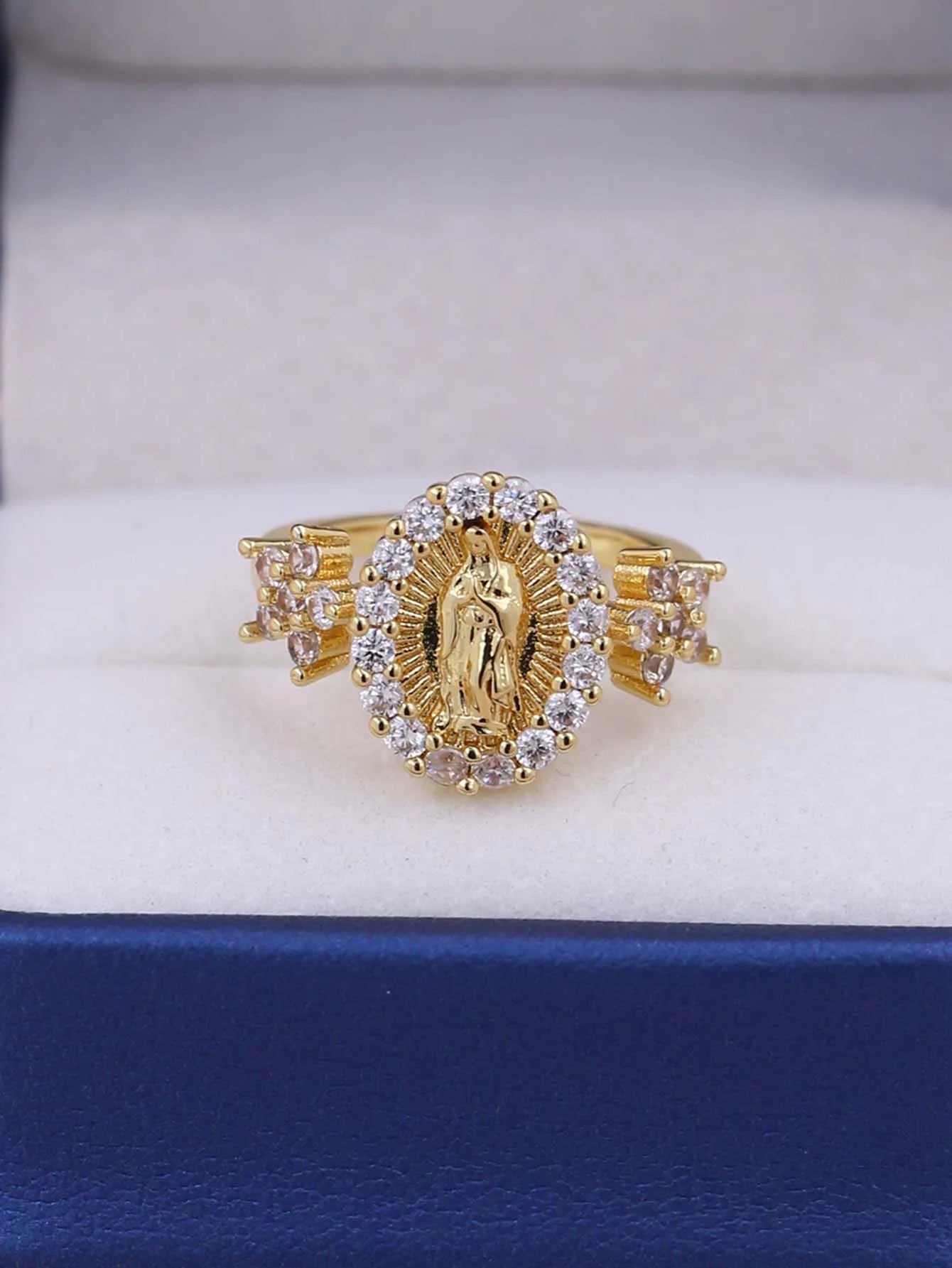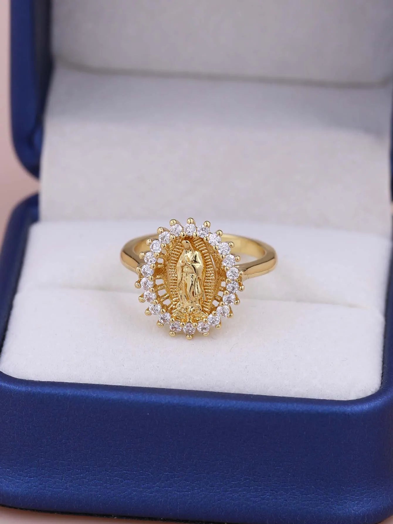 Classic Versatile Geometric Shape White Zircon Plated Gold Copper Virgin Mary Ring