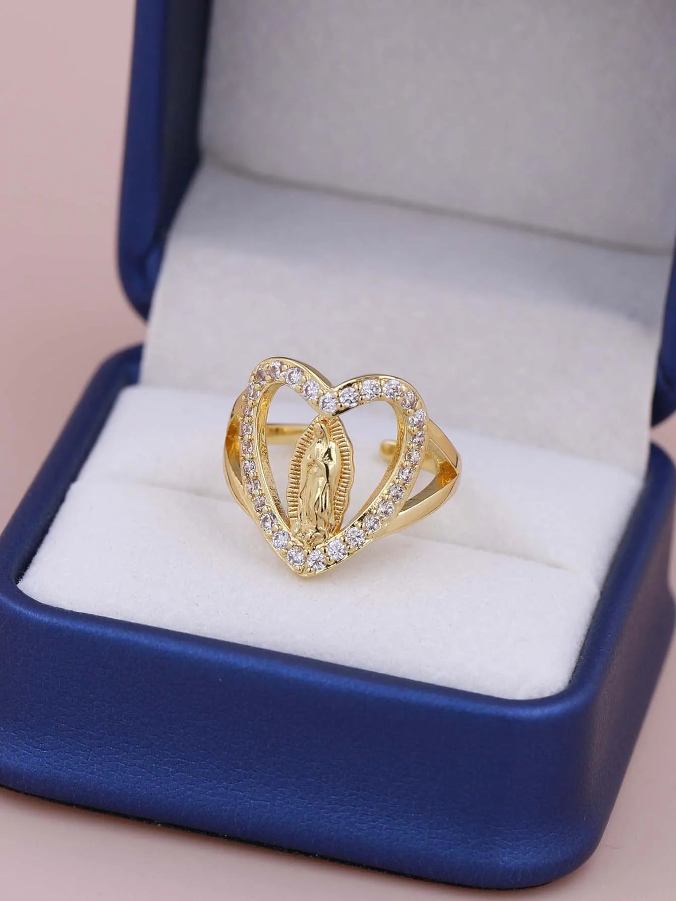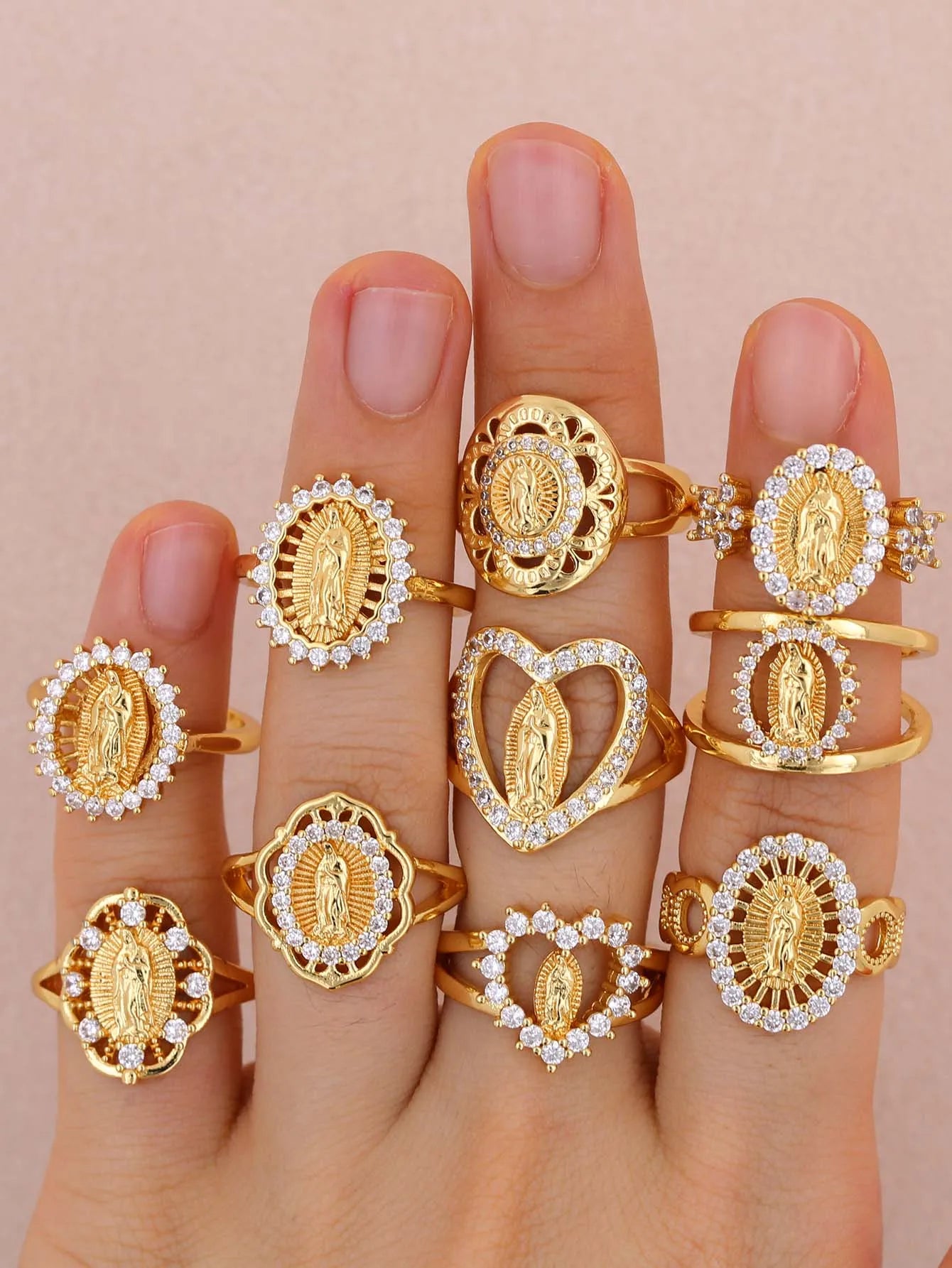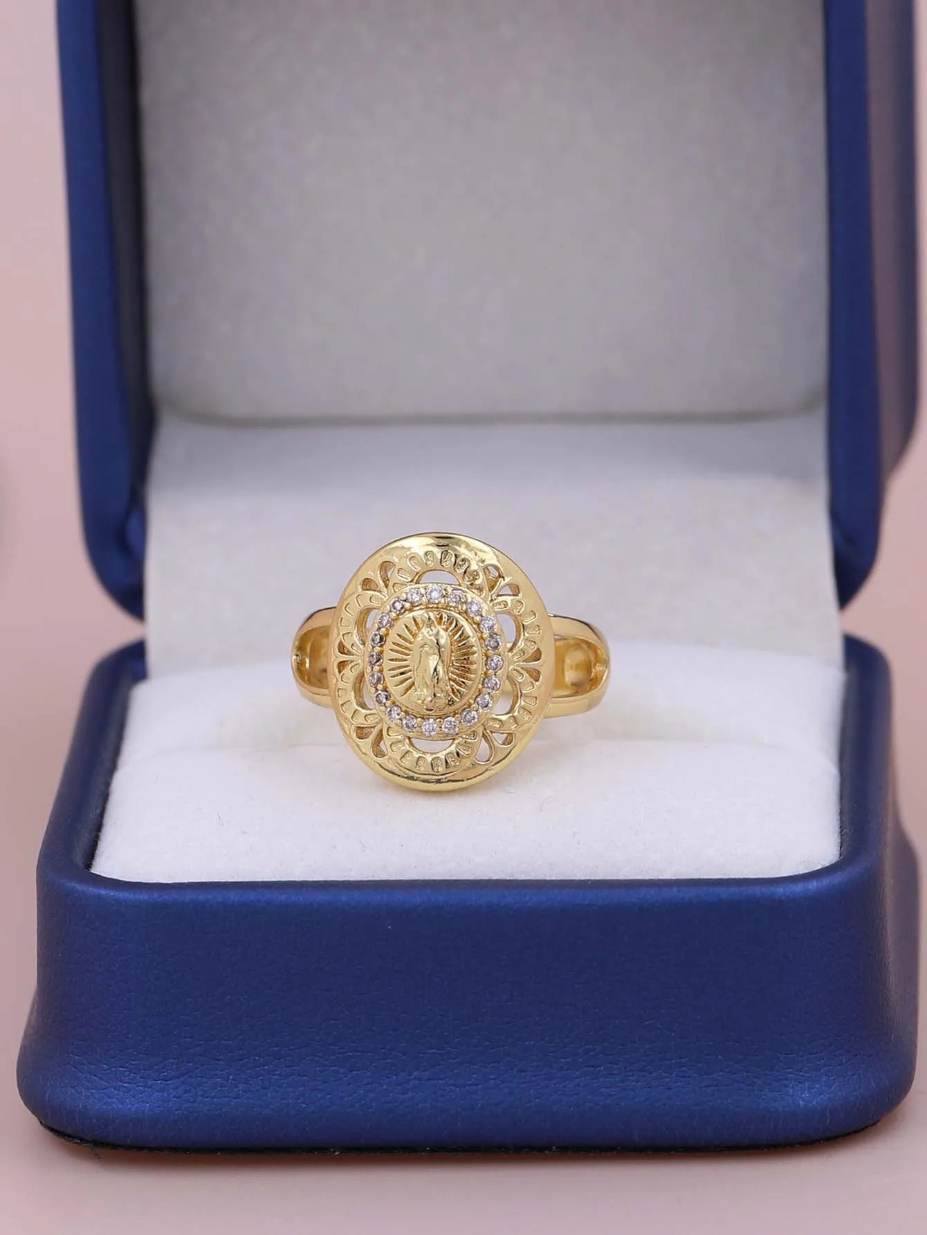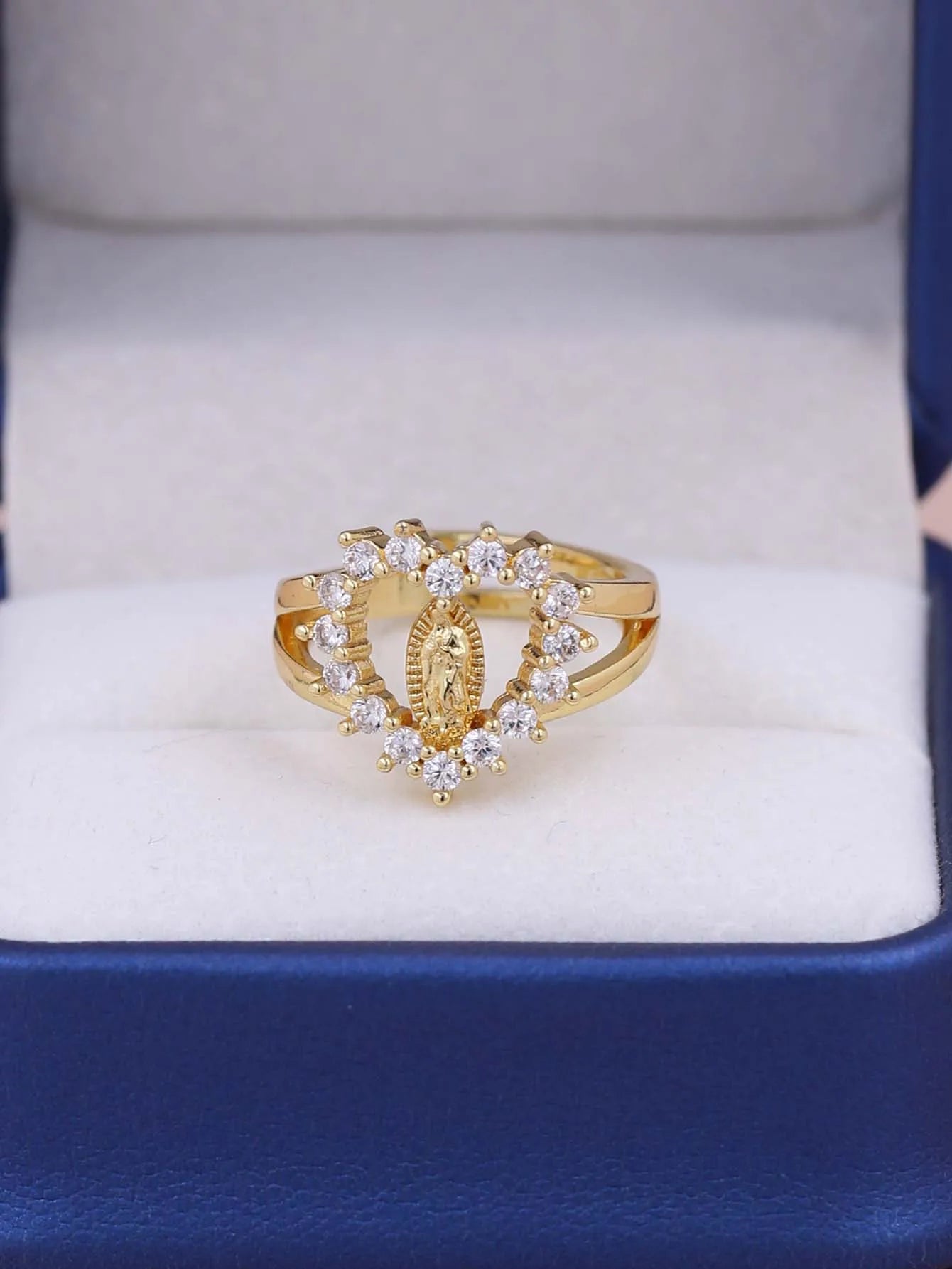 Classic Versatile Geometric Shape White Zircon Plated Gold Copper Virgin Mary Ring