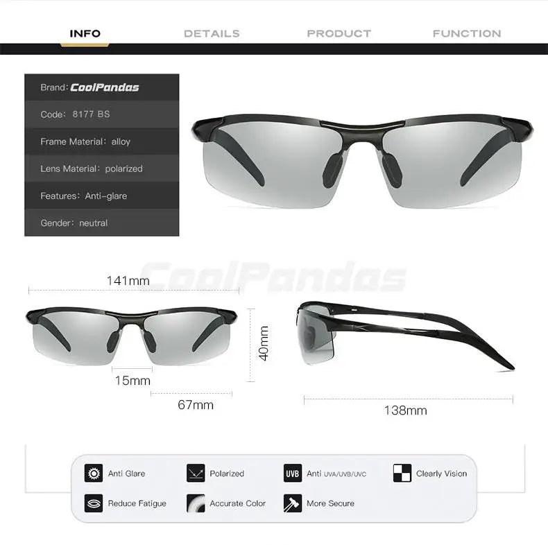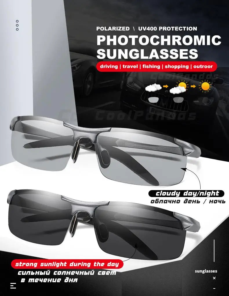 COOLPANDAS Aluminum Photochromic Sunglasses Men Polarized Day Night Driving Glasses Chameleon Anti-Glare gafas de sol hombre