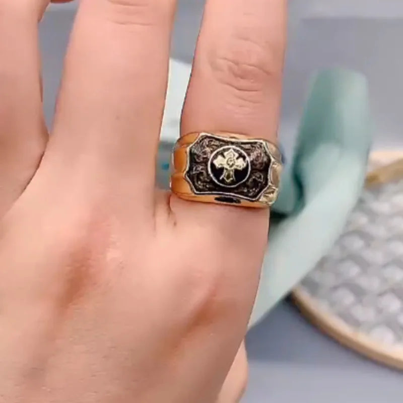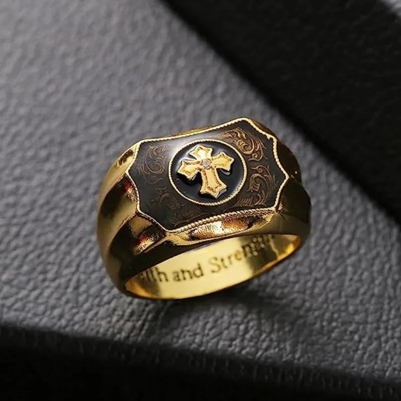 Creative Gold plated Color Artificial Black Onyx Cross Faith and Strength Ring for Men Party Charm Gift Wholesale Fashion Accessories