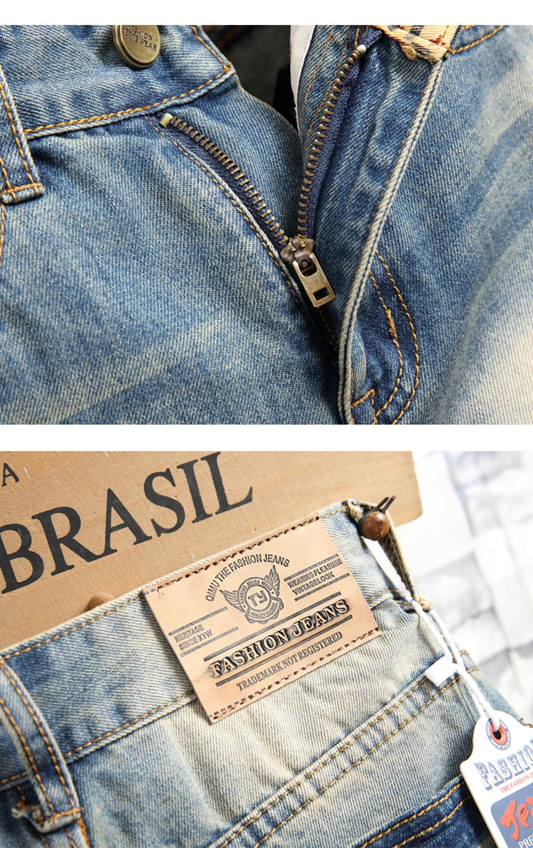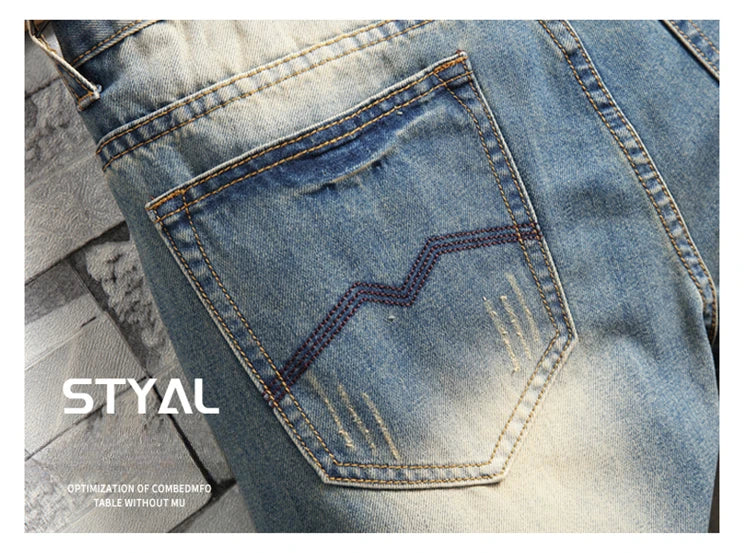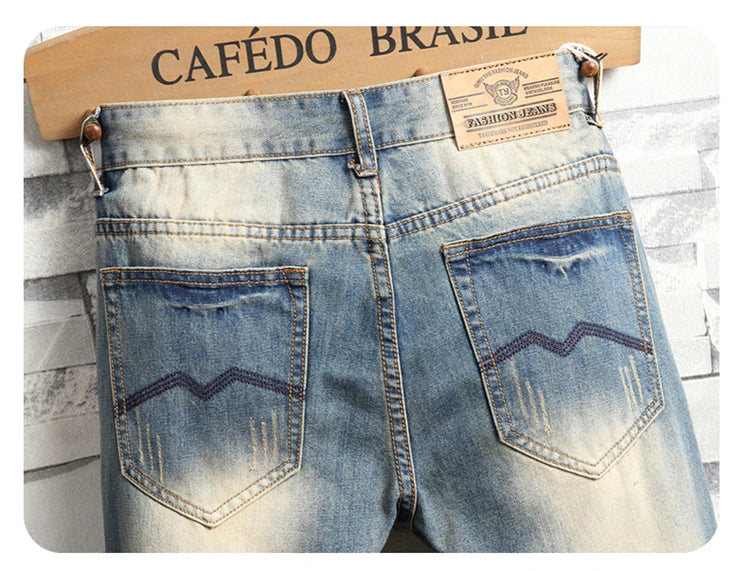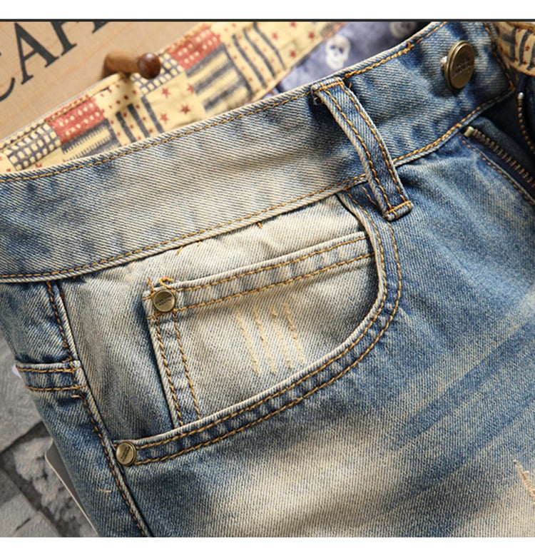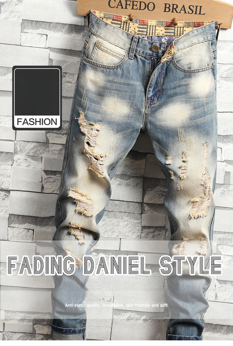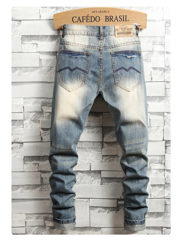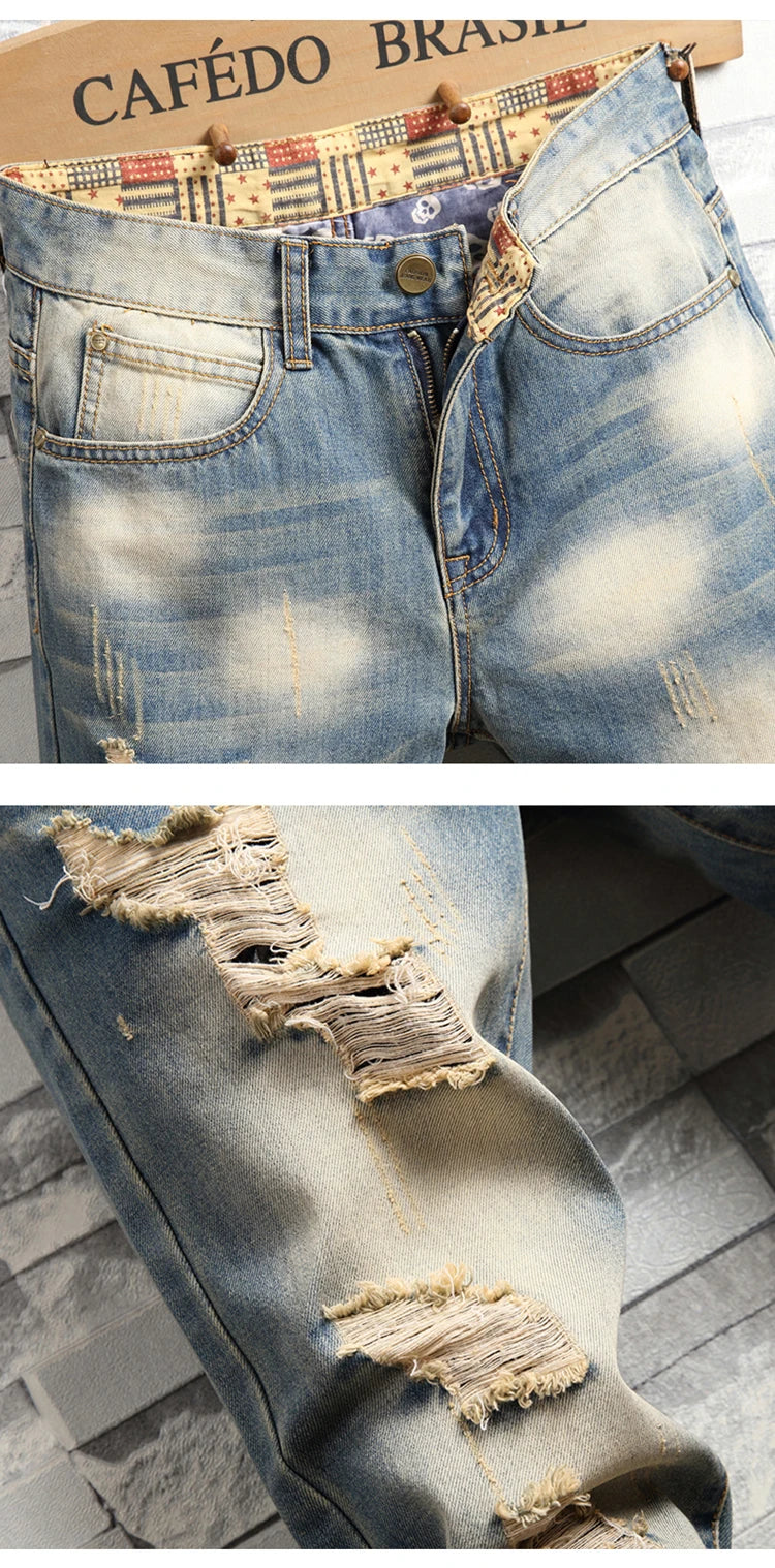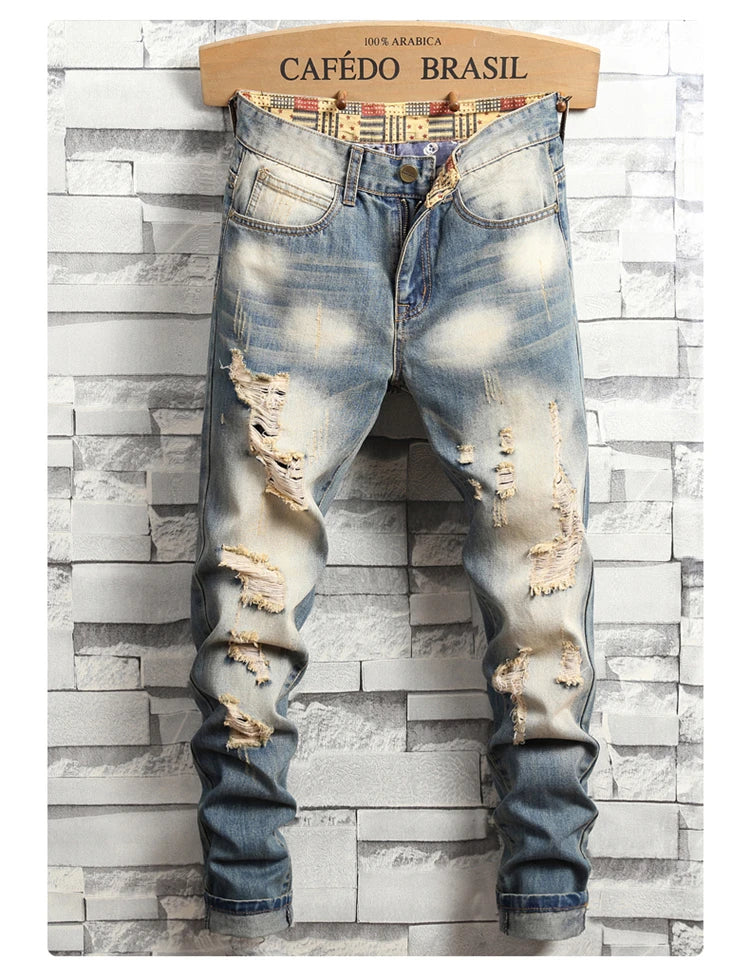 Distressed Ripped Jeans Men's Retro Blue Fashion Slim Motorcycle Trousers Male Hip-hop Street Male Hole Denim Pants