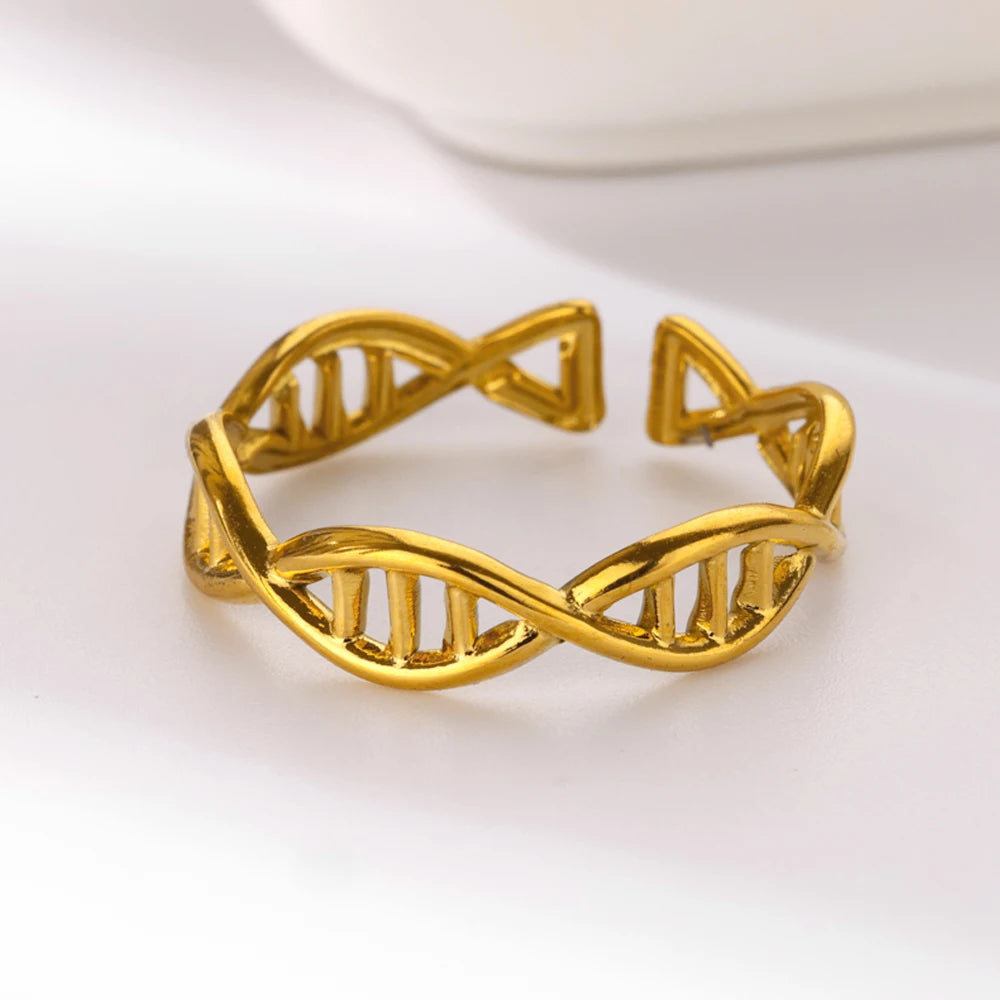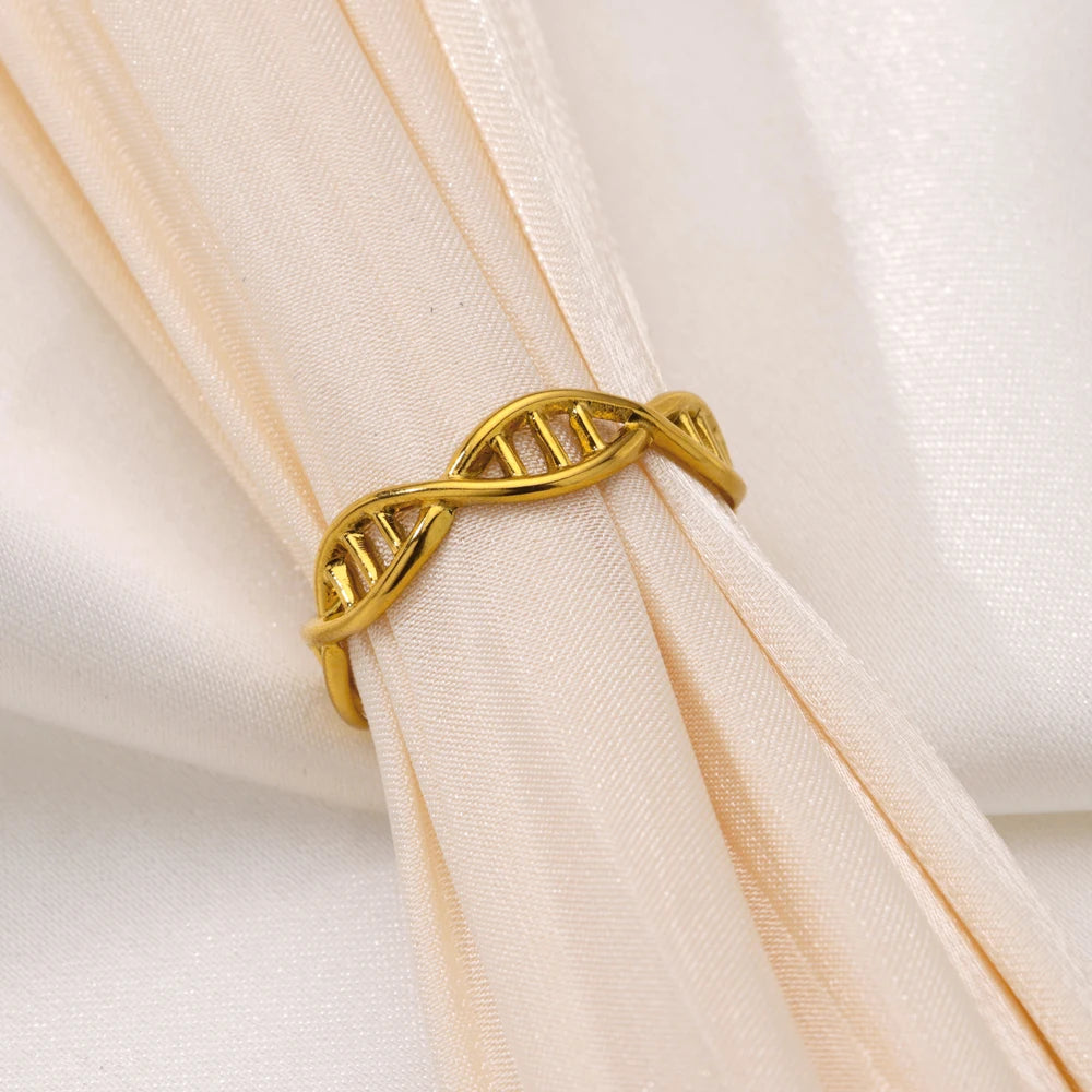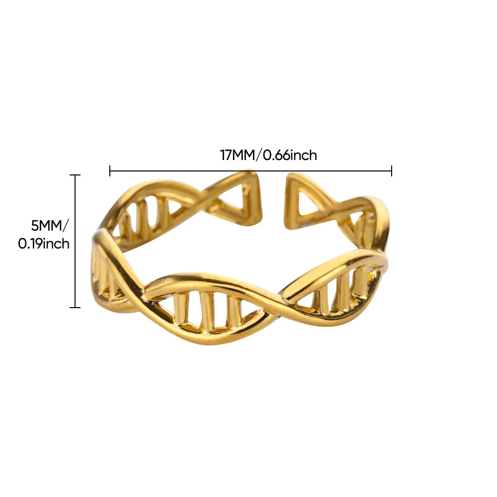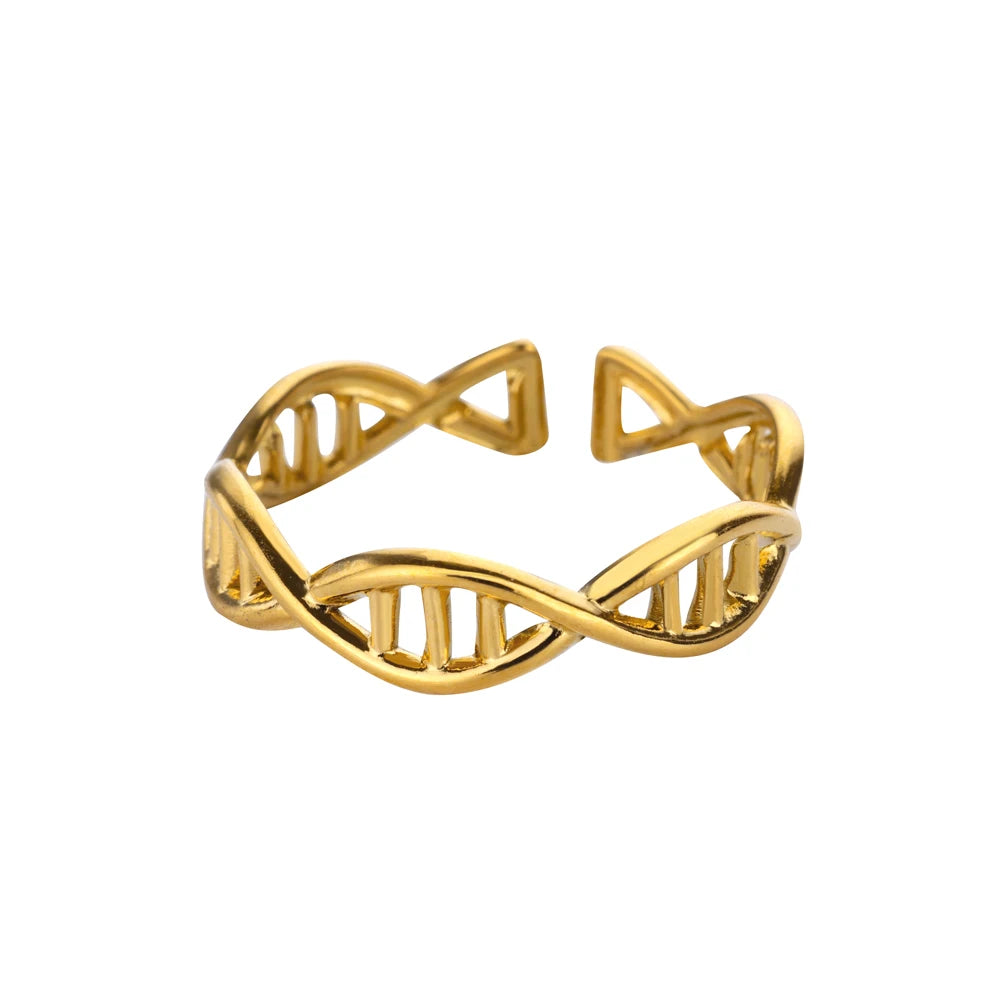 DNA Spiral Open Rings for Women Stainless Steel Gold Color