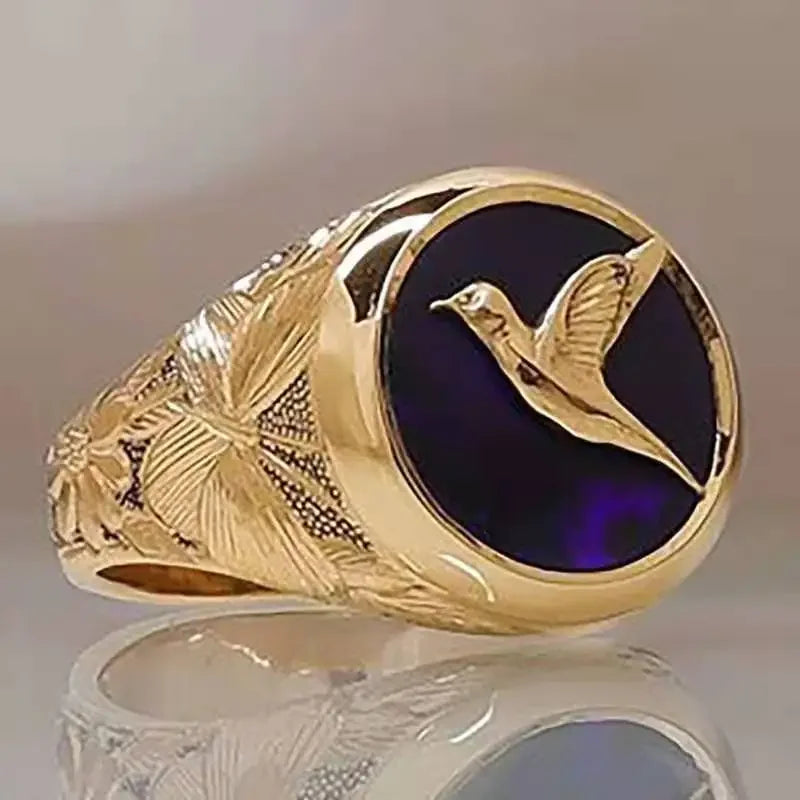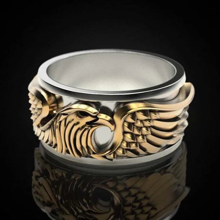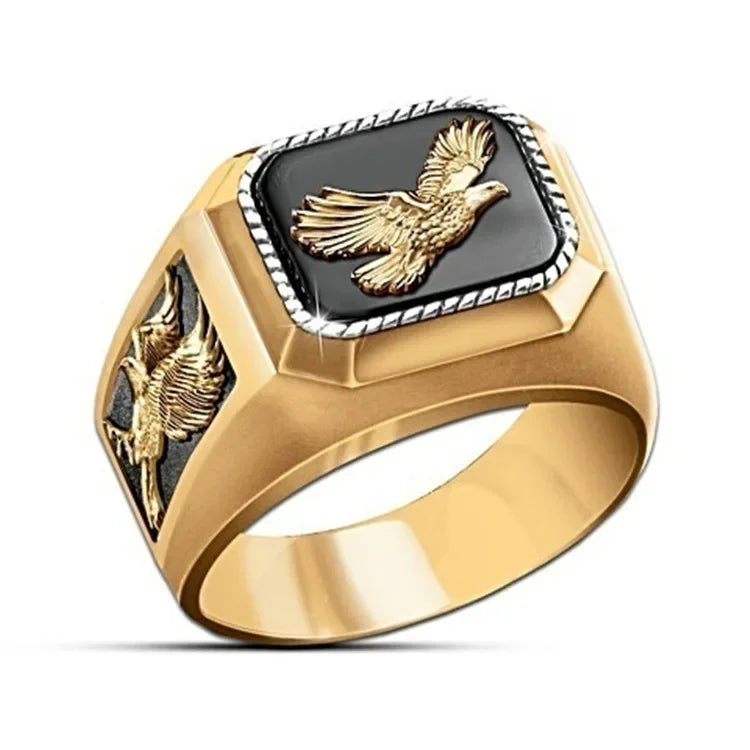 Eagle Flying Domineering Metal Eagle Male Ring Punk Style Enamel Animal Male Ring For Man Jewelry Gold Color Ring
