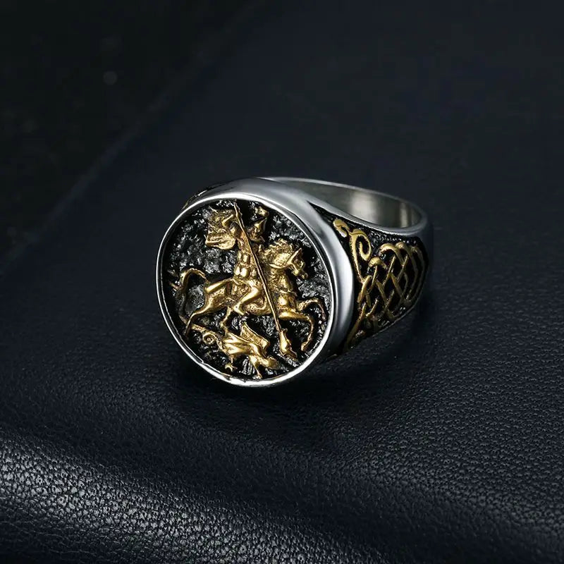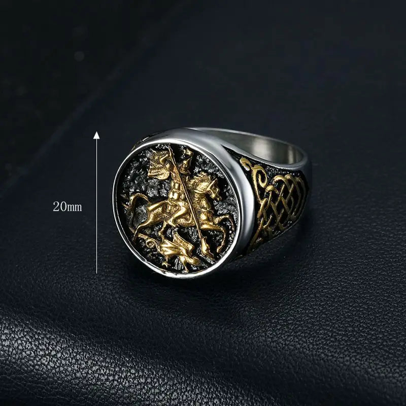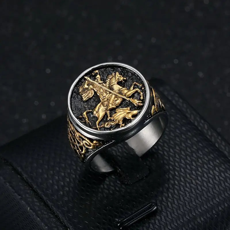 European and American Cross-Border New Ring Titanium Steel/Stainless Steel Vacuum Gold-Plated Saint George Dragon Slaying Knight Men's Ring