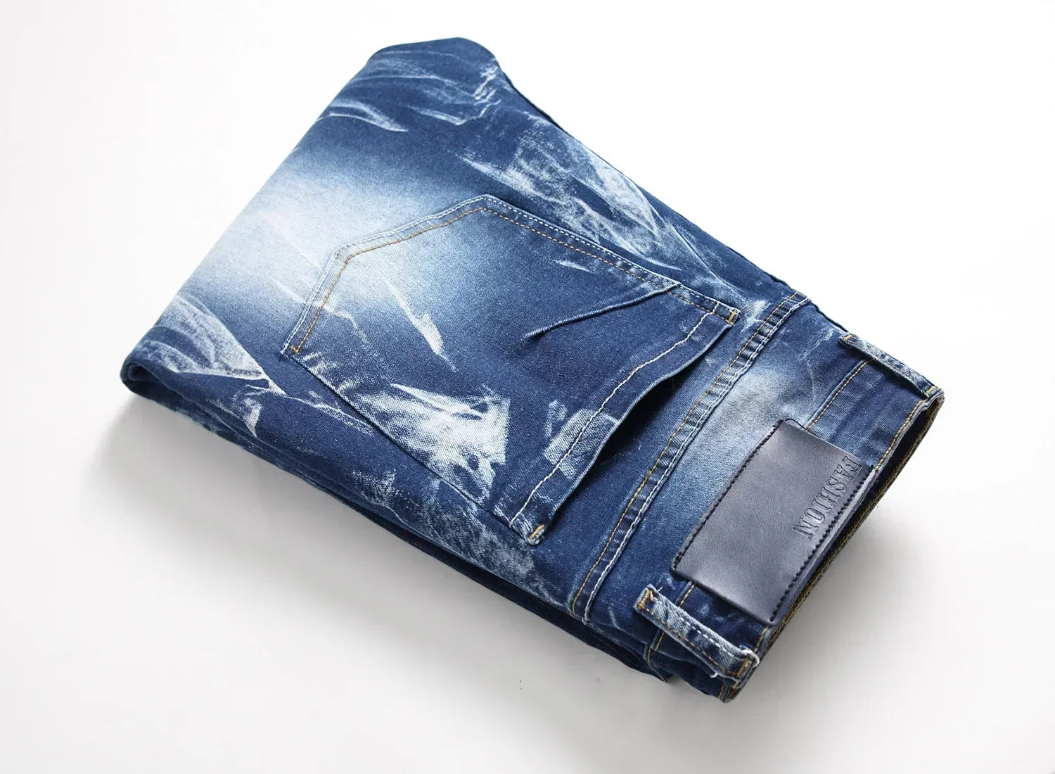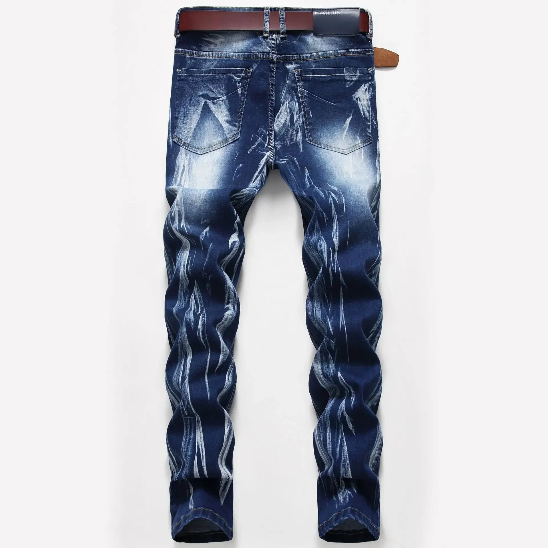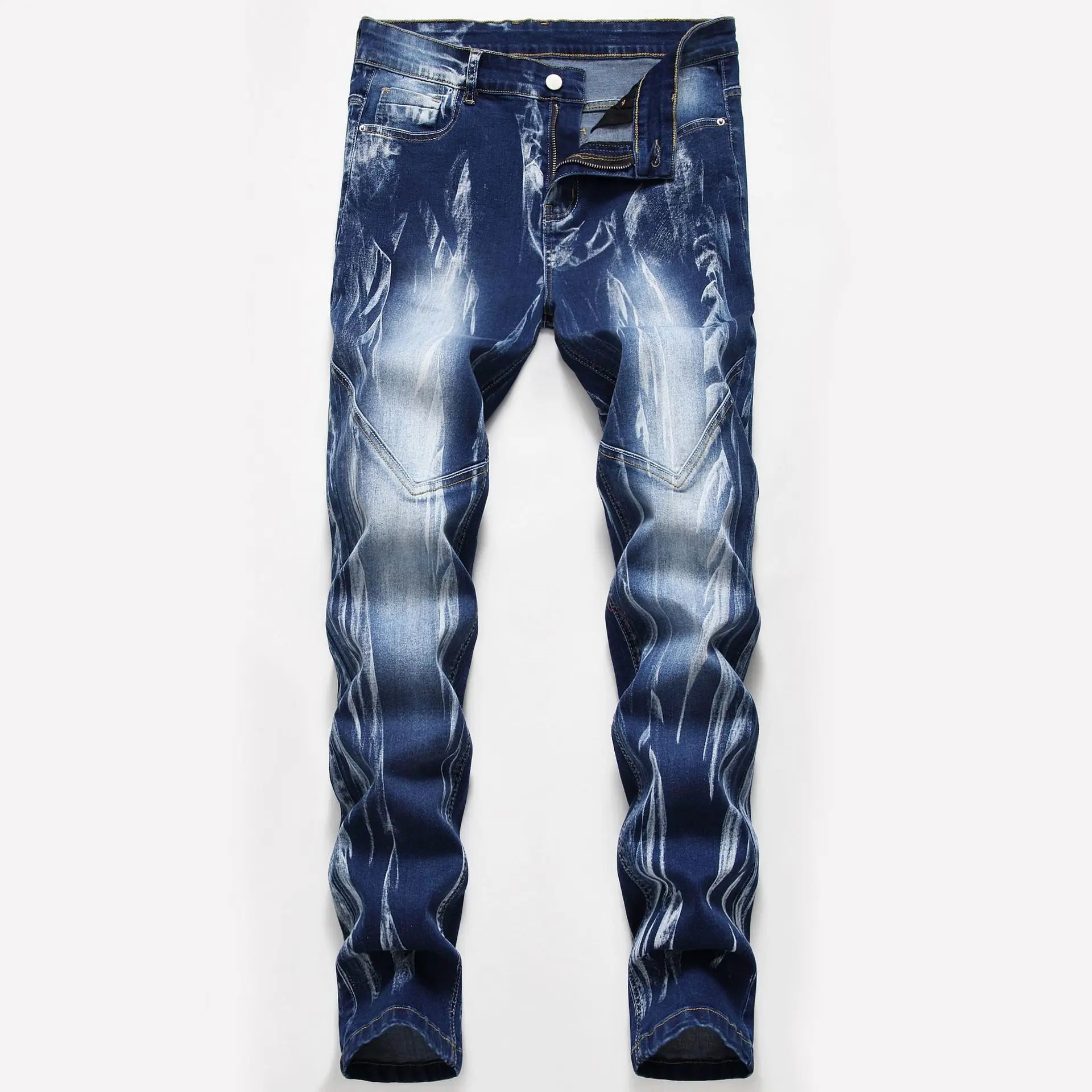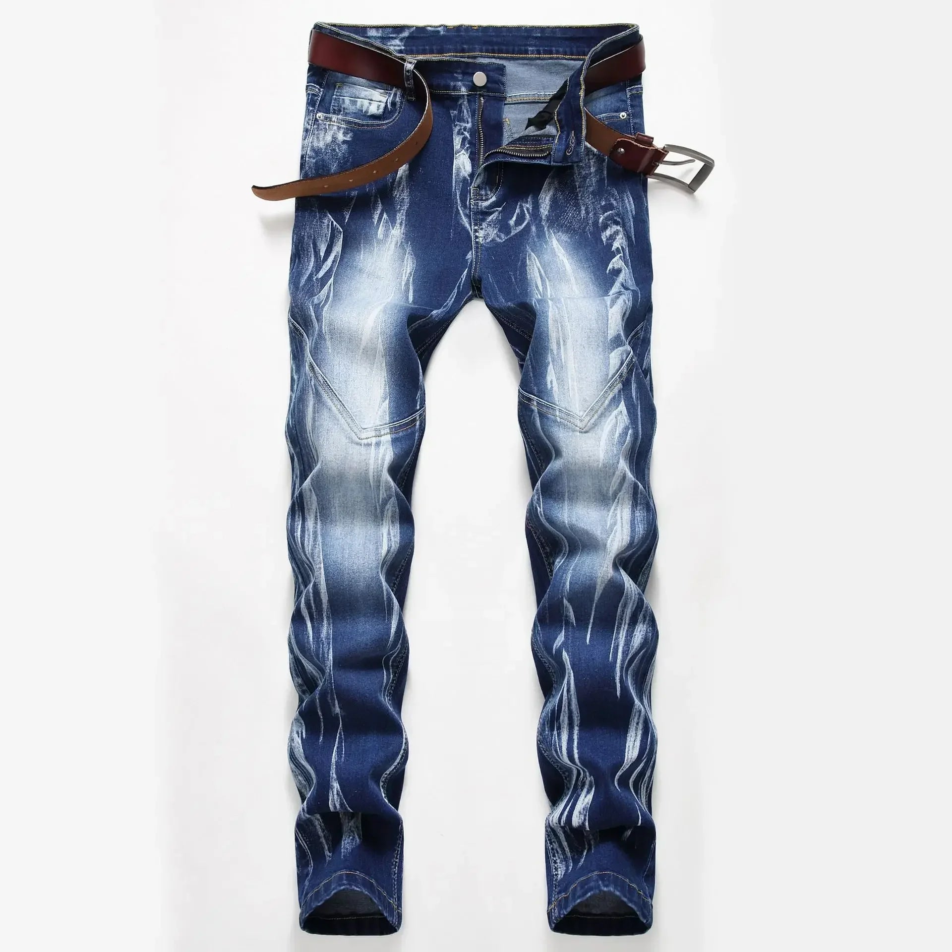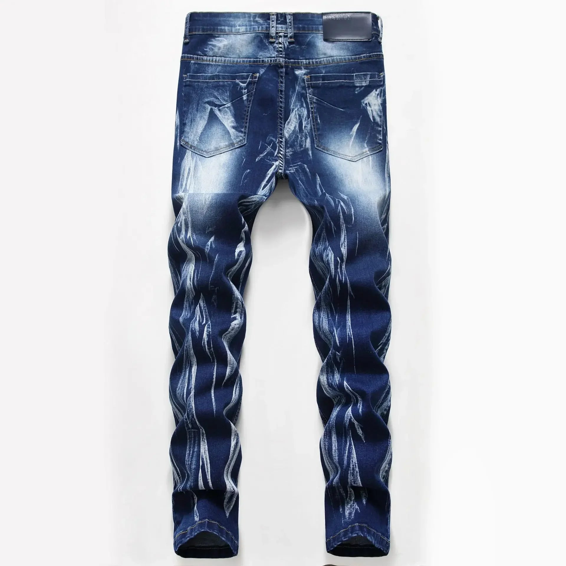 Fashion Print Men's Elasticity Slim Skinny Jeans Popular Spray Pattern DenimTrousers Male Casual Streetwear Brand Long Pants