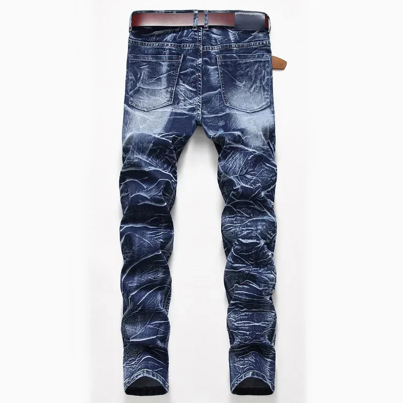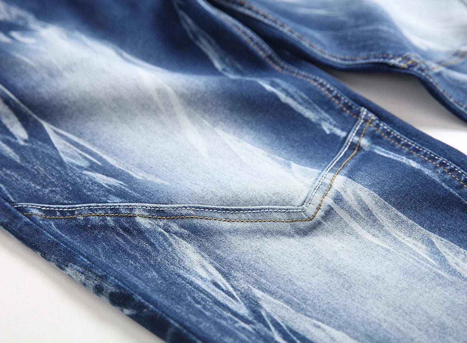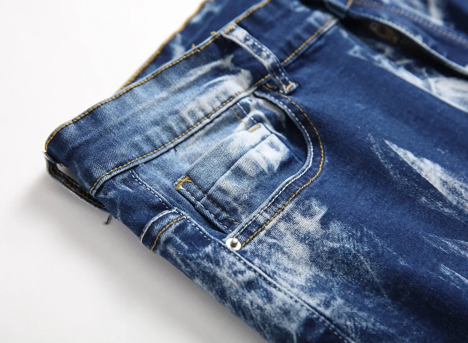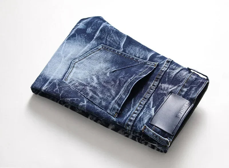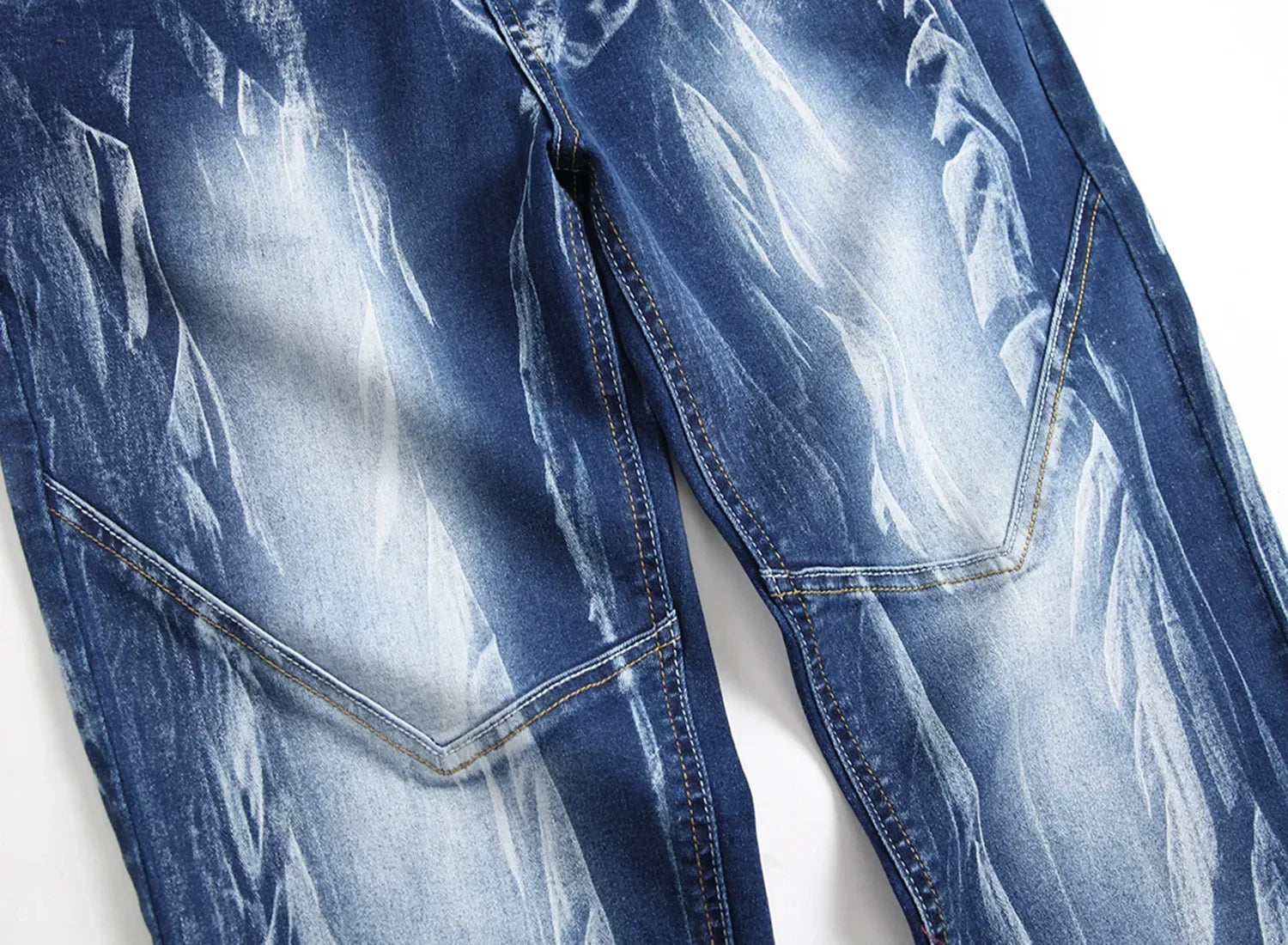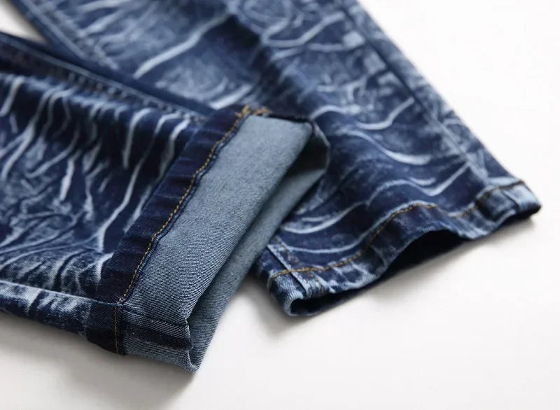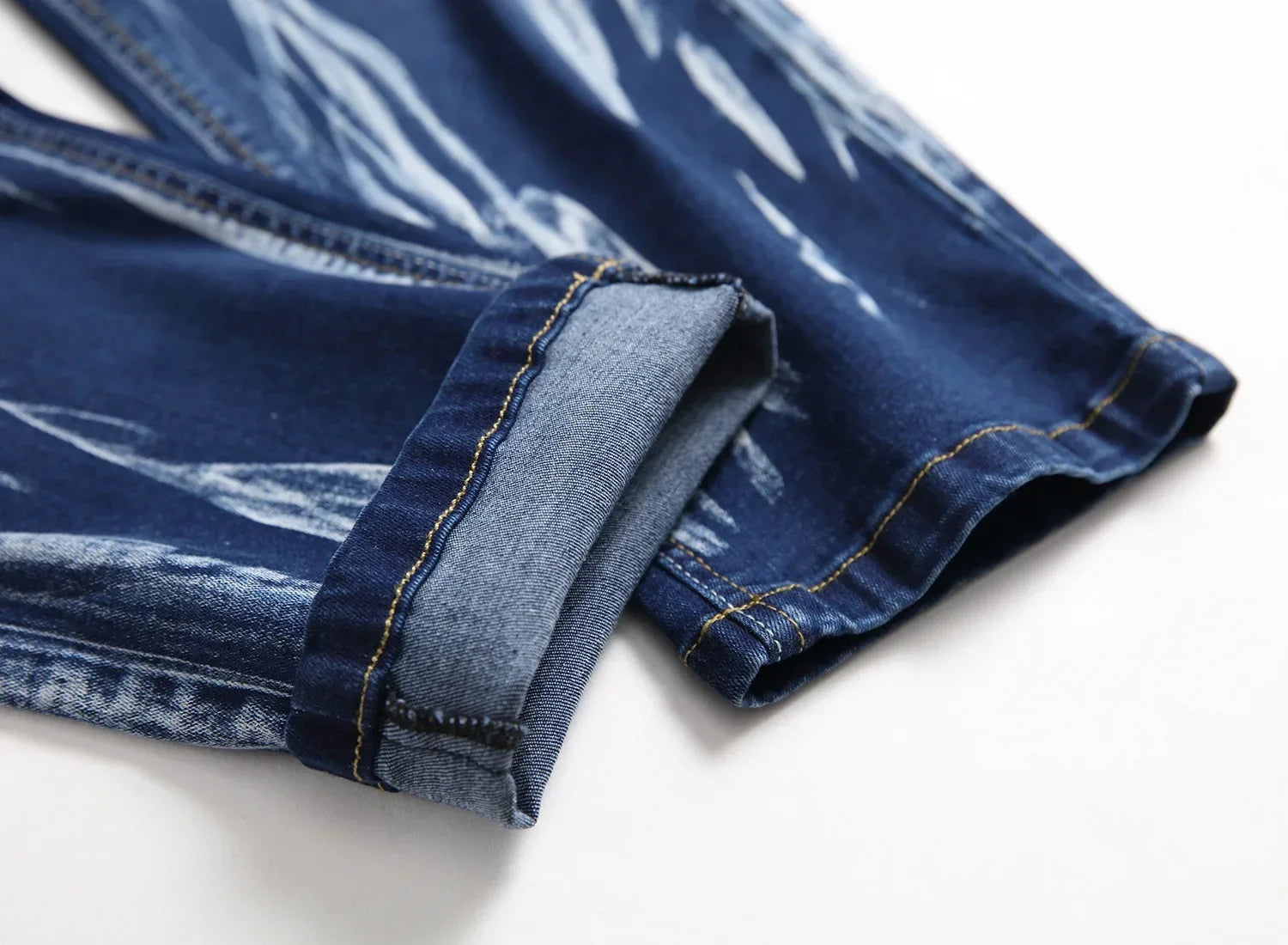 Fashion Print Men's Elasticity Slim Skinny Jeans Popular Spray Pattern DenimTrousers Male Casual Streetwear Brand Long Pants