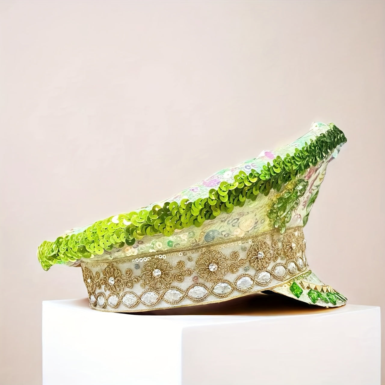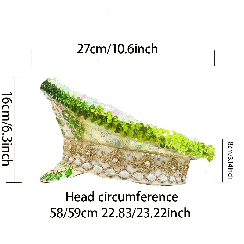 Festive Rhinestone Captain'S Hat for Parties - Sparkling Adjustable Design with Green Medallion & Lace Trim | Perfect for Burning Man, Birthdays, Theme Costume Events