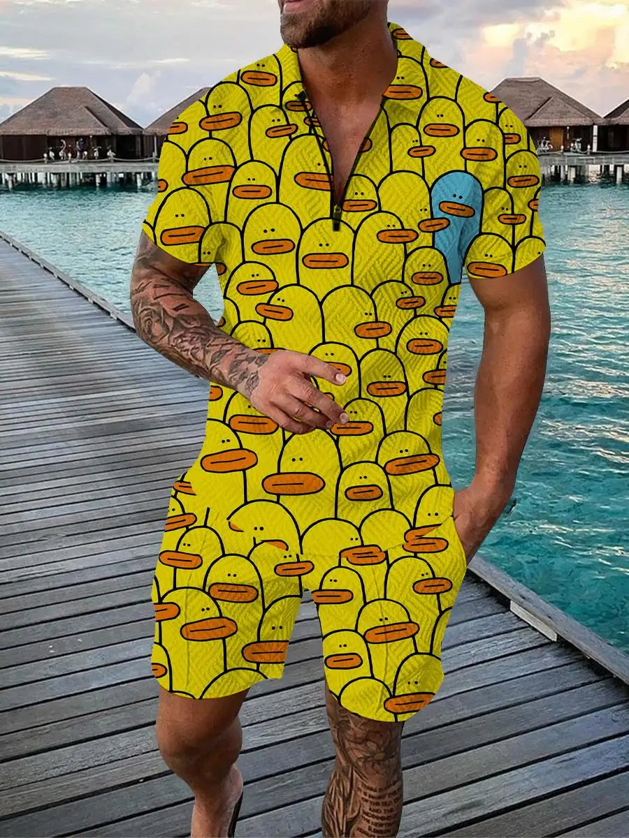 Cartoon Duck Panda 3D Print Polo Shirts & Shorts Suits