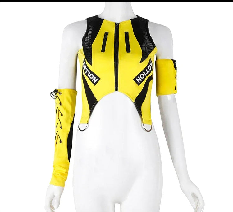 Fluorescent Green/yellow Tops Black Shorts Outfits