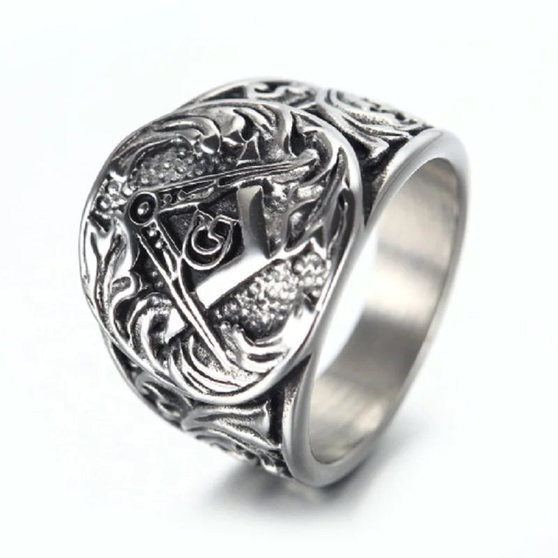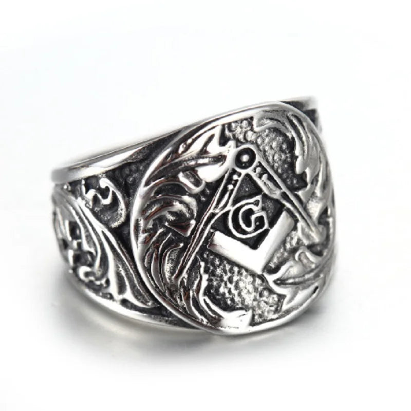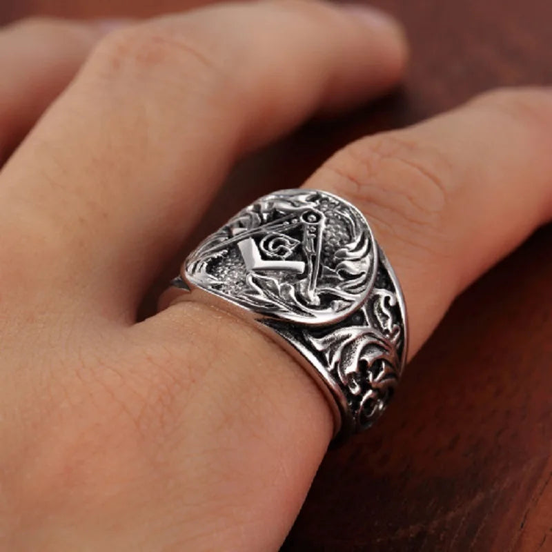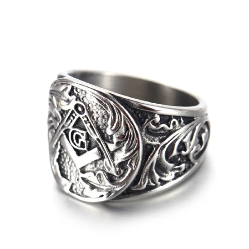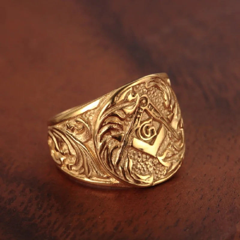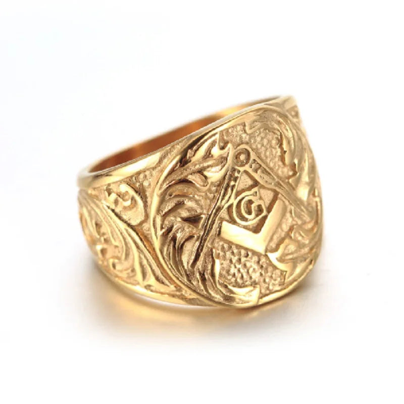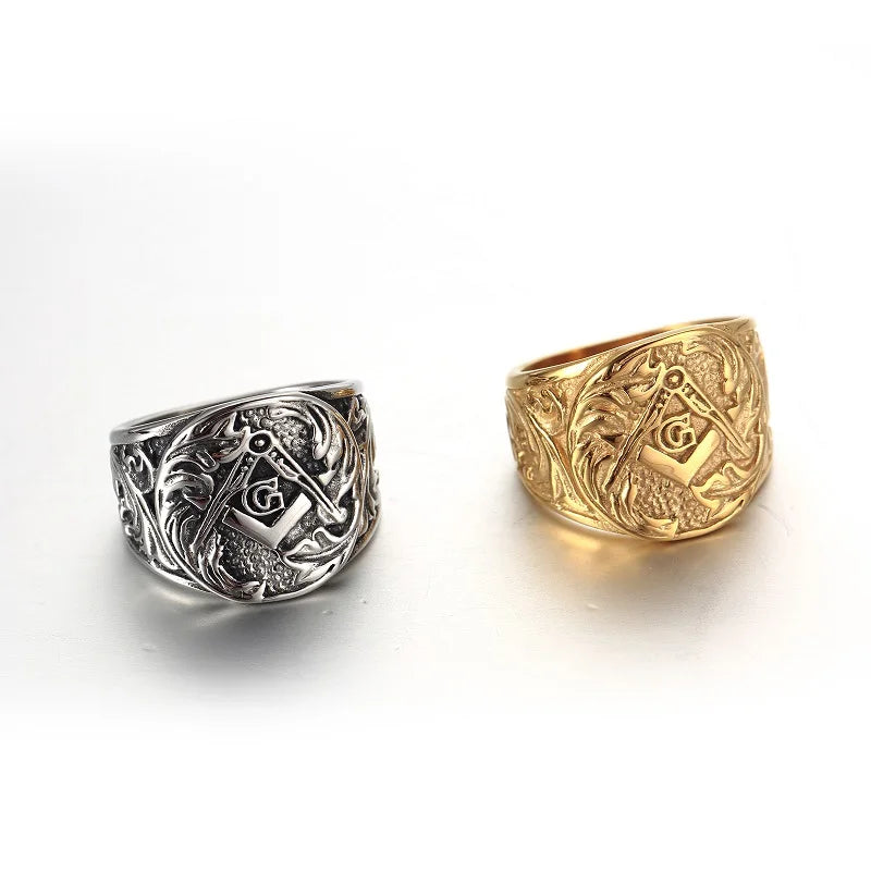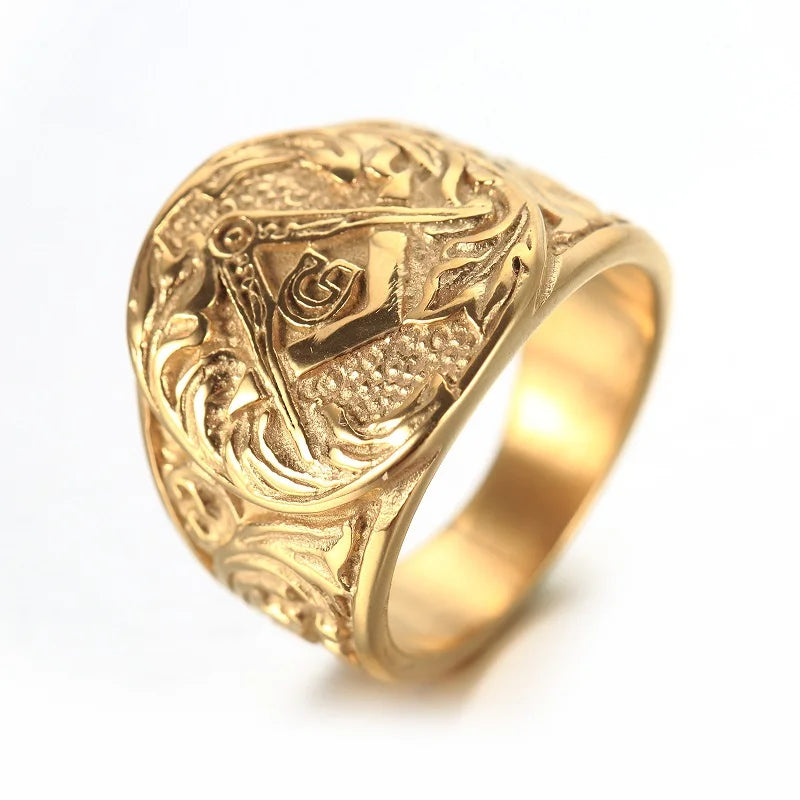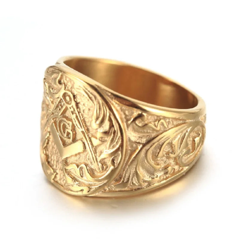 Gold And Silver color Embossed Stamped Freemason Masonic Ring 316L Stainless Steel
