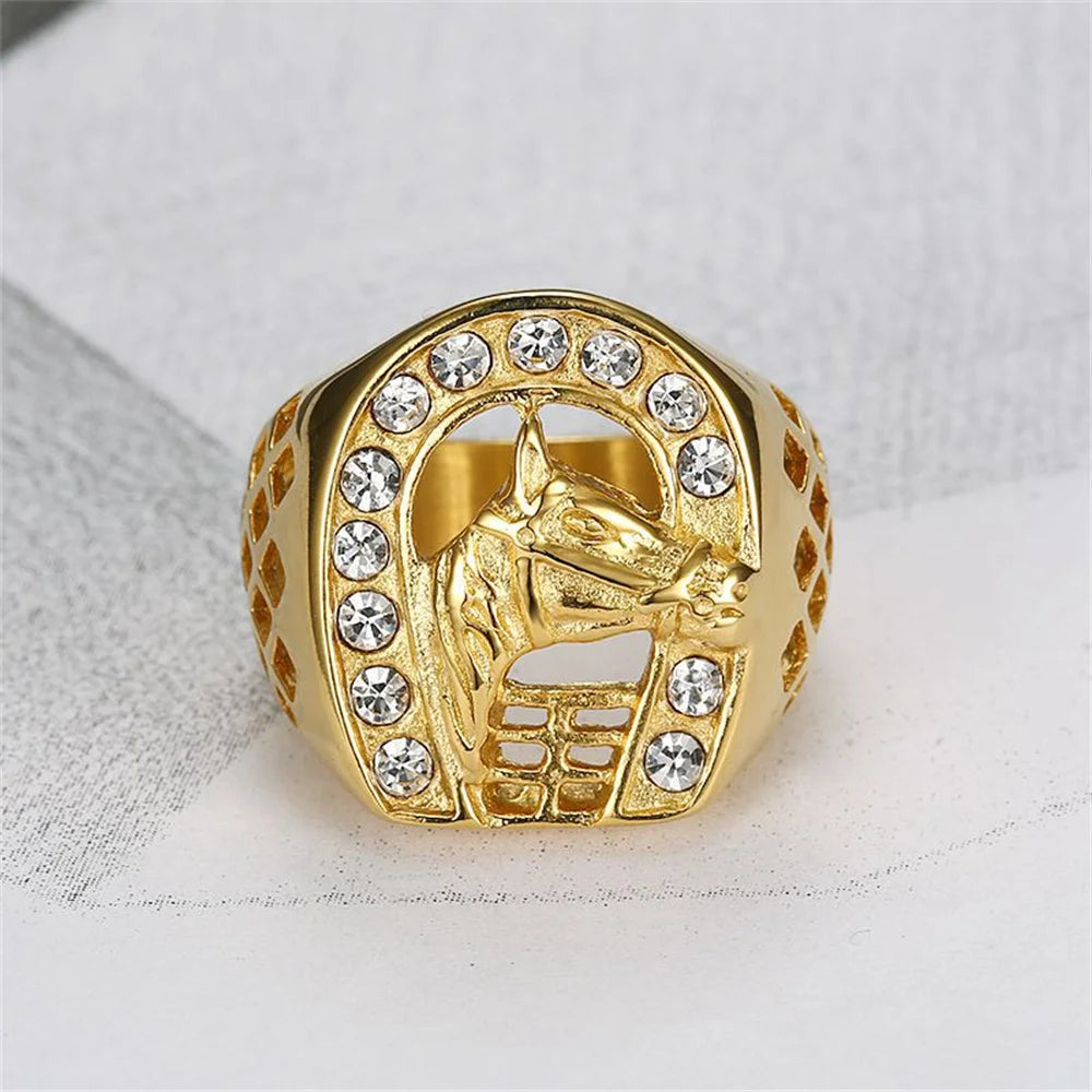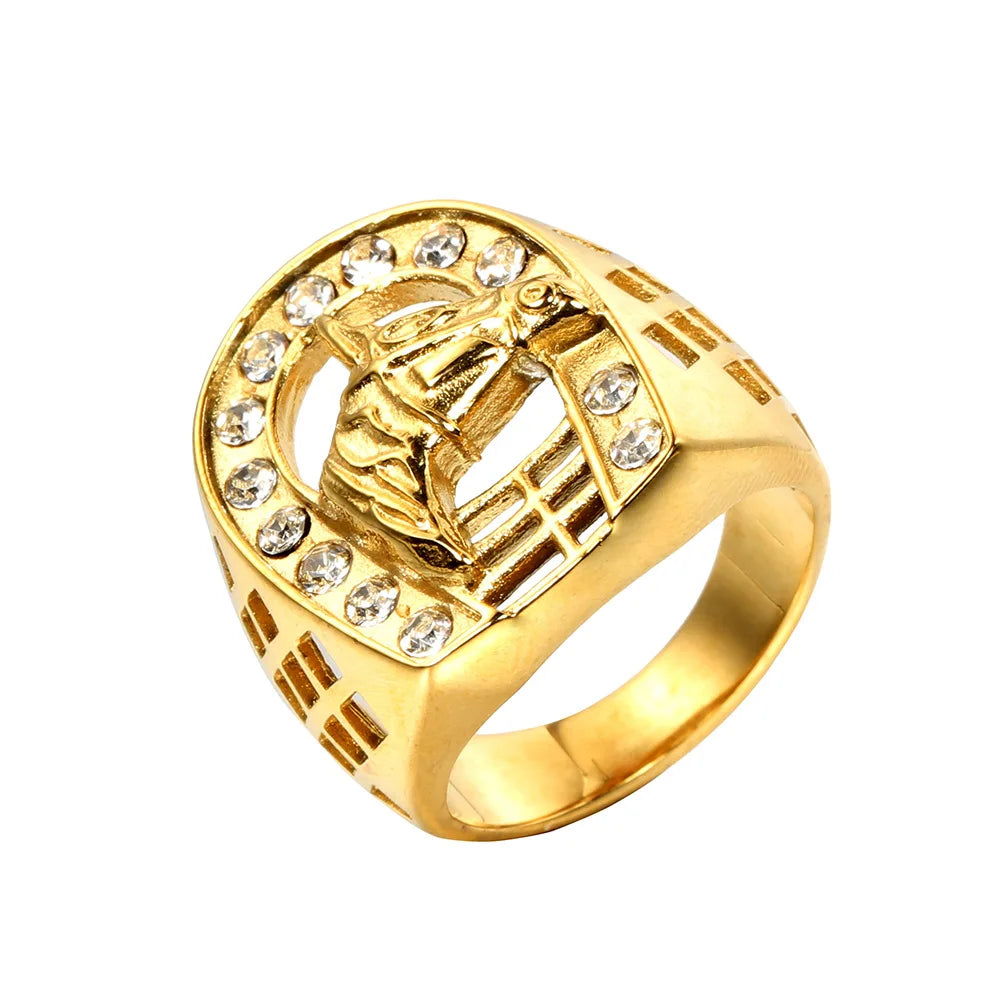 Horse Head Ring Male 18k Gold Plated Color Stainless Steel