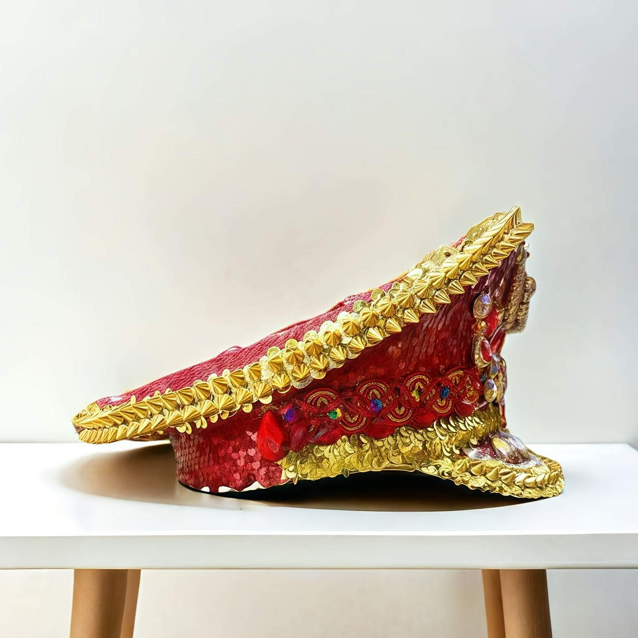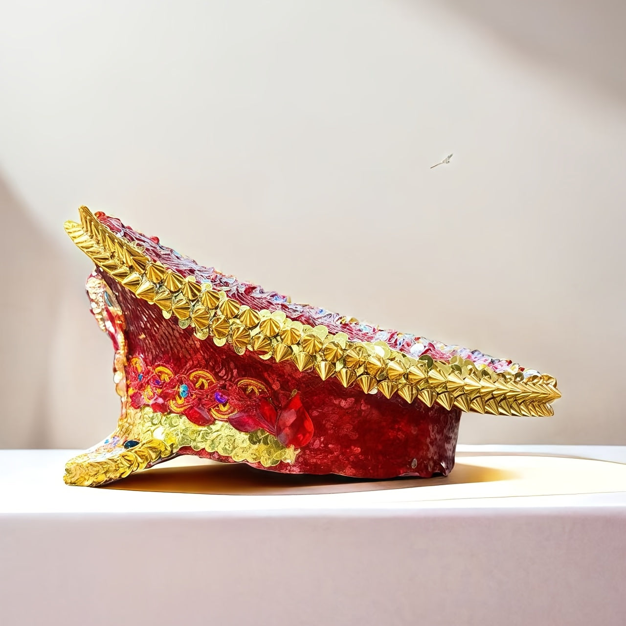 HONGLUAN Captain'S Hat - Glittering Red Sequins, Bold Rhinestone Emblem & Golden Lace Trim, Perfect for Burning Man, Steampunk Raves, Costume Parties | Sparkling Headwear for Women, Men, Festival-Goers, Polyester Material, Ha