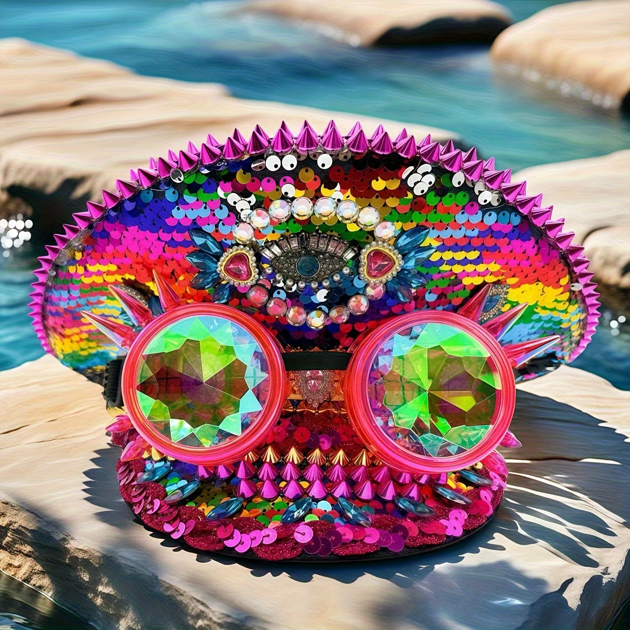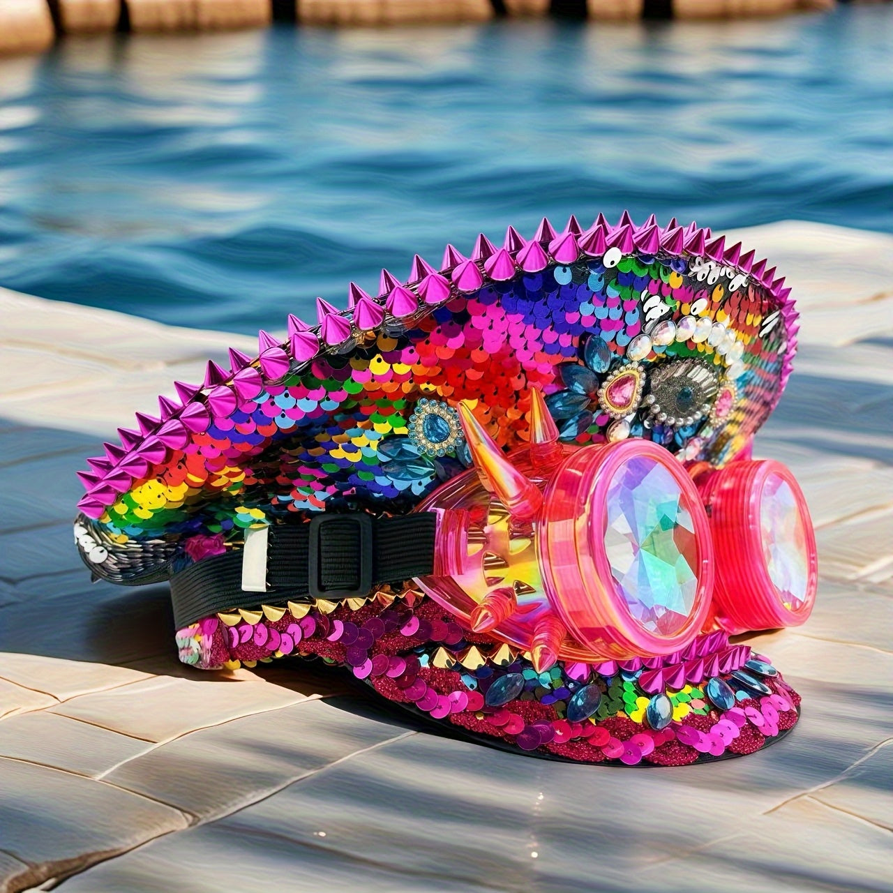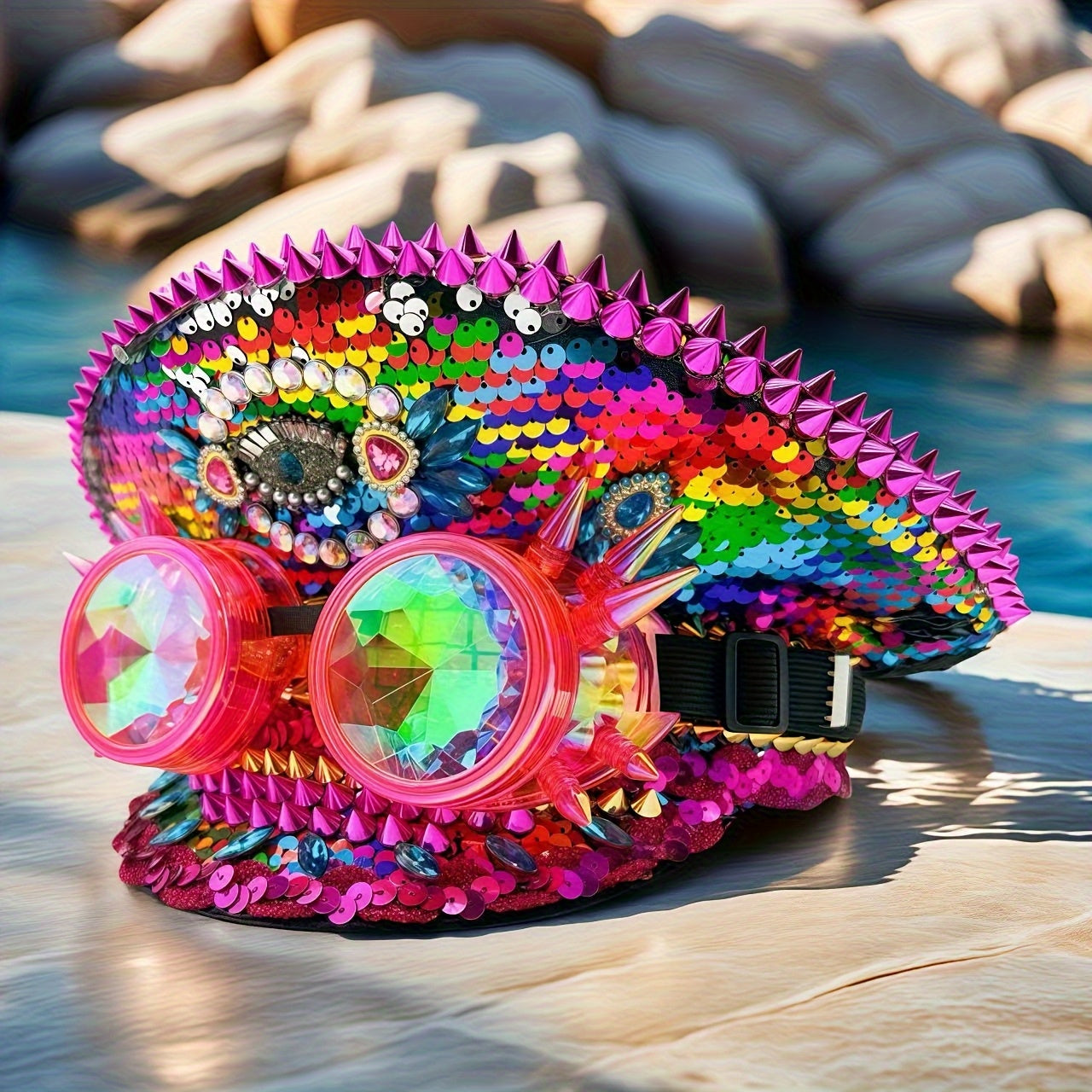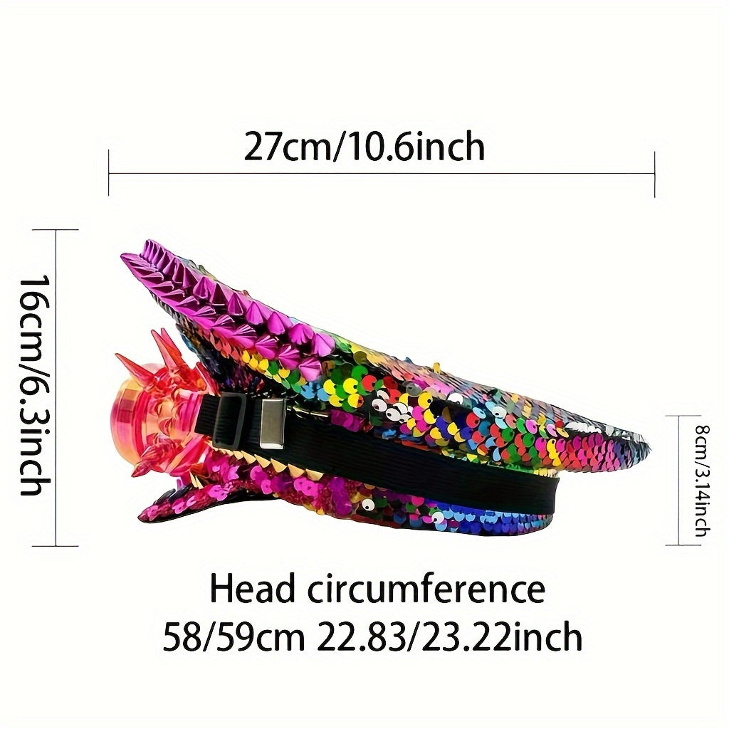 HONGLUAN Steampunk Rhinestone Captain Hat with Goggles - Adjustable Military Cap with One-Eye Crystal Emblem & Pink Goggles, Sparkling Rhinestone Design for Women’s Burning for Man Outfits, Halloween, Music Festivals, Cospl