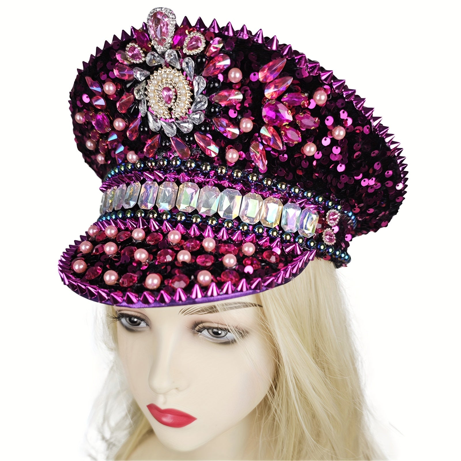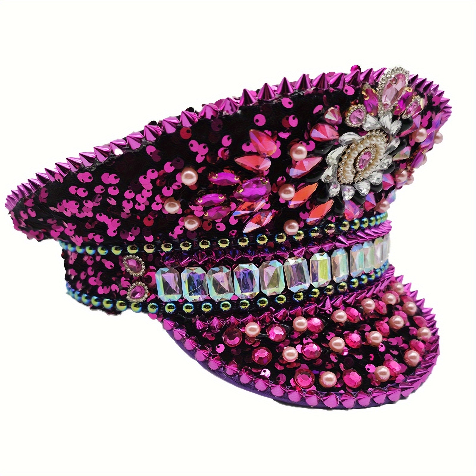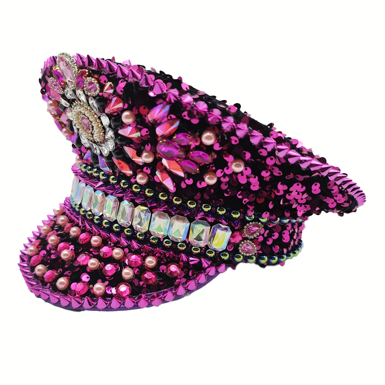 Luxurious Colorful Sequin Captain Hat with Rhinestones and Studs - Steampunk Style, Perfect for Carnivals, Cruise, Mother'S Day, Pride, Burning Man, and Parties, Sequin Captain Ha