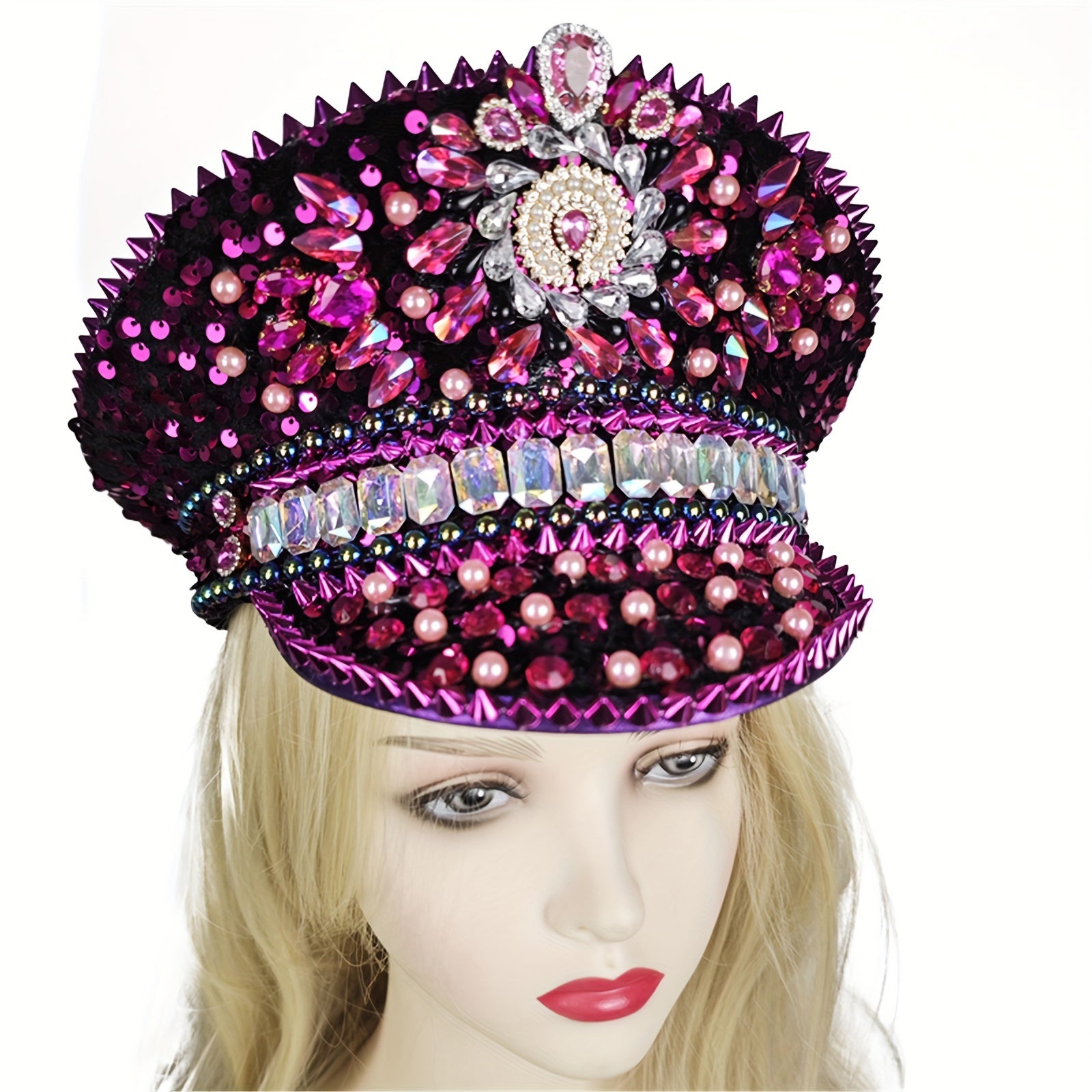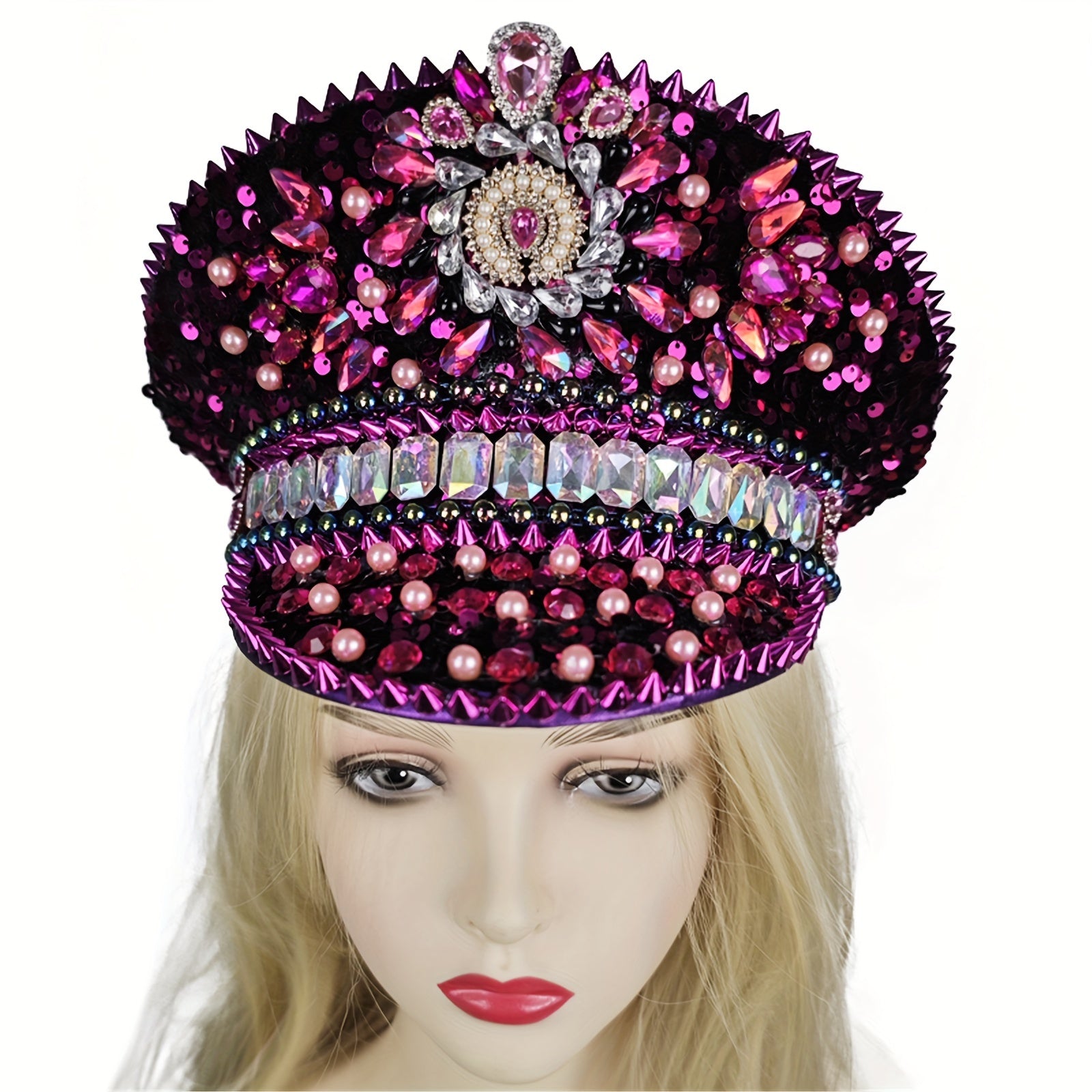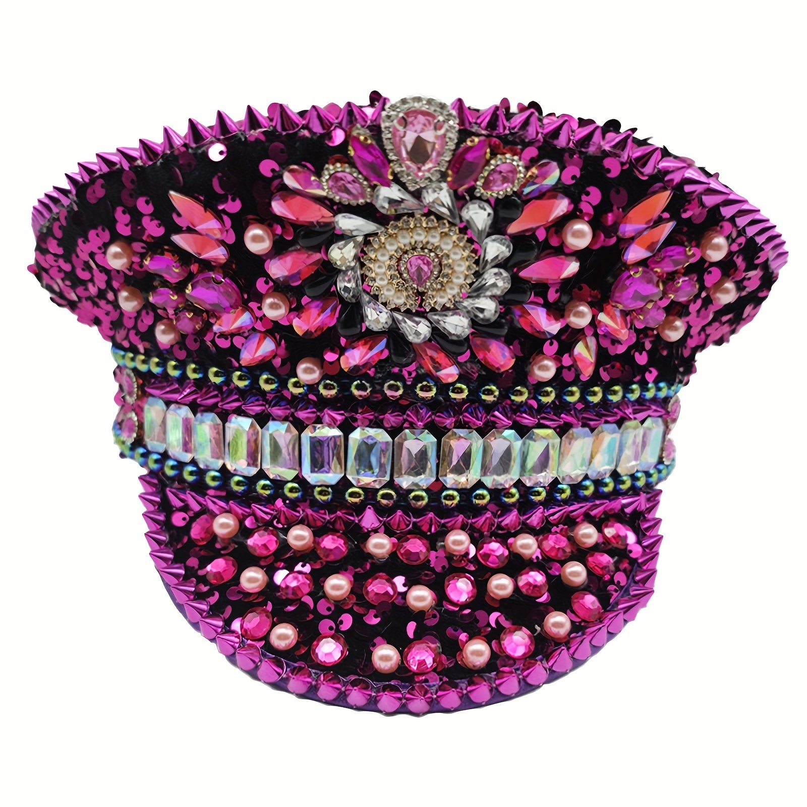 Luxurious Colorful Sequin Captain Hat with Rhinestones and Studs - Steampunk Style, Perfect for Carnivals, Cruise, Mother'S Day, Pride, Burning Man, and Parties, Sequin Captain Ha