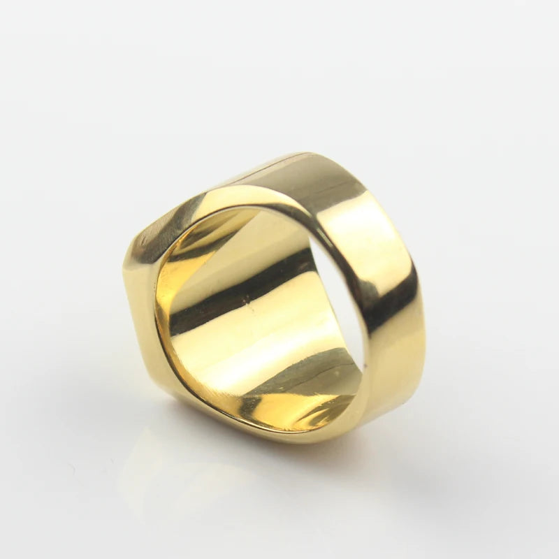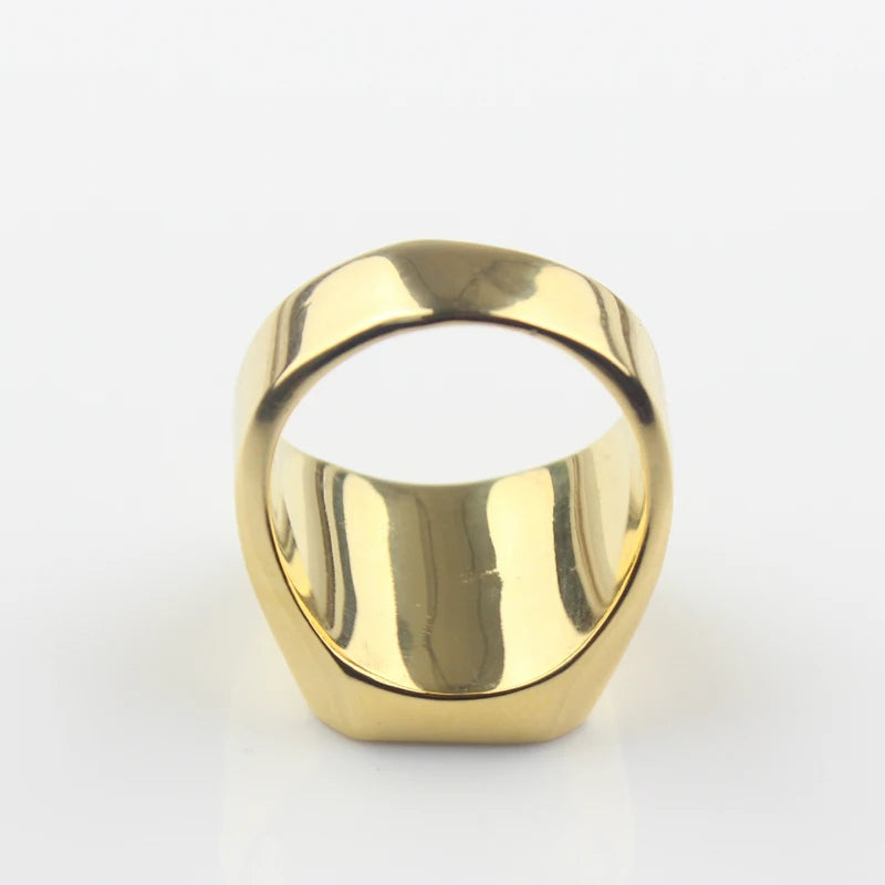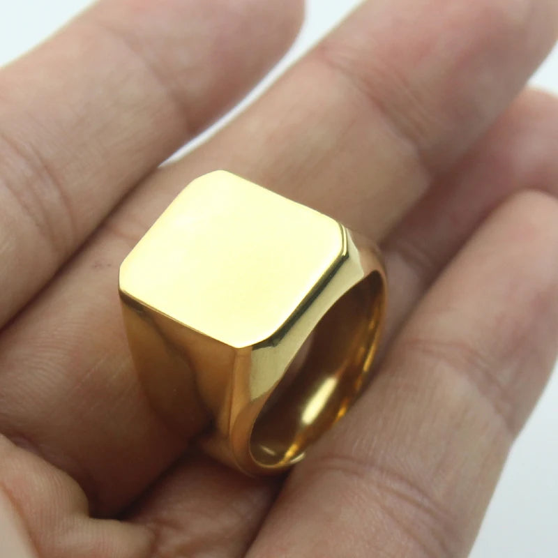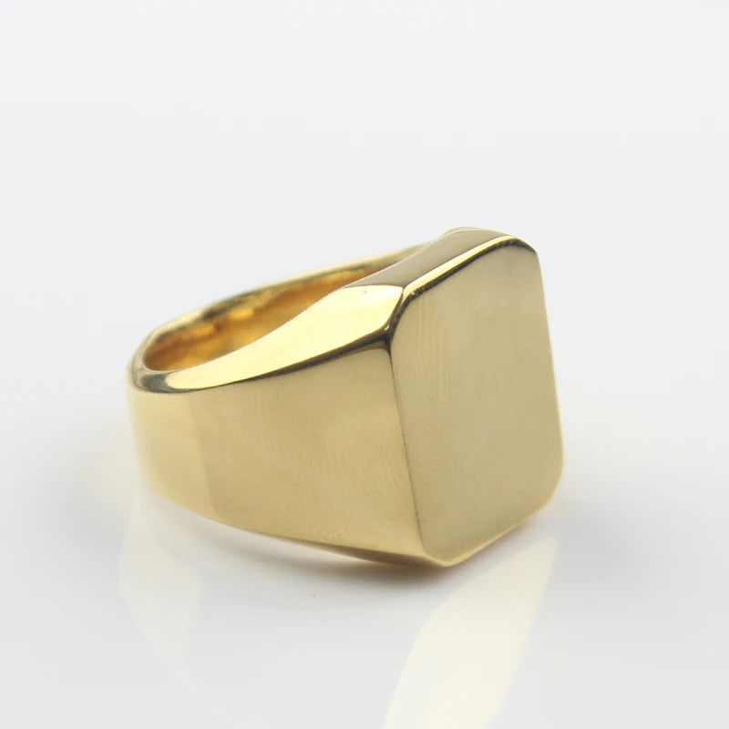 Men's Gold Color Signet Stainless Steel Band Ring