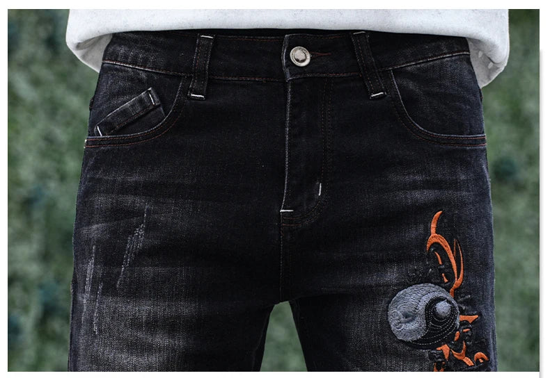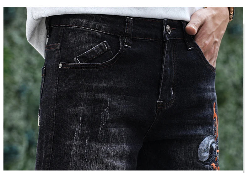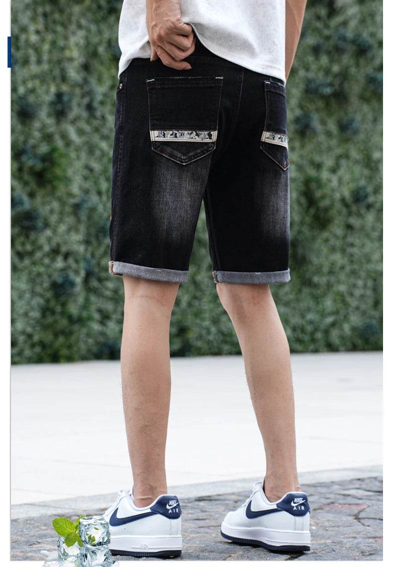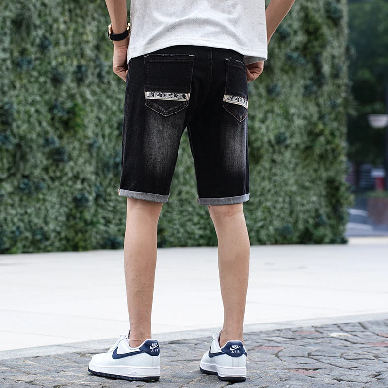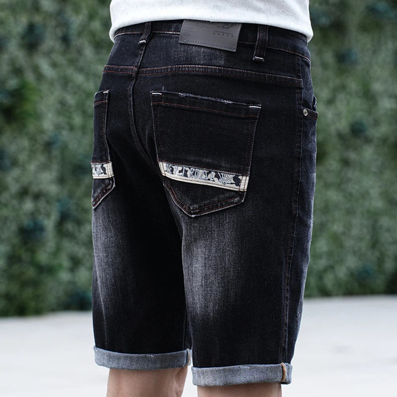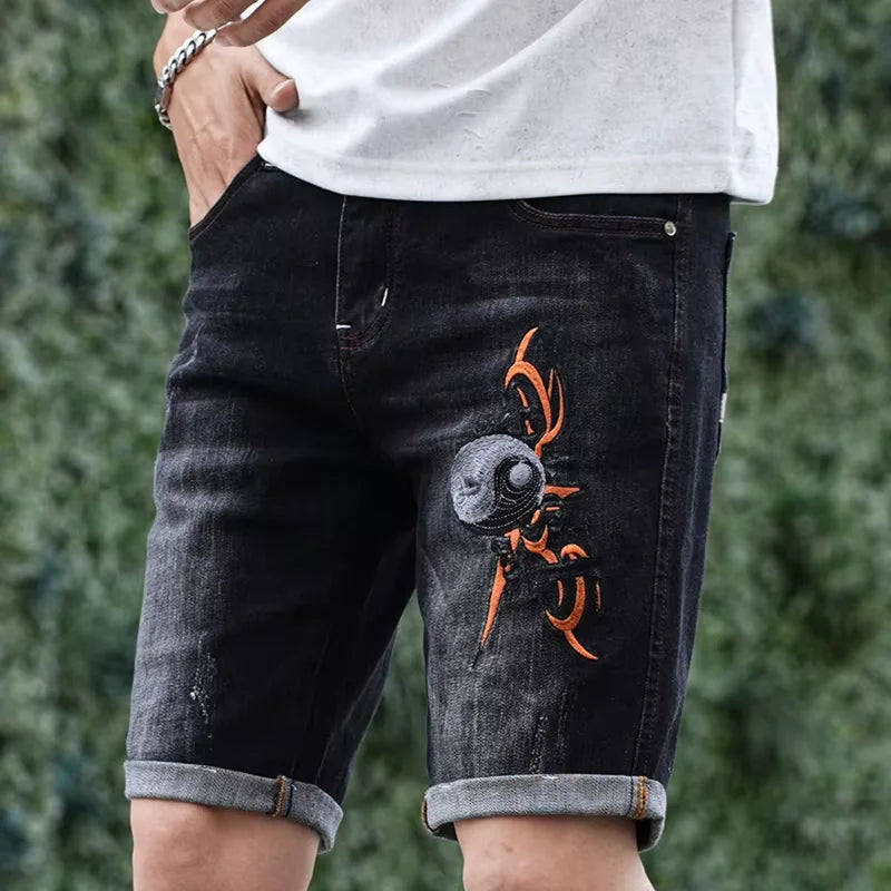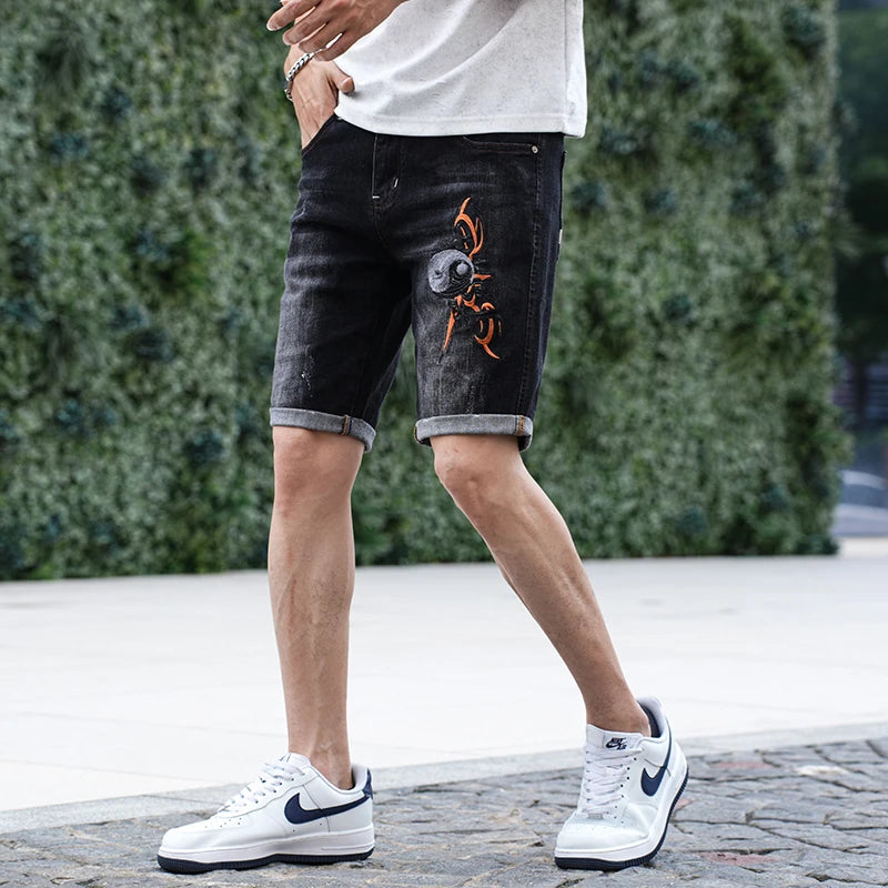 New Men's Shorts Summer Washed Stretch Denim Shorts Fashion Tai Chi Embroidery Short Jeans Male Streetwear Brand Clothing