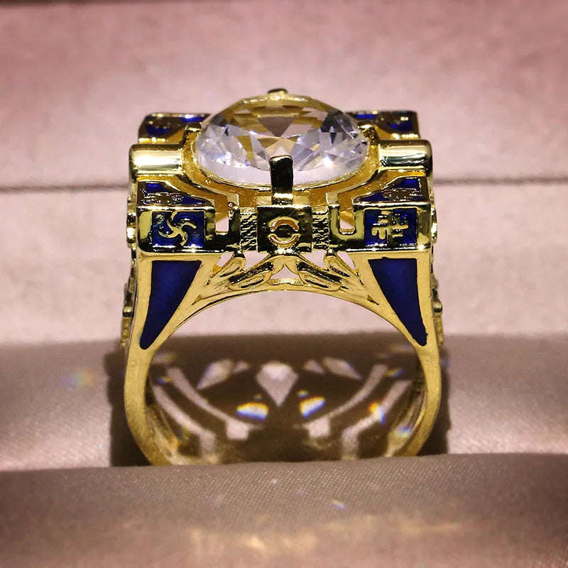 Enamel Blue Stripes Vintage 18K Gold Plated Ring