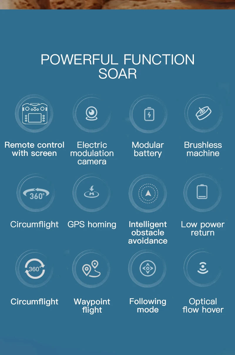 8. Hand gesture photography, optical flow positioning, brushless motor, ultra long endurance, obstacle avoidance head assembly, which can stop when encountering obstacles without colliding with them.