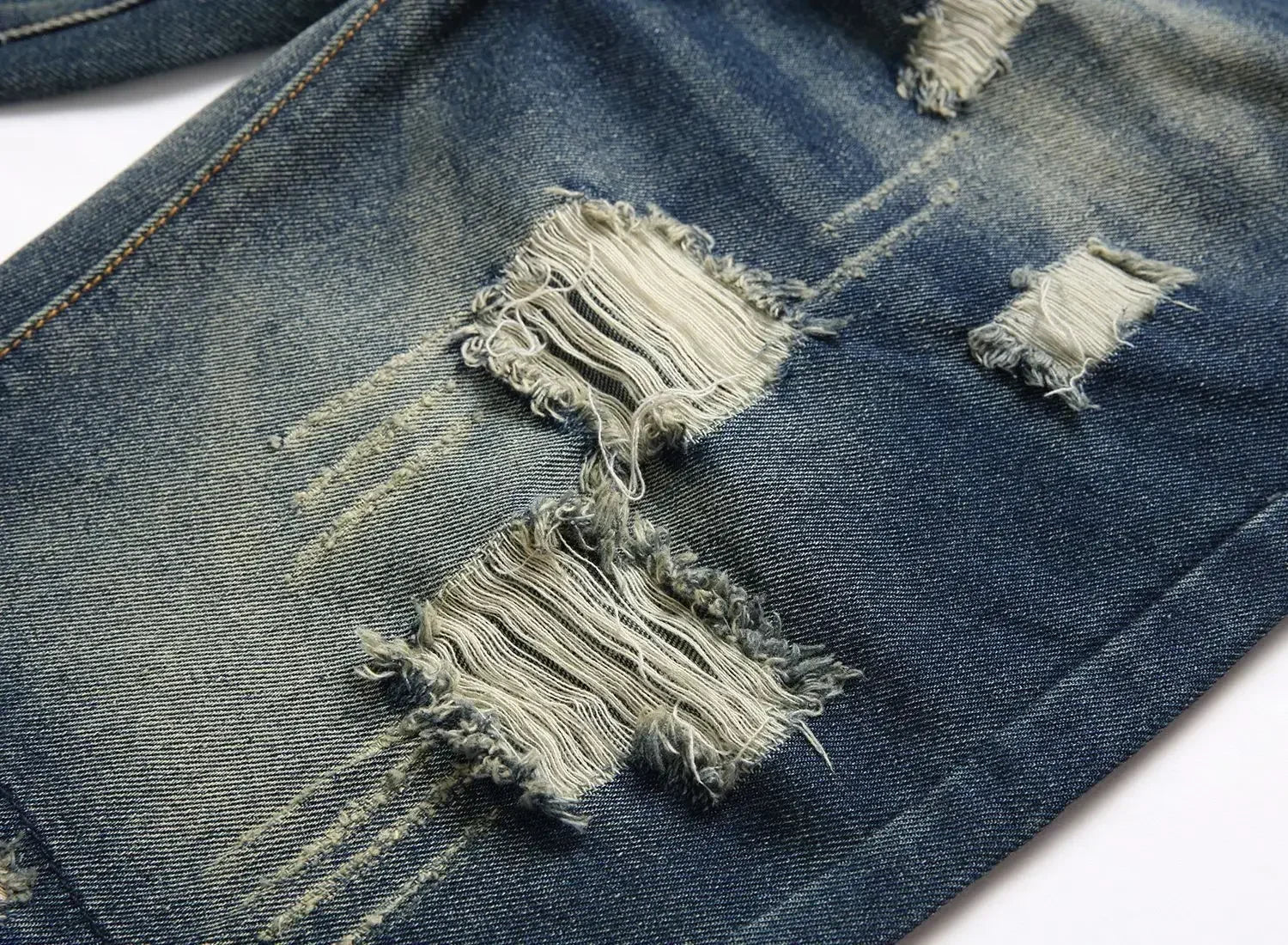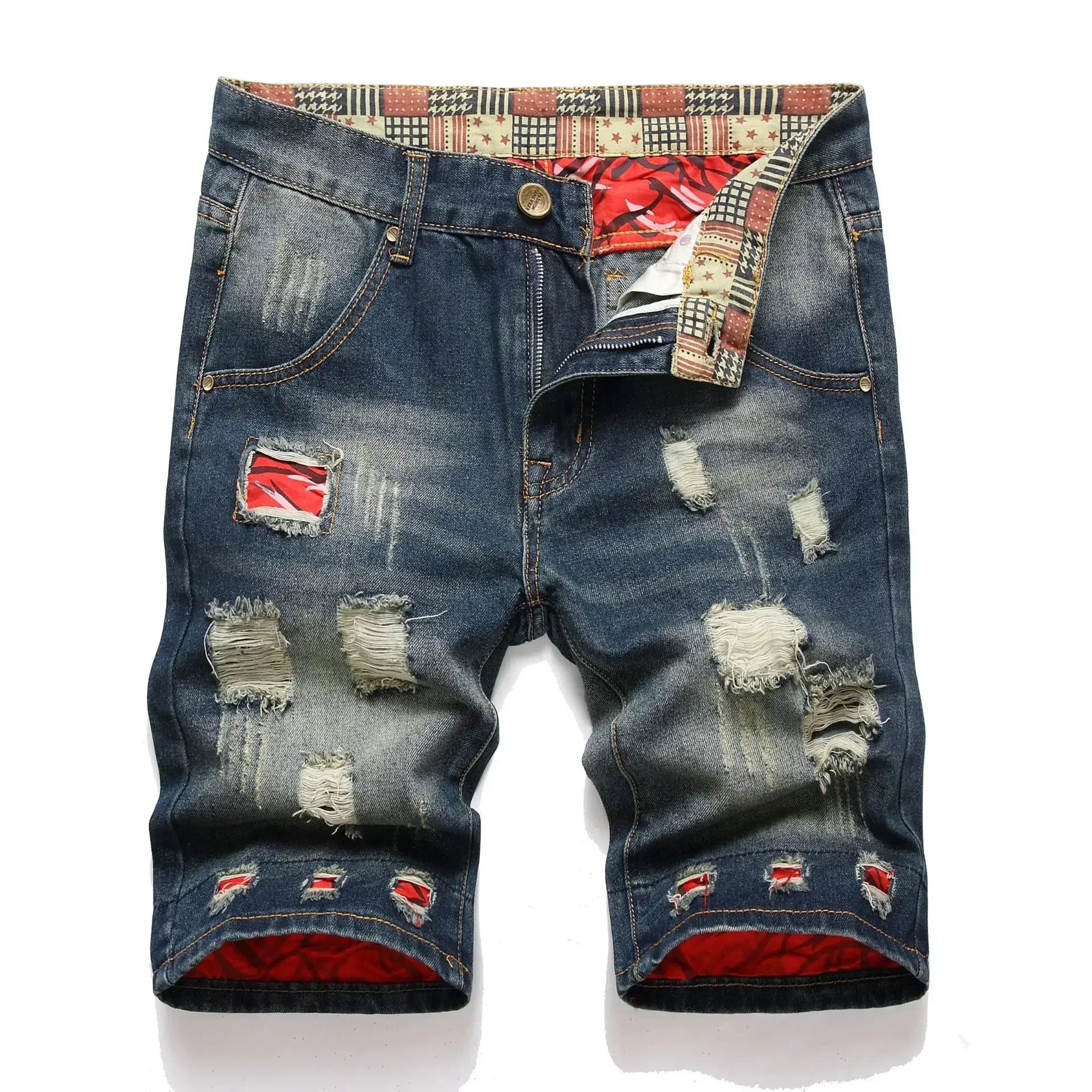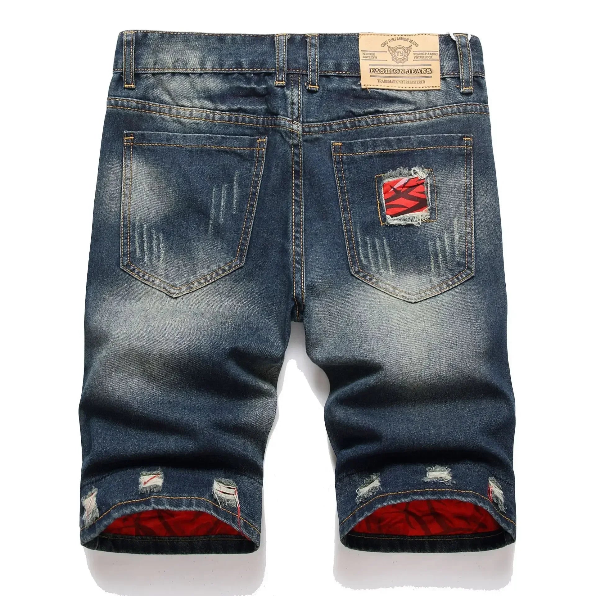 New Summer Vintage Washed Men Denim Shorts Casual Fashion Street Wear Ripped Hole Patches Distressed Male Straight Jeans Shorts