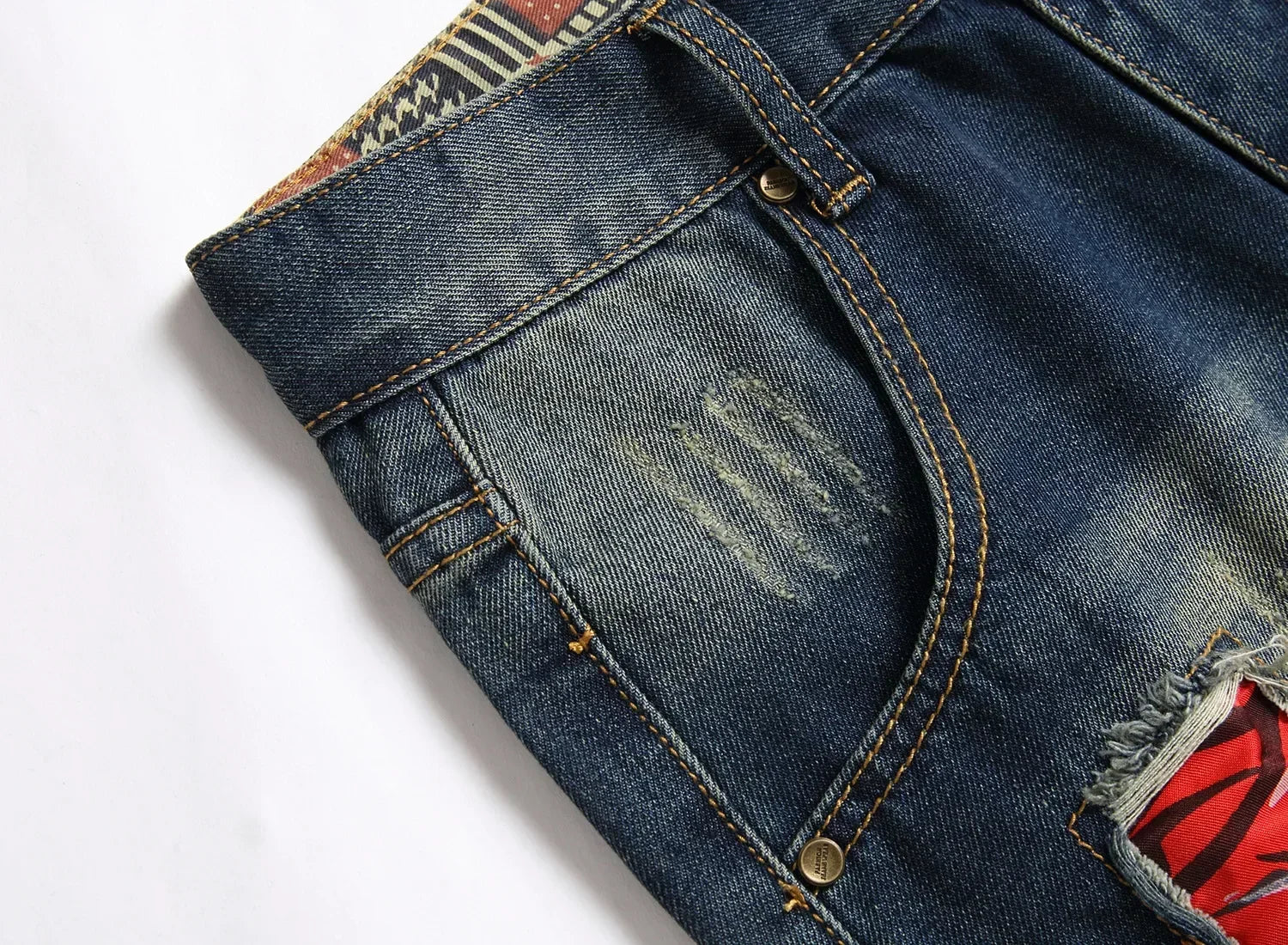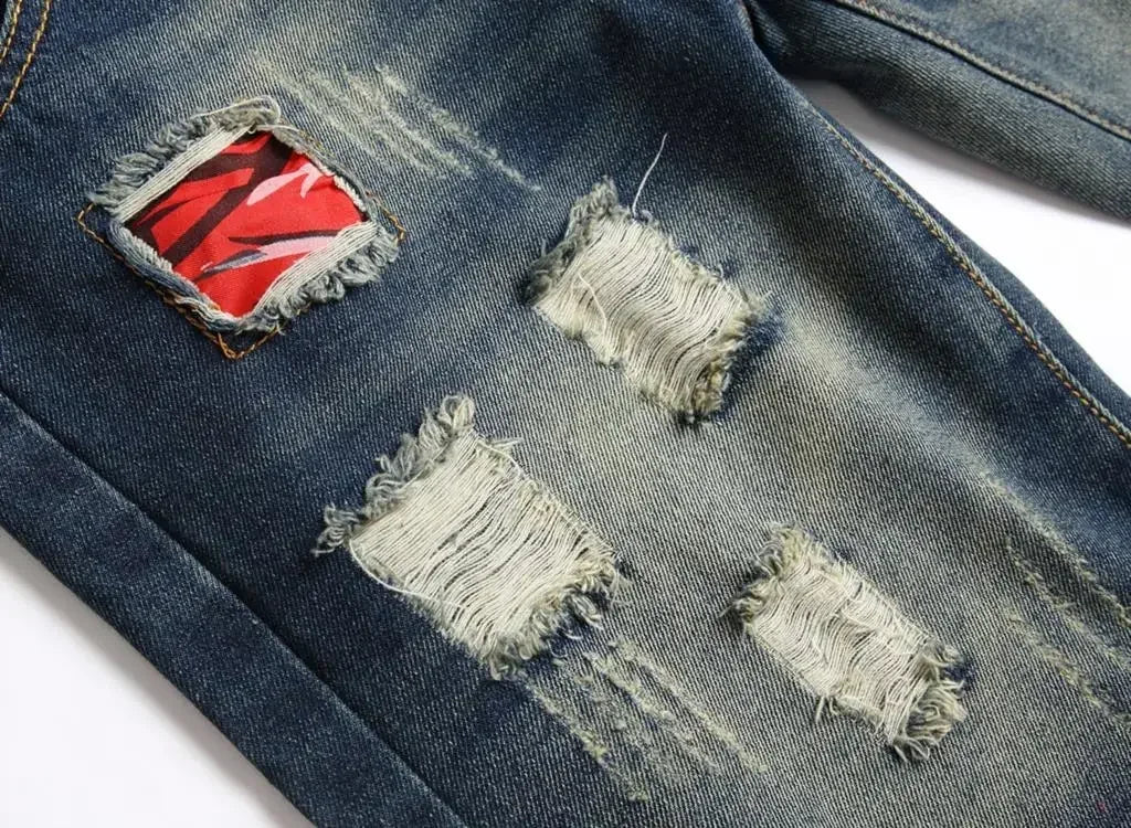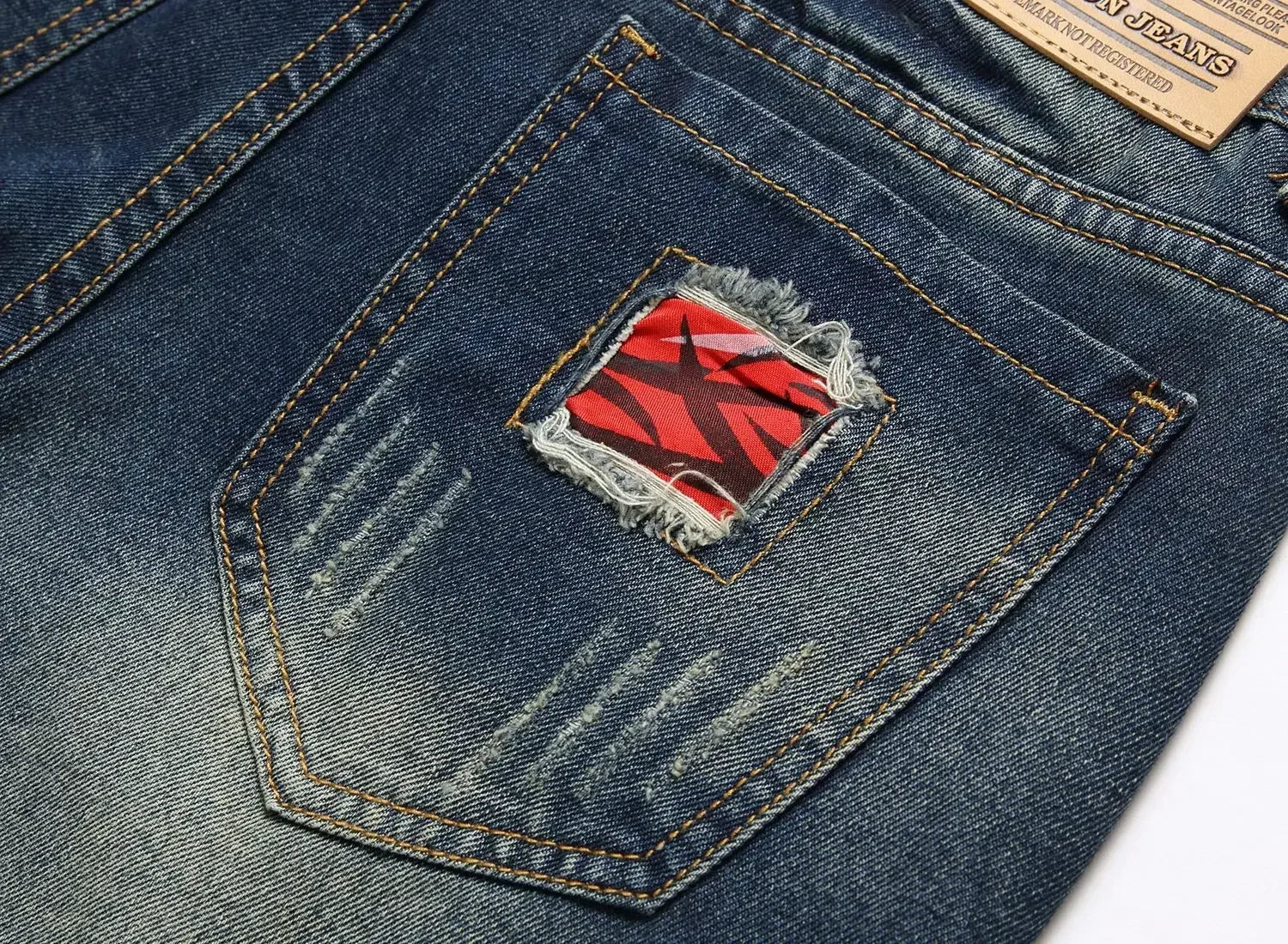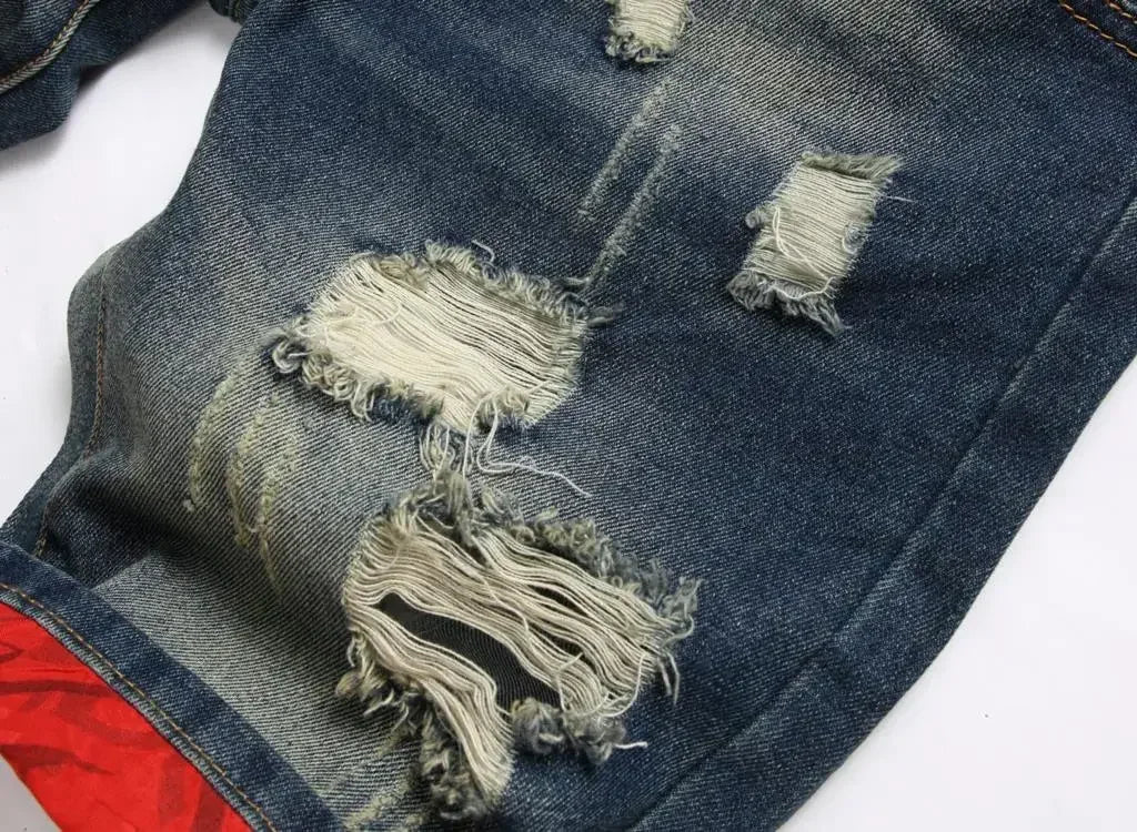 New Summer Vintage Washed Men Denim Shorts Casual Fashion Street Wear Ripped Hole Patches Distressed Male Straight Jeans Shorts