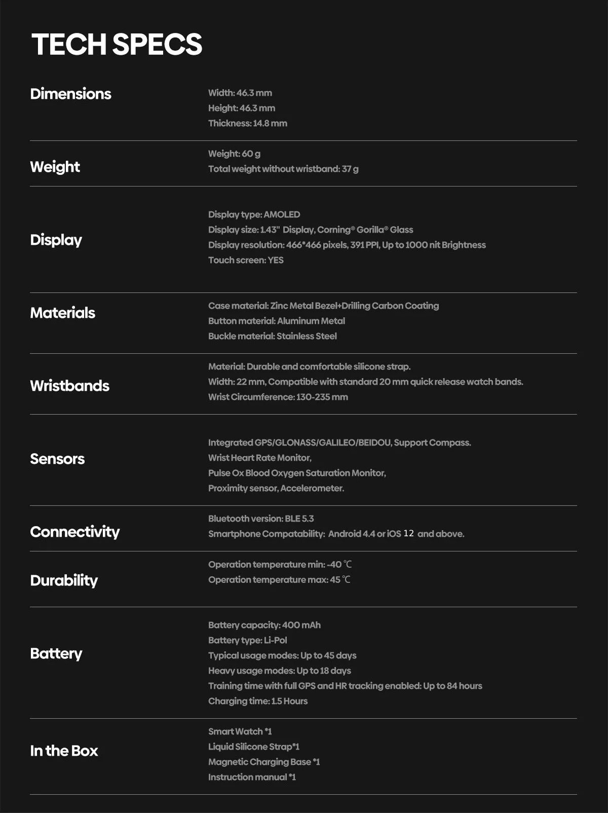【Strong & Precise Built-in GPS】The watch supports GPS, GLONASS, Galileo, and BDS satellite navigation systems to help you make the most of your journeys into the great outdoors, and uses circularly polarized antenna technology to improve positioning performance and accuracy. Challenge yourself to see more of the world.