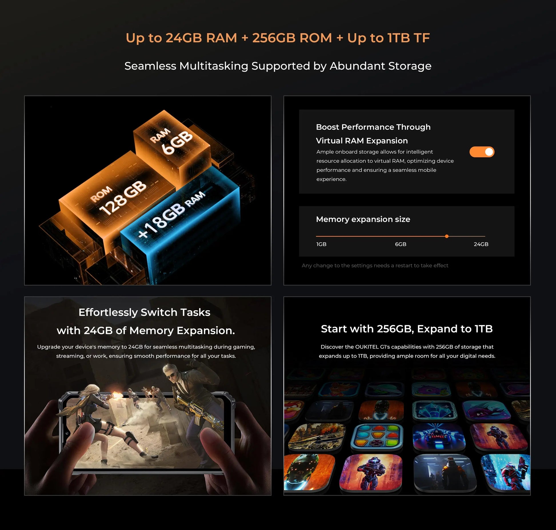 Oukitel G1 Rugged smartphone Android 6.52‘' 10600mAh 24GB+256GB rugged phone Android14 48MP HD+ Camera cell phone