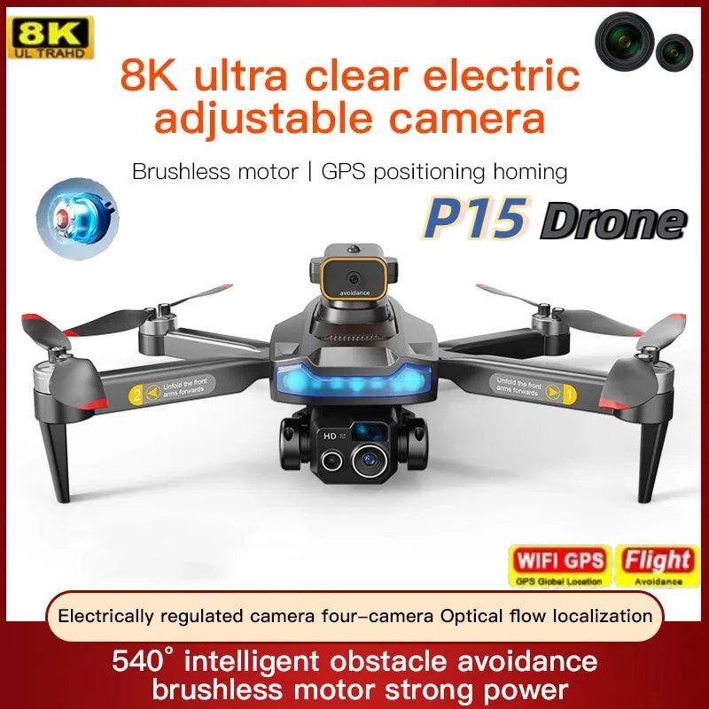 P15 PRO Drone 4K HD Professional Obstacle Avoidance Optical Flow Dual Camera Aerial Photography Dual-Camera Fold Gift New