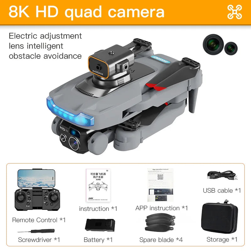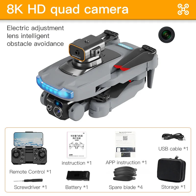 1. The front lens is placed with wide-angle 8K high-definition WIFI, and the optical flow high-definition lens at the bottom can switch the camera angle. The servo gimbal design increases stability, and EIS electronic image stabilization is added to make the picture lines clearer