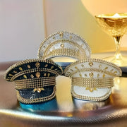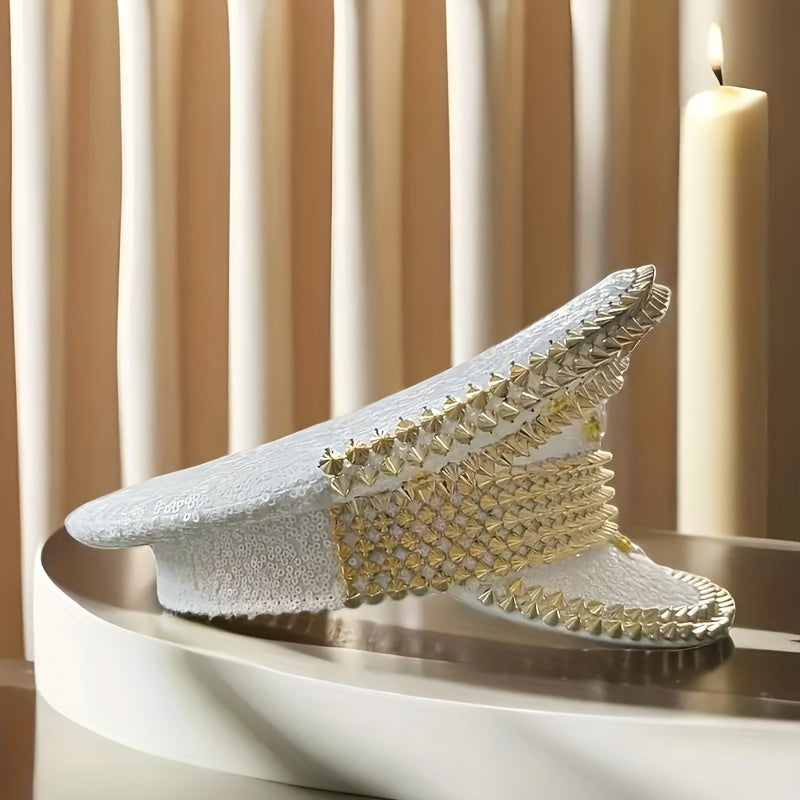 Punk Rivet Captain Hat Unisex Polyester Prom Party Cap with Rhinestone Decor, Fantasy Toggle Closure Navy Hat for Nightclub DJ Disco Events - Hand Wash Only