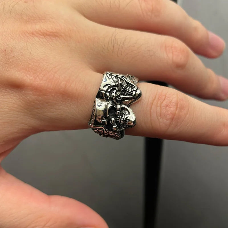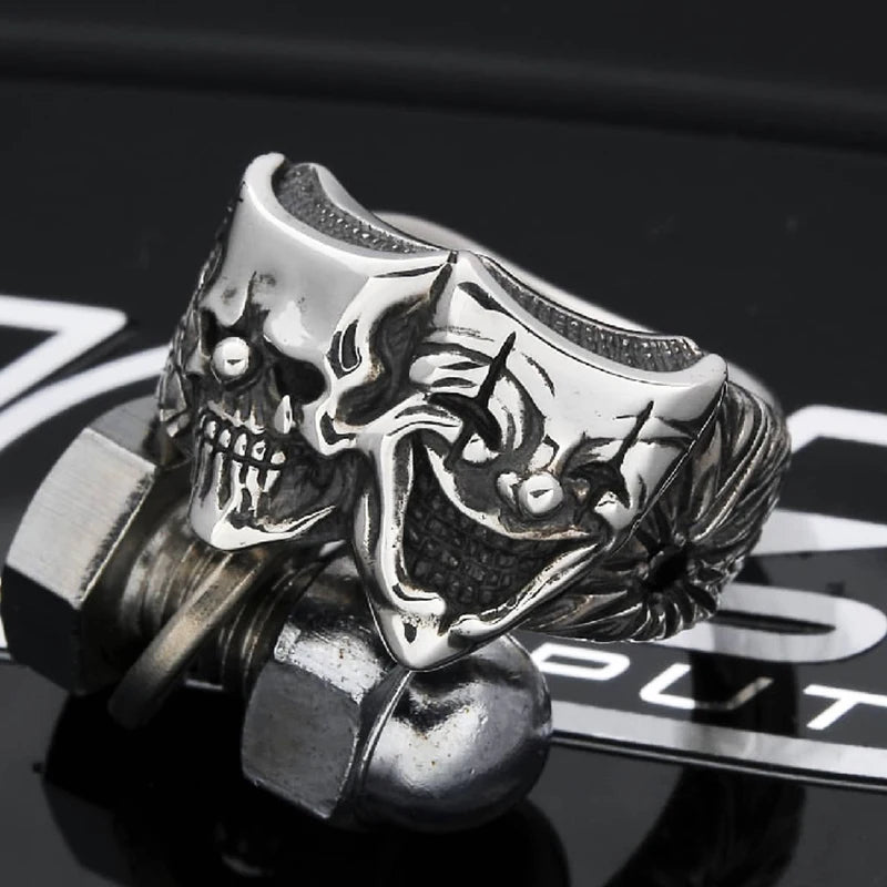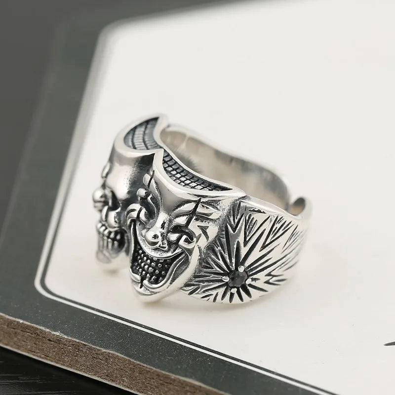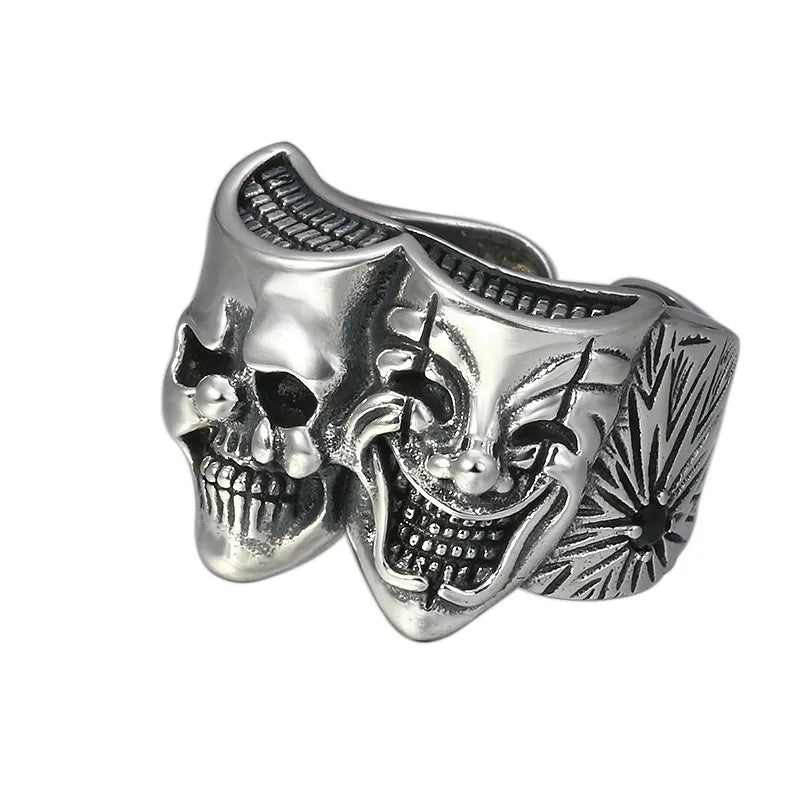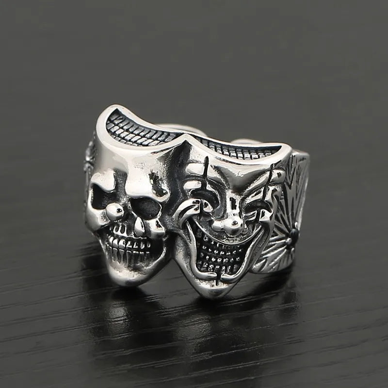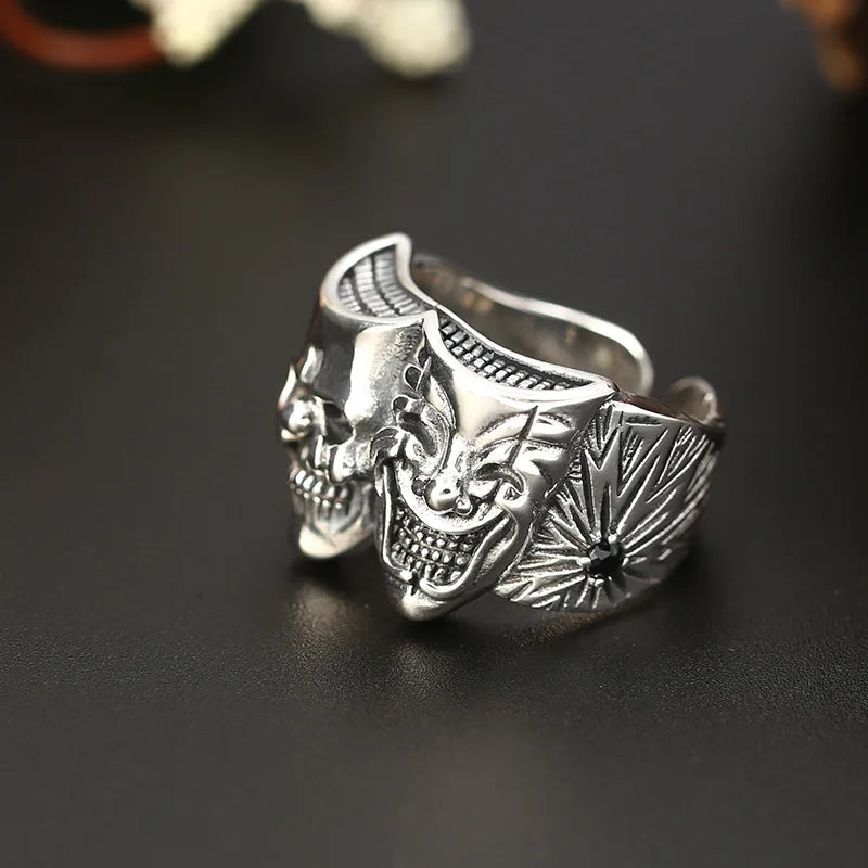 Retro Two Face Joker Ring For Men Silver Color Punk Gothic Adjustable Ring Rock Handmade Hiphop Unisex Jewelry Accessories Gift