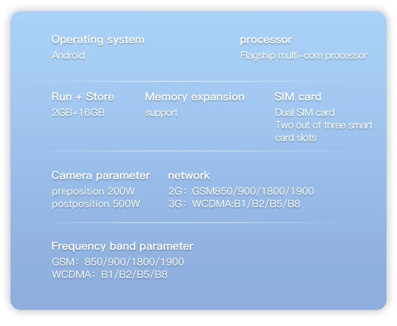 ⋆ Memory Card : 2GB RAM+16GB ROM