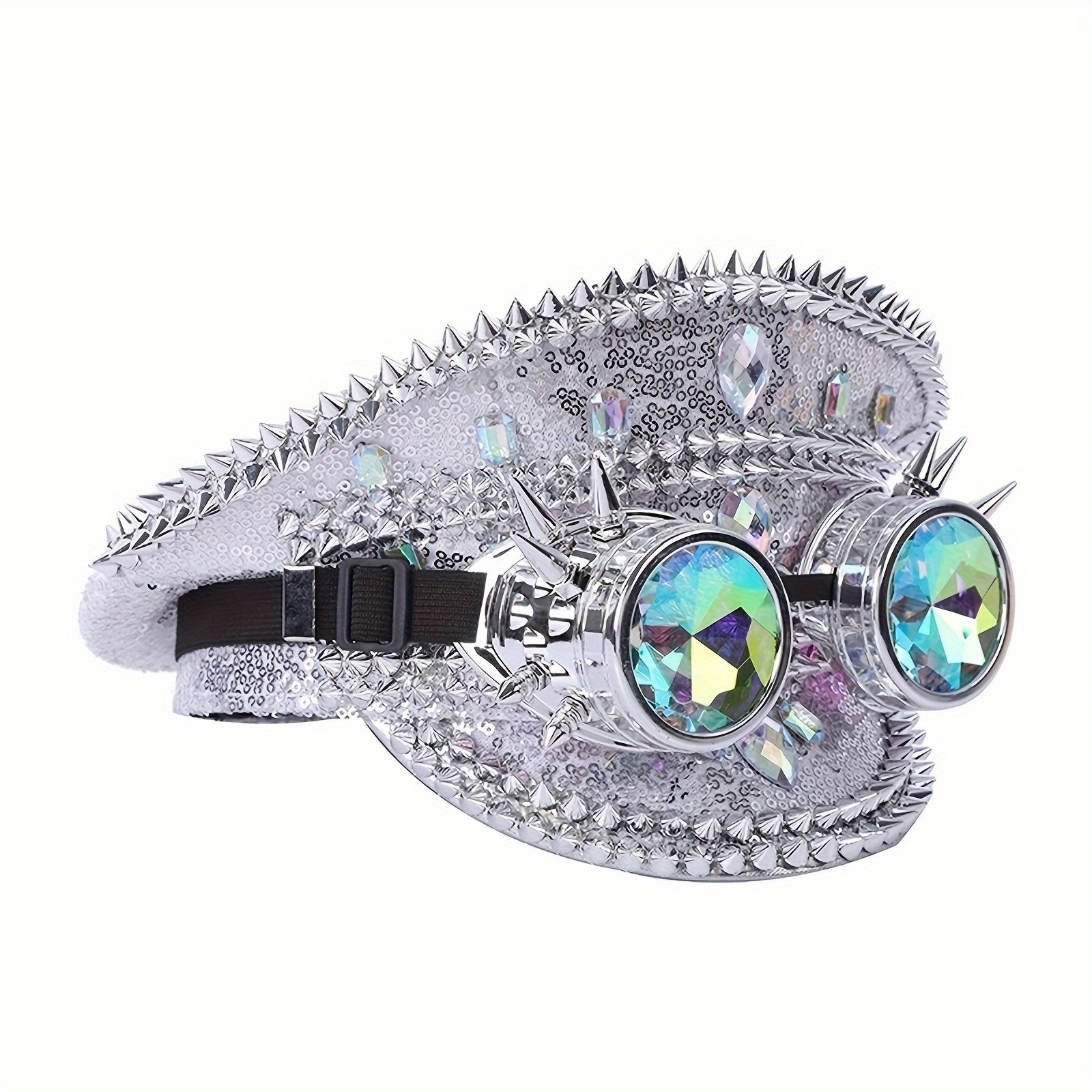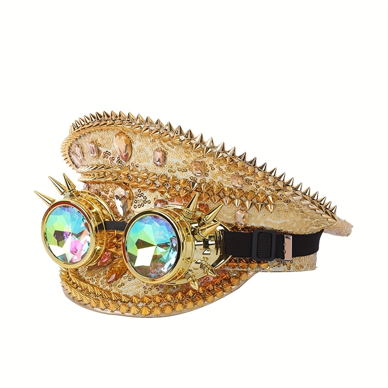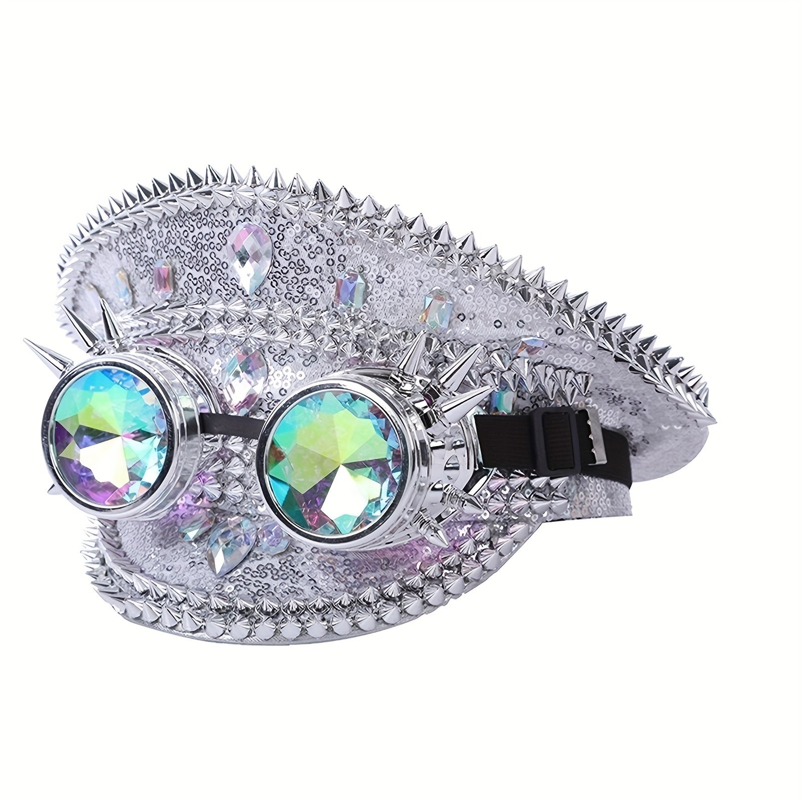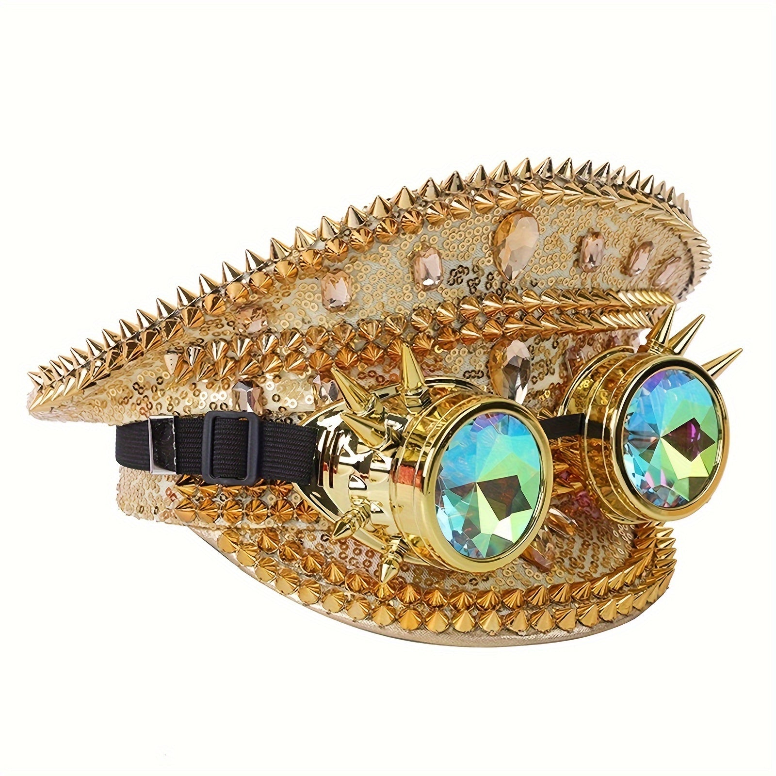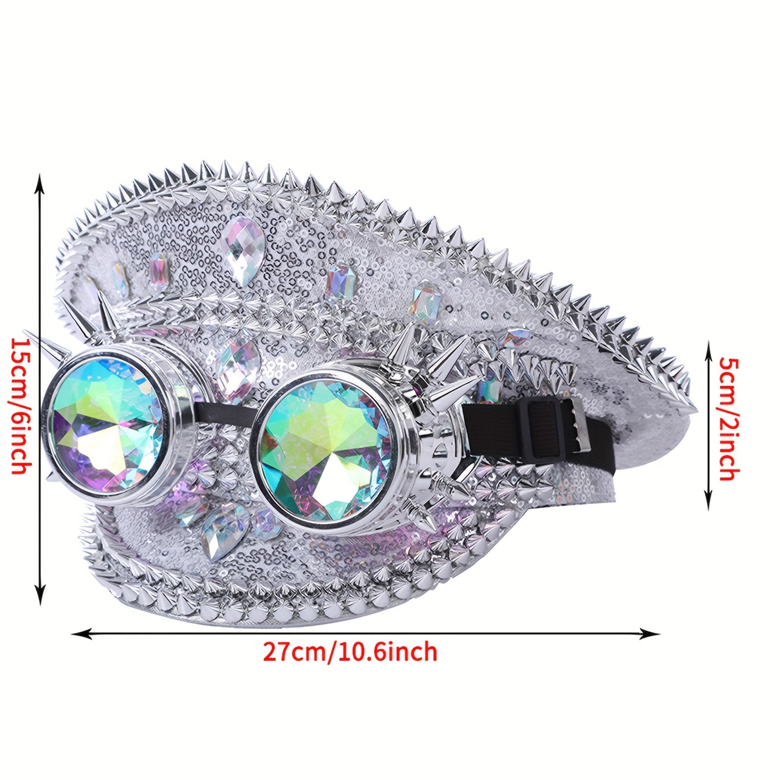 Shiny Steampunk Hat With Rivets, Goggles, Party Hat, Bride Hat, Carnival Halloween Hat, Sequined Captain's Hat, Suitable For Single Women At EDM Music Festivals, Crazy Parties.