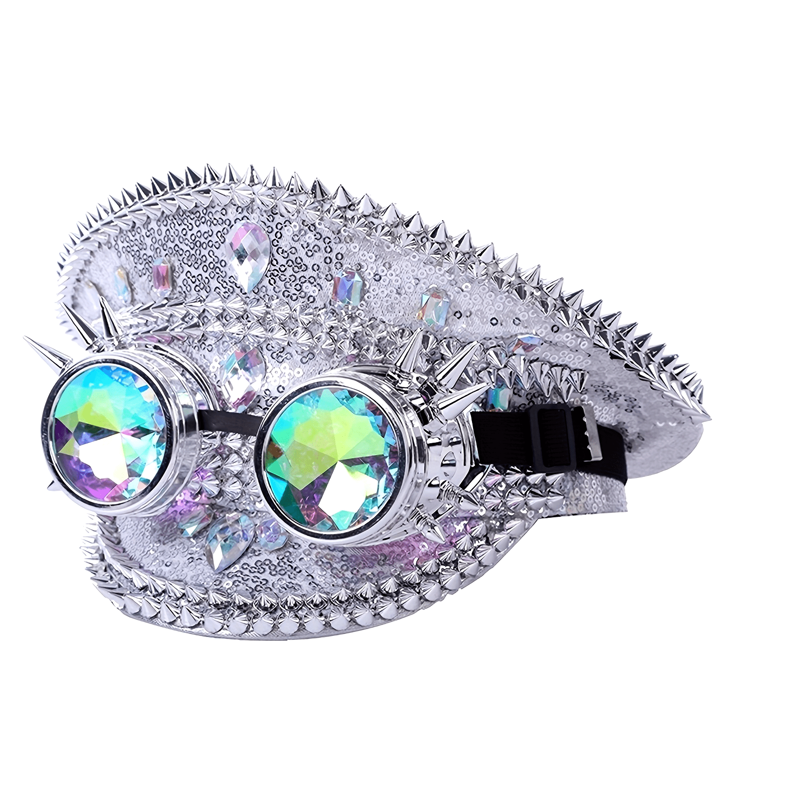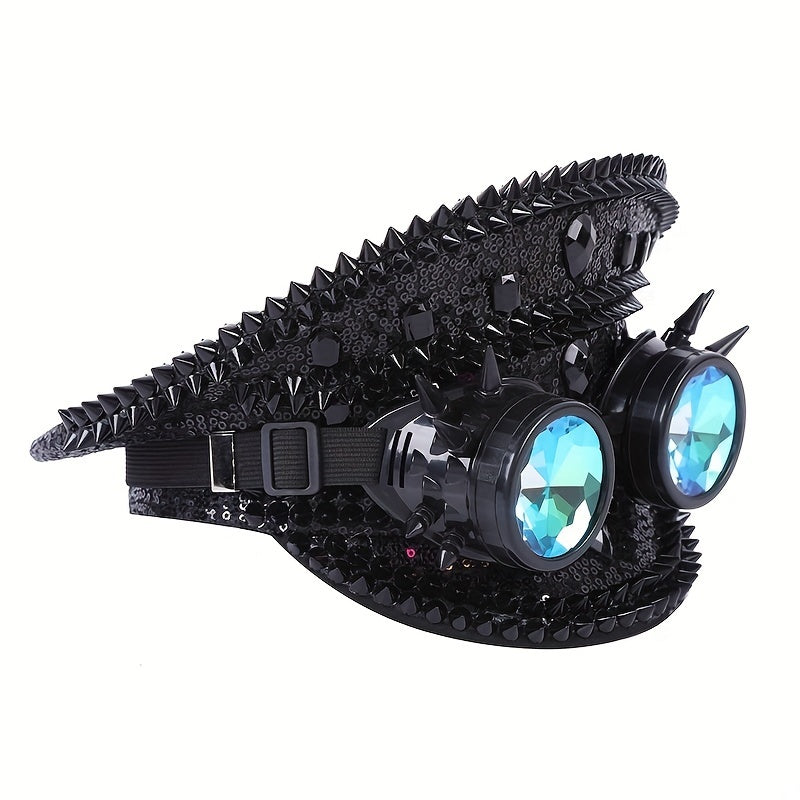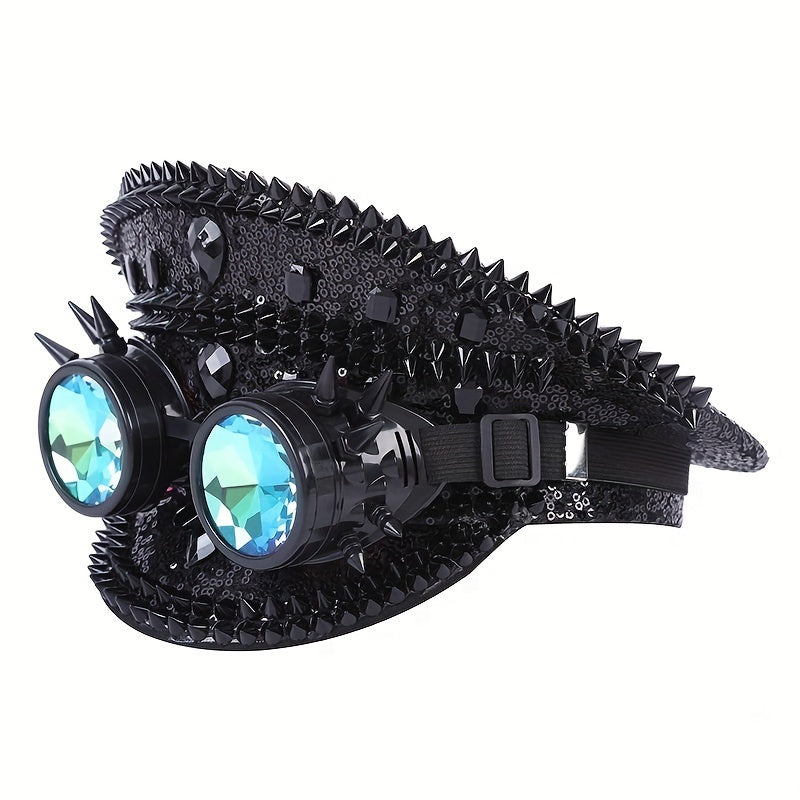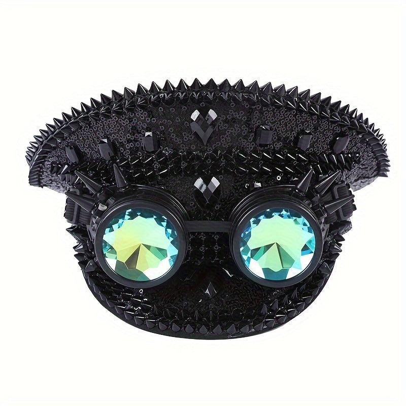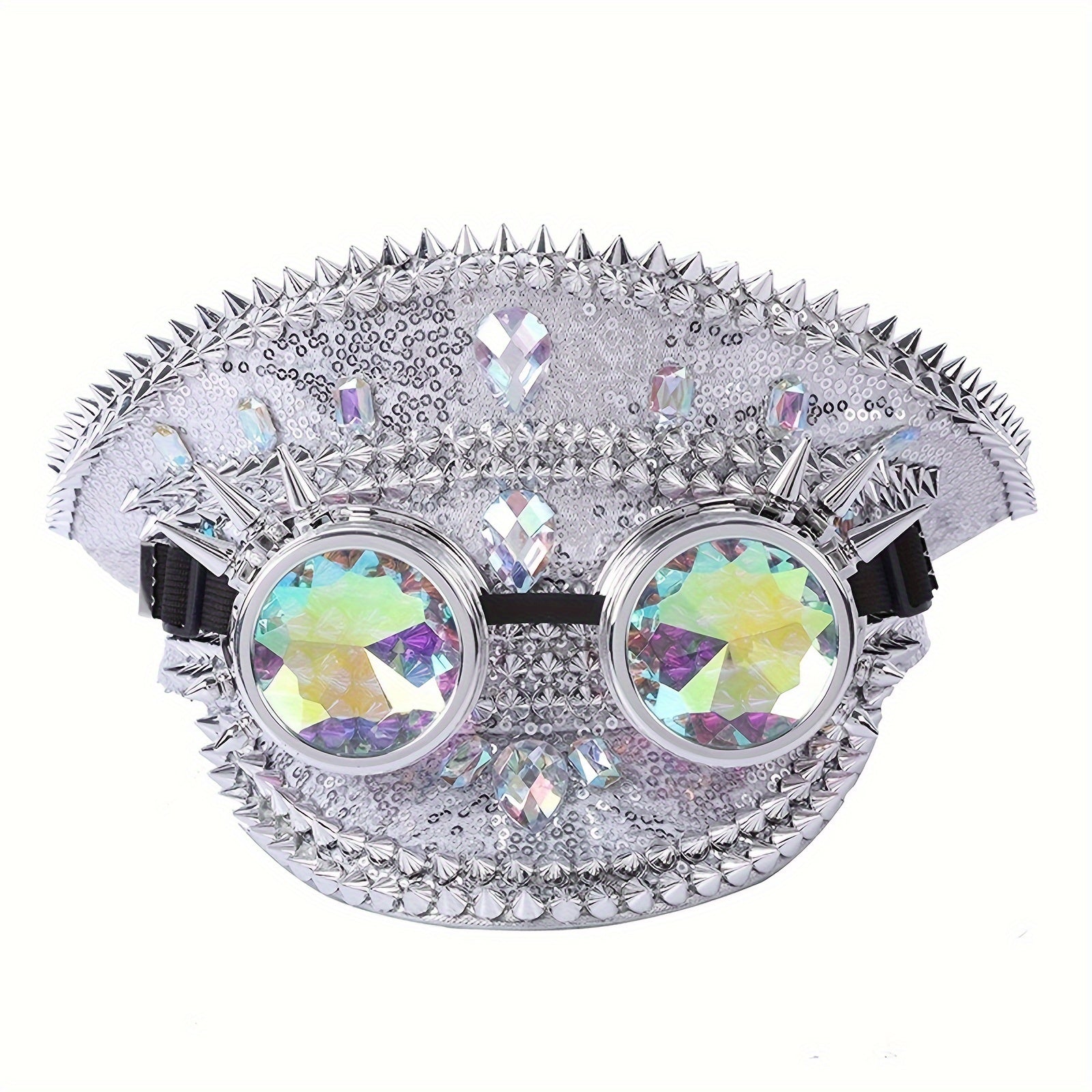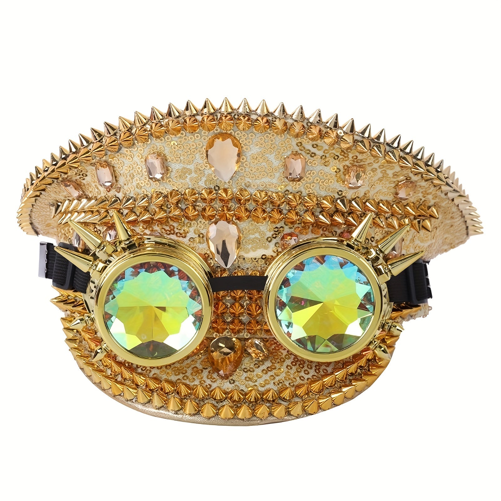 Shiny Steampunk Hat With Rivets, Goggles, Party Hat, Bride Hat, Carnival Halloween Hat, Sequined Captain's Hat, Suitable For Single Women At EDM Music Festivals, Crazy Parties.
