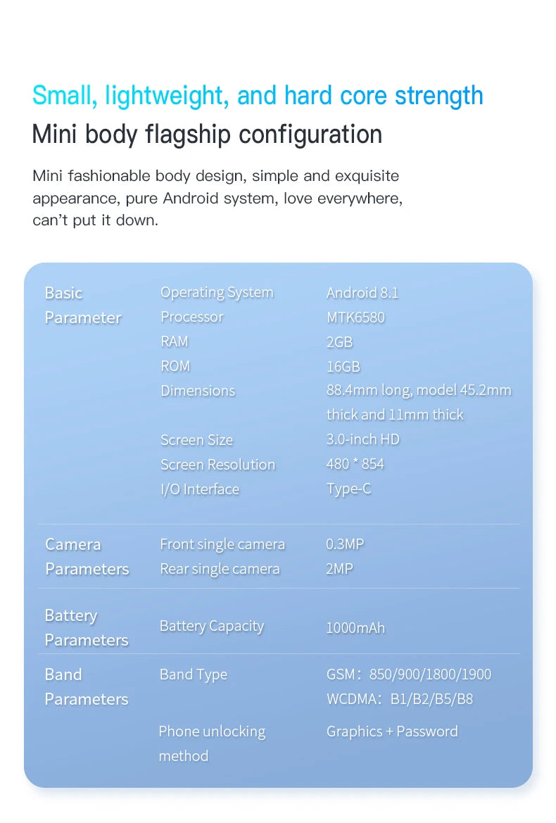 SOYES XS15 Mini Smartphone 3.0" Android8.1 Quad-core 2GB RAM 16GB ROM Dual SIM Standby 3G Network Small Phone